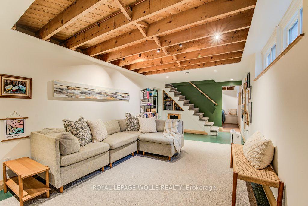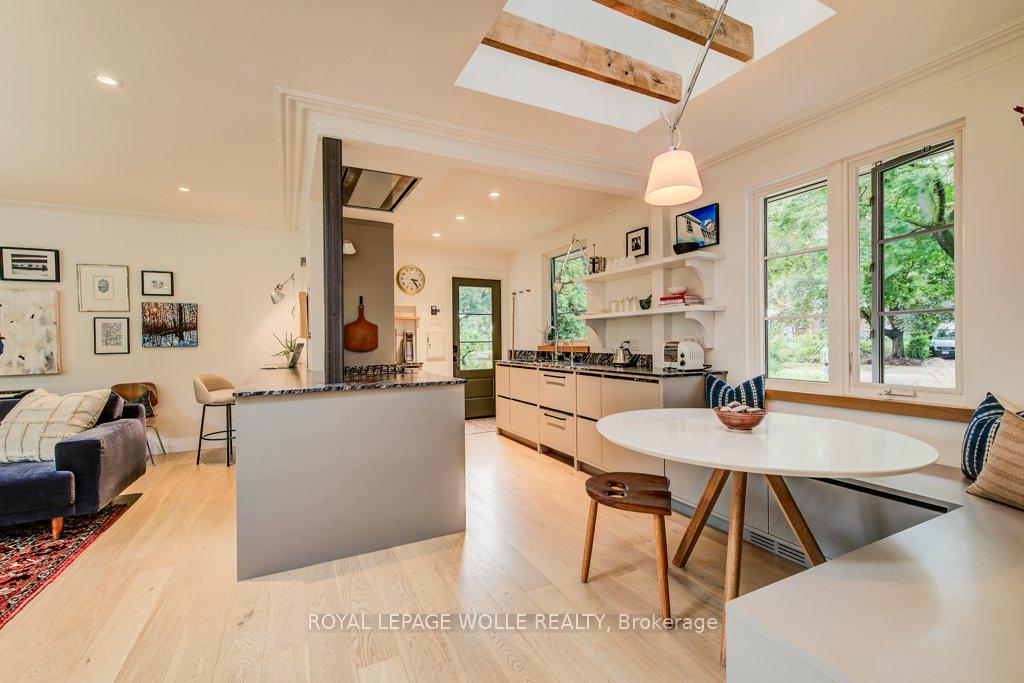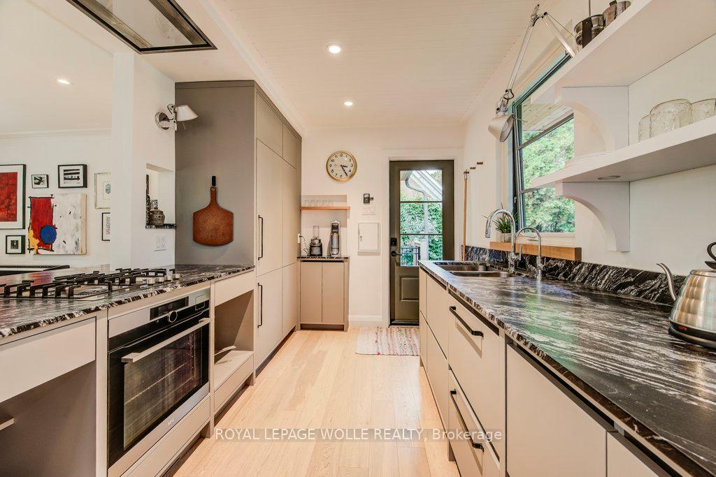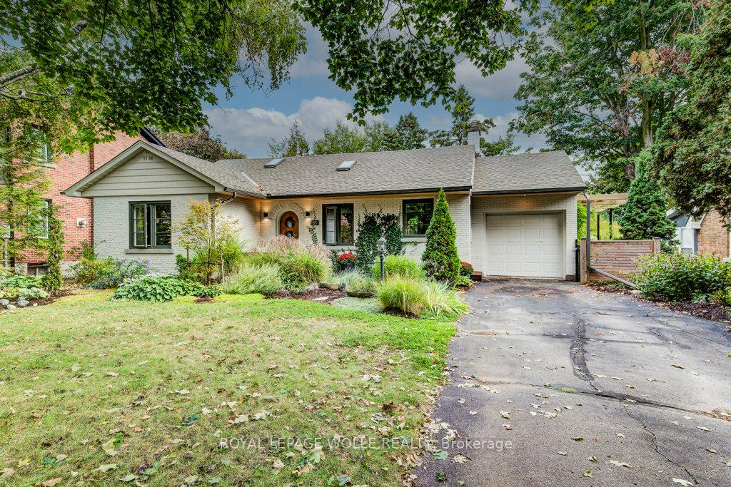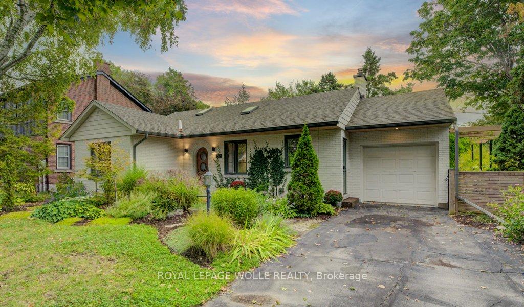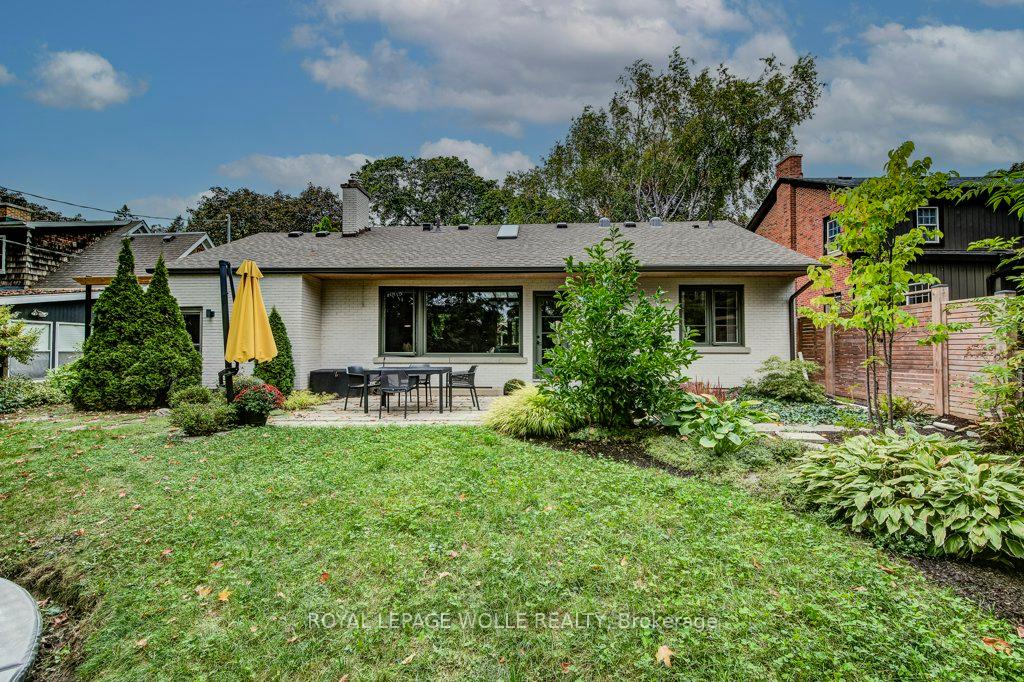 BUNGALOW in Old Westmount. Situated in one of the most desired areas in town – with mature tree-lined streets, large lots, homes with historic character and a real sense of community, this is a special place to call “home”. 189 Forsyth has been beautifully updated (2019-2020) by an architectural designer, with high end features and details. The curb appeal of this bungalow is immediately what draws you in, beautiful landscaping and a unique arched original front doorway that sets the tone for what to expect inside. The addition of skylights allows for an abundance of natural light, highlighting the open-concept kitchen/living space. Design elements are evident in every space. Engineered white oak hardwood throughout the main floor, “Artemide” Italian light fixtures, well appointed custom European kitchen with Liebherr fridge (2020), AEG Gas cooktop (2020), AEG Steam oven (2020), 2 Fisher & Paykel Dishwasher Drawers (2020) & leathered granite countertops. New windows (2020), there’s a large picture window and door in the main living area with access and a view to the back patio and garden. The main floor hosts 2 bedrooms and a 3-piece bathroom with laundry (Miele washer/dryer-2020). Architectural elements continue on the lower level. Exposed joists adding intentional design interest to this home. A cozy rec-room with a gas fireplace, a bedroom with a large walk-in closet and a second room that can be used as a 4th bedroom/office or perhaps a home gym, a 3-piece bathroom with an Italian tiled shower. Lots of storage space, too, on this level and access to the garage from the basement as well. The backyard is lined with trees and thoughtful landscaping, creating a peaceful and private space to relax or entertain in. Steps to Westmount Golf & Country Club, excellent schools, Iron Horse Trail, Belmont Village & Uptown Waterloo… all making this a premium & coveted location.