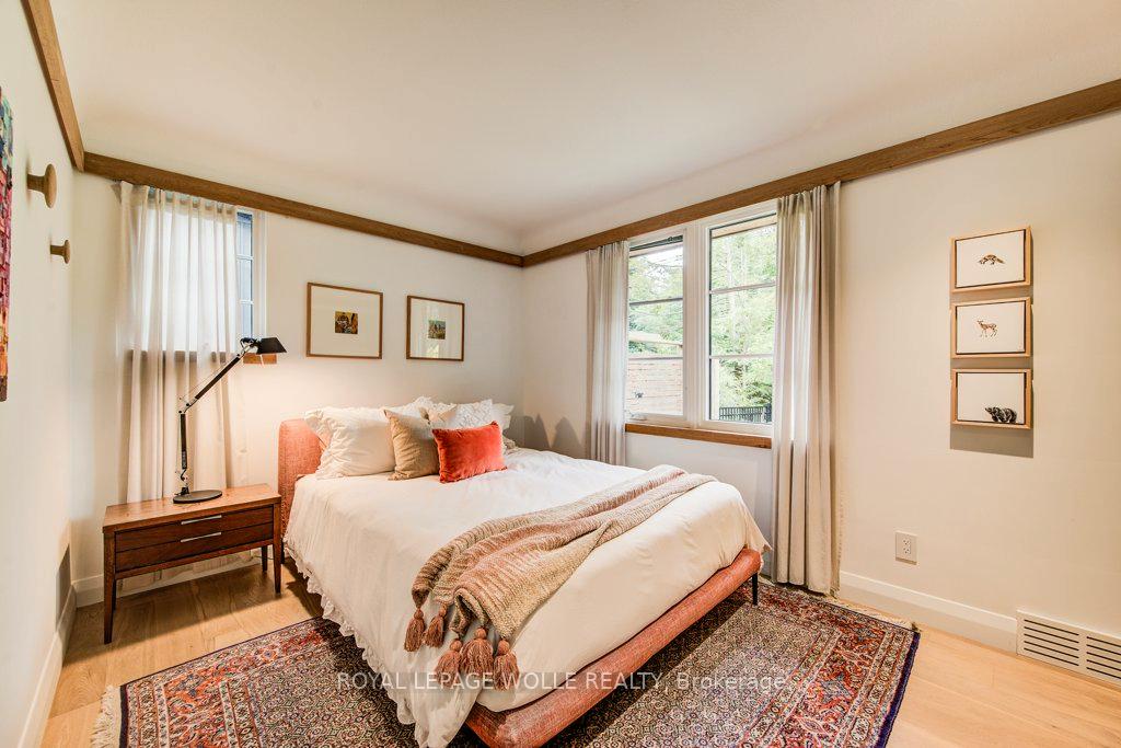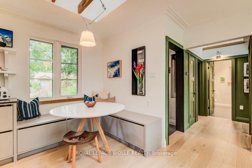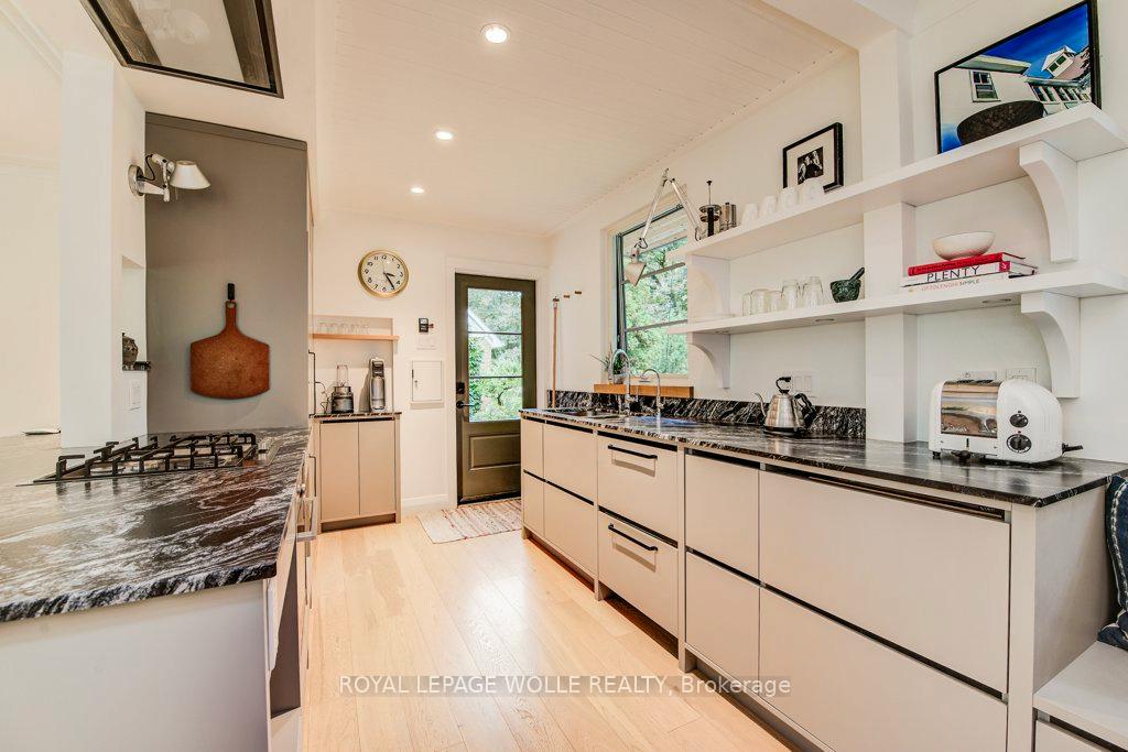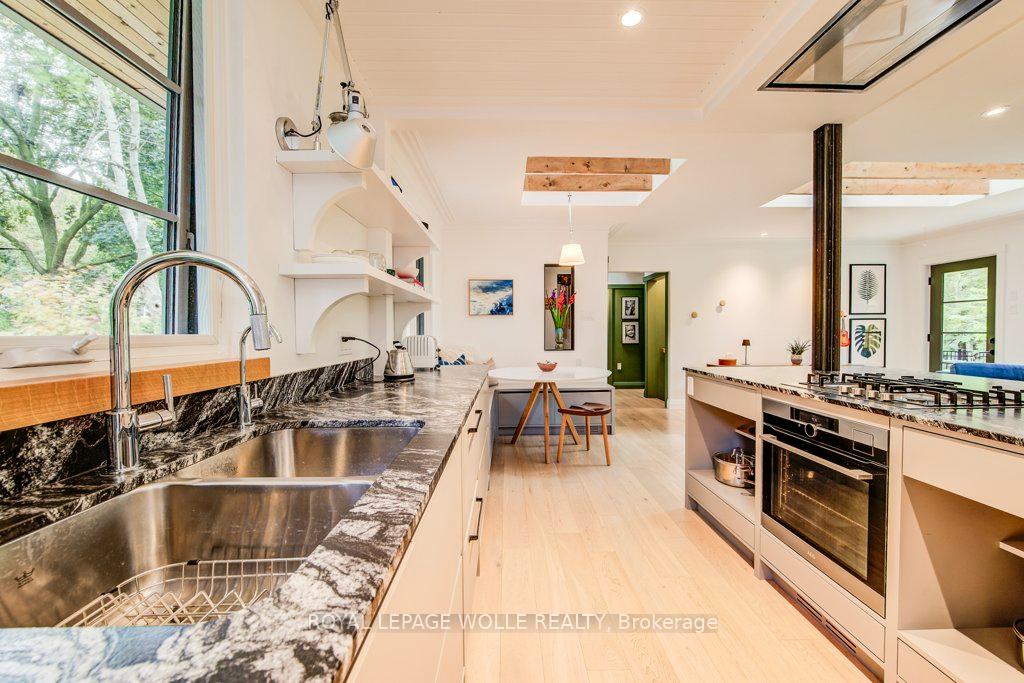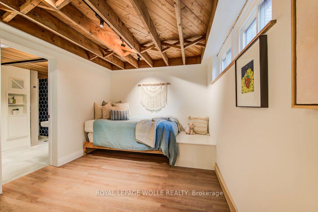 BUNGALOW in Old Westmount. Situated in one of the most desired areas in town – with mature tree-lined streets, large lots, homes with historic character and a real sense of community, this is a special place to call “home”. 189 Forsyth has been beautifully updated (2019-2020) by an architectural designer, with high end features and details. The curb appeal of this bungalow is immediately what draws you in, beautiful landscaping and a unique arched original front doorway that sets the tone for what to expect inside. The addition of skylights allows for an abundance of natural light, highlighting the open-concept kitchen/living space. Design elements are evident in every space. Engineered white oak hardwood throughout the main floor, “Artemide” Italian light fixtures, well appointed custom European kitchen with Liebherr fridge (2020), AEG Gas cooktop (2020), AEG Steam oven (2020), 2 Fisher & Paykel Dishwasher Drawers (2020) & leathered granite countertops. New windows (2020), there’s a large picture window and door in the main living area with access and a view to the back patio and garden. The main floor hosts 2 bedrooms and a 3-piece bathroom with laundry (Miele washer/dryer-2020). Architectural elements continue on the lower level. Exposed joists adding intentional design interest to this home. A cozy rec-room with a gas fireplace, a bedroom with a large walk-in closet and a second room that can be used as a 4th bedroom/office or perhaps a home gym, a 3-piece bathroom with an Italian tiled shower. Lots of storage space, too, on this level and access to the garage from the basement as well. The backyard is lined with trees and thoughtful landscaping, creating a peaceful and private space to relax or entertain in. Steps to Westmount Golf & Country Club, excellent schools, Iron Horse Trail, Belmont Village & Uptown Waterloo… all making this a premium & coveted location.