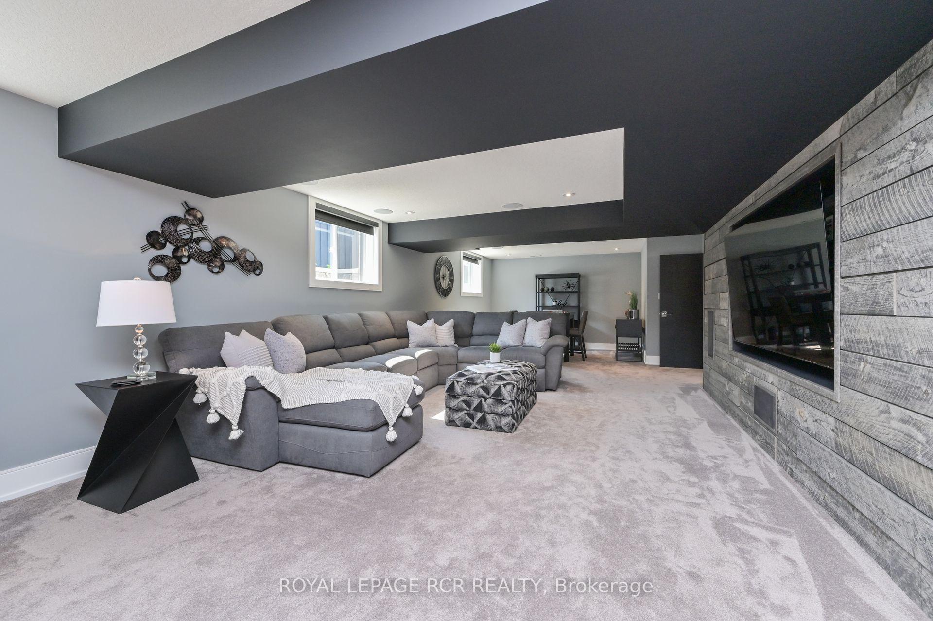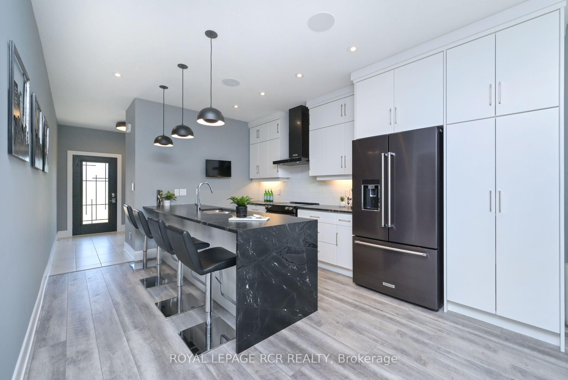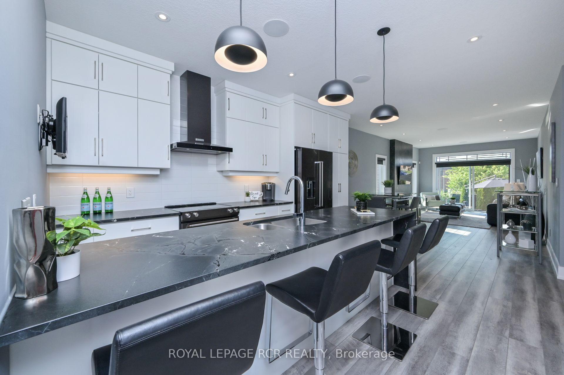Look no further for luxurious living in the heart of Fergus! Close to all amenities, fine dining, parks, and the historic charm Fergus has to offer, we proudly present this exquisite, fully customized, fully finished, 2+1-bedroom, 3-bathroom bungalow with every modern update imaginable. Maintenance free landscaping with turf, concrete walkways and massive back patio for entertaining overlooks stunning perennial gardens with numerous varieties of trees, flowers and perennials that bloom all year long. Large foyer invites guests with double closet, wood accent wall, glass railing/custom maple staircase and flows into the open concept kitchen/living/dining room boasting leather granite counters, 10′ breakfast bar, top of the line black stainless steel appliances, floor to ceiling cabinets, undermount lighting, 9′ ceilings, custom leather granite accent wall with built in tv and huge sliding doors with transom windows which walks out to back patio. Primary bedroom with walk in closet & custom 3-piece ensuite with walk in shower. Additional bedroom and custom 4-piece bathroom complete the main level. Lower level features spectacular rec/games room with custom 3D accent wall, enormous built in tv, huge laundry room, 3rd bedroom, 3-piece bathroom and storage room. **EXTRAS** Custom updated trim, doors, exquisite lighting, speaker system throughout, blink cameras, custom electronic blinds – the list doesn’t end!