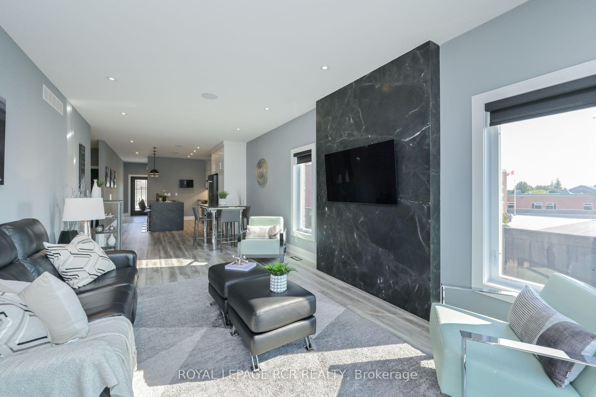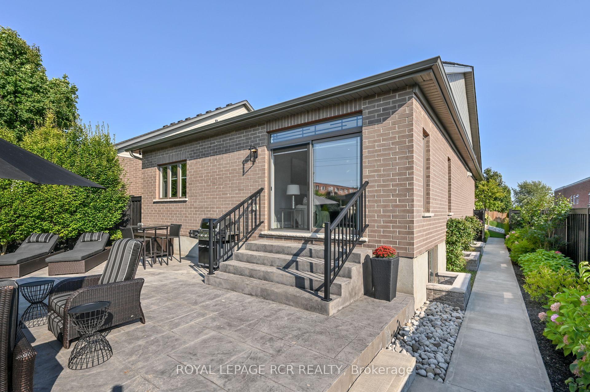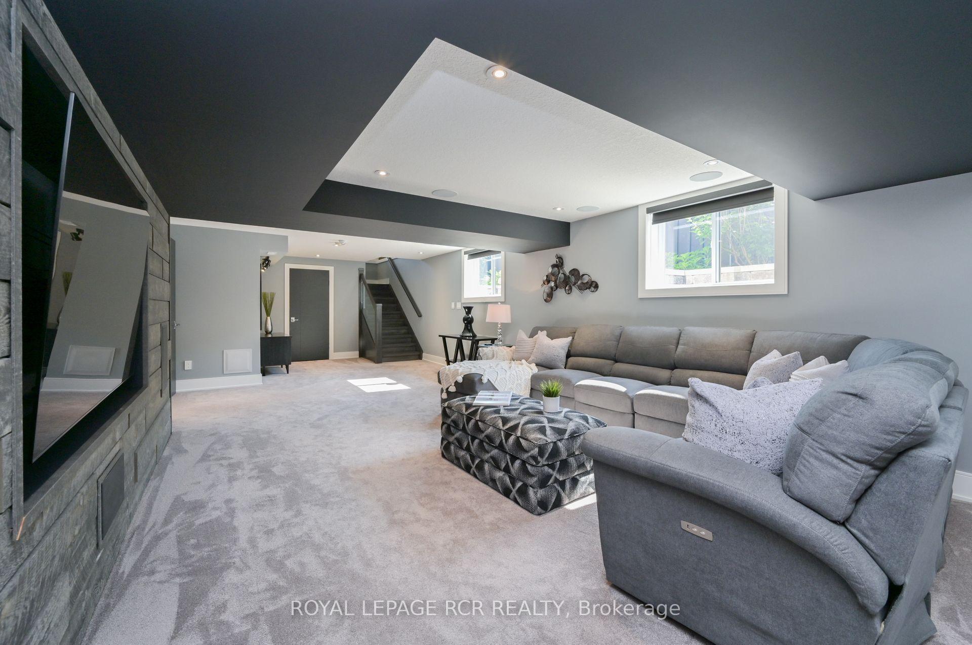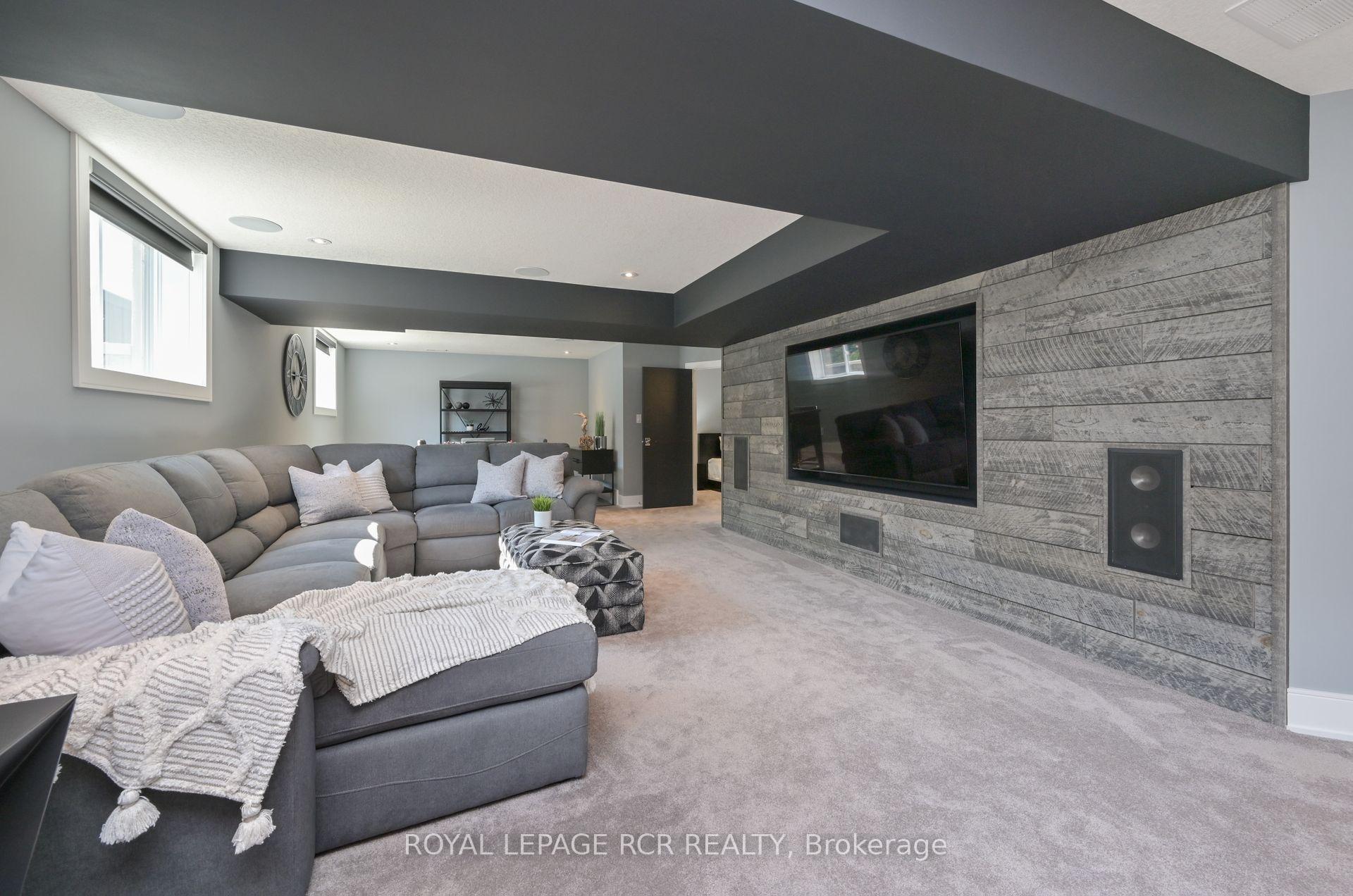 Look no further for luxurious living in the heart of Fergus! Close to all amenities, fine dining, parks, and the historic charm Fergus has to offer, we proudly present this exquisite, fully customized, fully finished, 2+1-bedroom, 3-bathroom bungalow with every modern update imaginable. Maintenance free landscaping with turf, concrete walkways and massive back patio for entertaining overlooks stunning perennial gardens with numerous varieties of trees, flowers and perennials that bloom all year long. Large foyer invites guests with double closet, wood accent wall, glass railing/custom maple staircase and flows into the open concept kitchen/living/dining room boasting leather granite counters, 10′ breakfast bar, top of the line black stainless steel appliances, floor to ceiling cabinets, undermount lighting, 9′ ceilings, custom leather granite accent wall with built in tv and huge sliding doors with transom windows which walks out to back patio. Primary bedroom with walk in closet & custom 3-piece ensuite with walk in shower. Additional bedroom and custom 4-piece bathroom complete the main level. Lower level features spectacular rec/games room with custom 3D accent wall, enormous built in tv, huge laundry room, 3rd bedroom, 3-piece bathroom and storage room. **EXTRAS** Custom updated trim, doors, exquisite lighting, speaker system throughout, blink cameras, custom electronic blinds – the list doesn’t end!