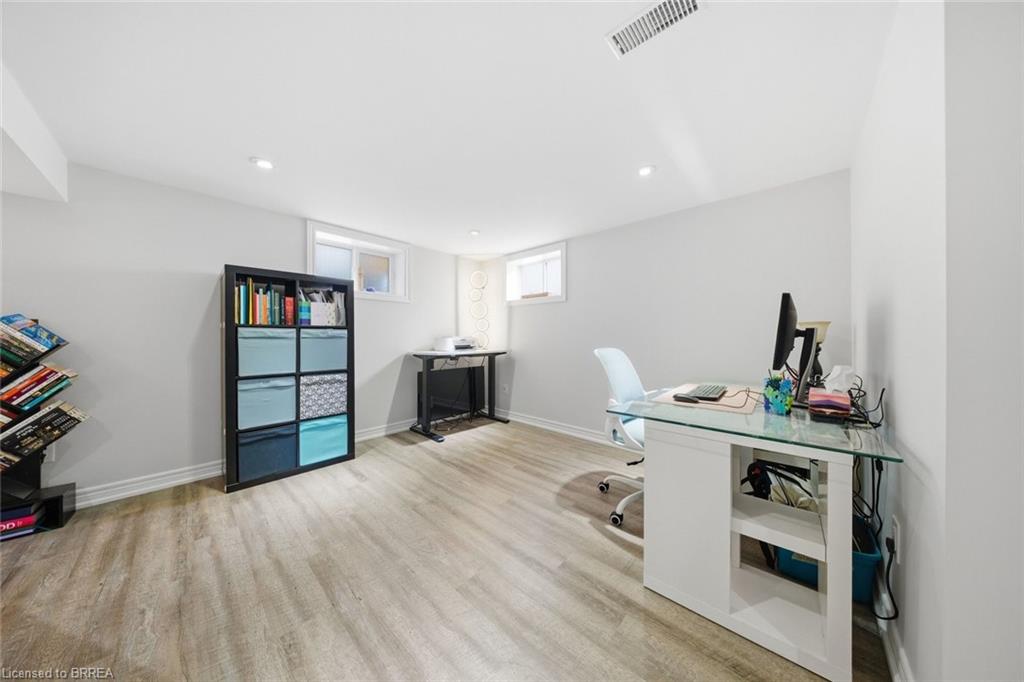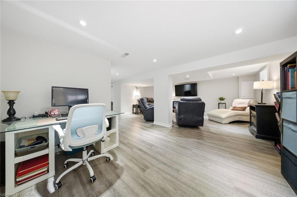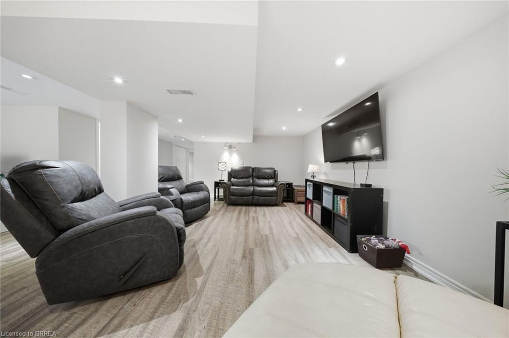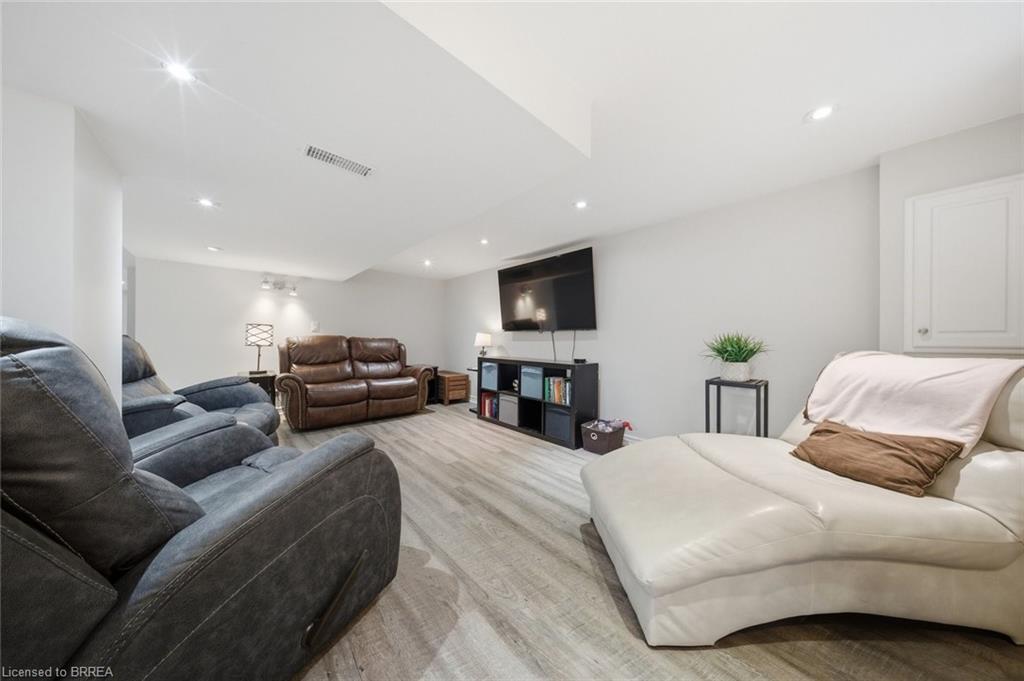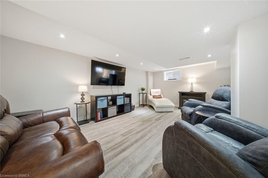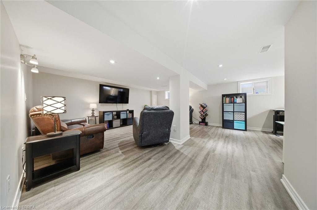 Down the hall you’ll find three generous-sized bedrooms, including the primary bedroom, along with a 4-piece bathroom. The finished lower level offers even more living space and is beautifully finished with a bright, modern feel. The large rec room features recessed pot lighting throughout and plenty of room for a TV area, play space, or home office. This level also includes an updated 3-piece bathroom with black hardware, making it ideal for guests or growing families.