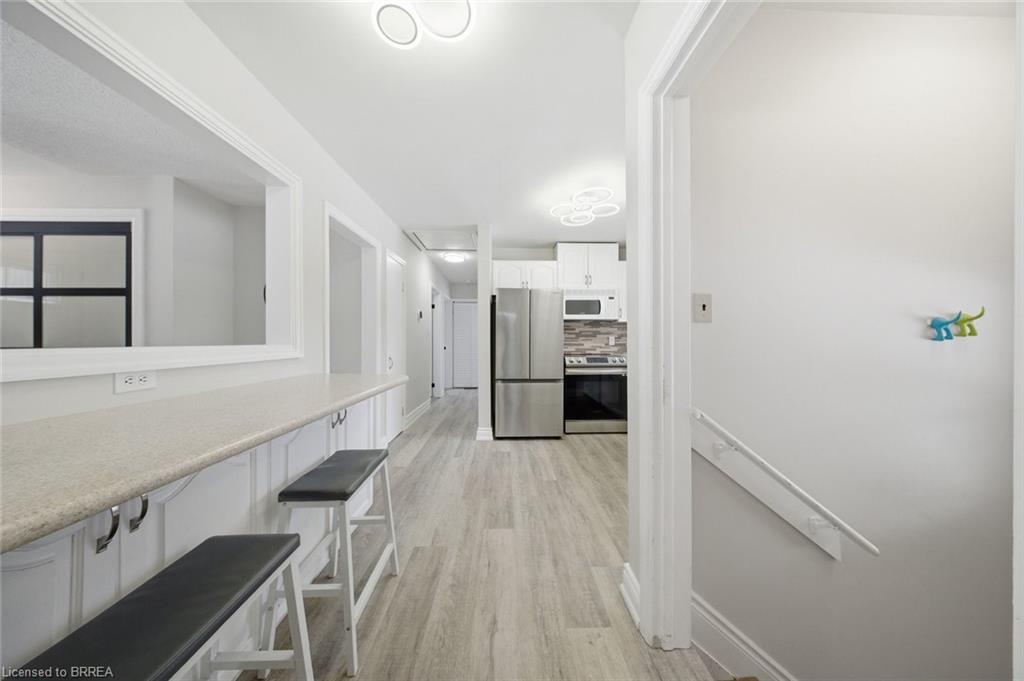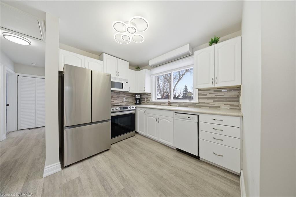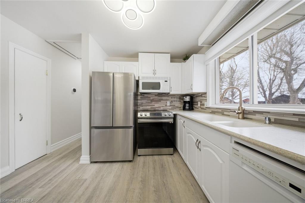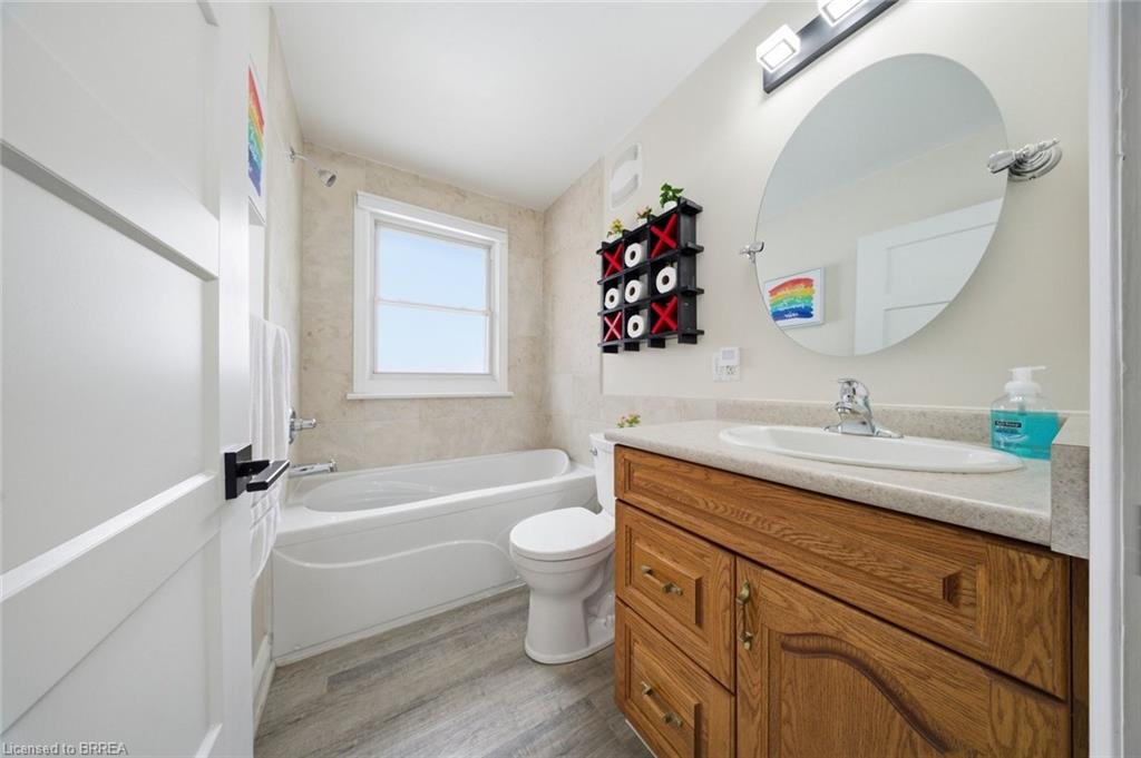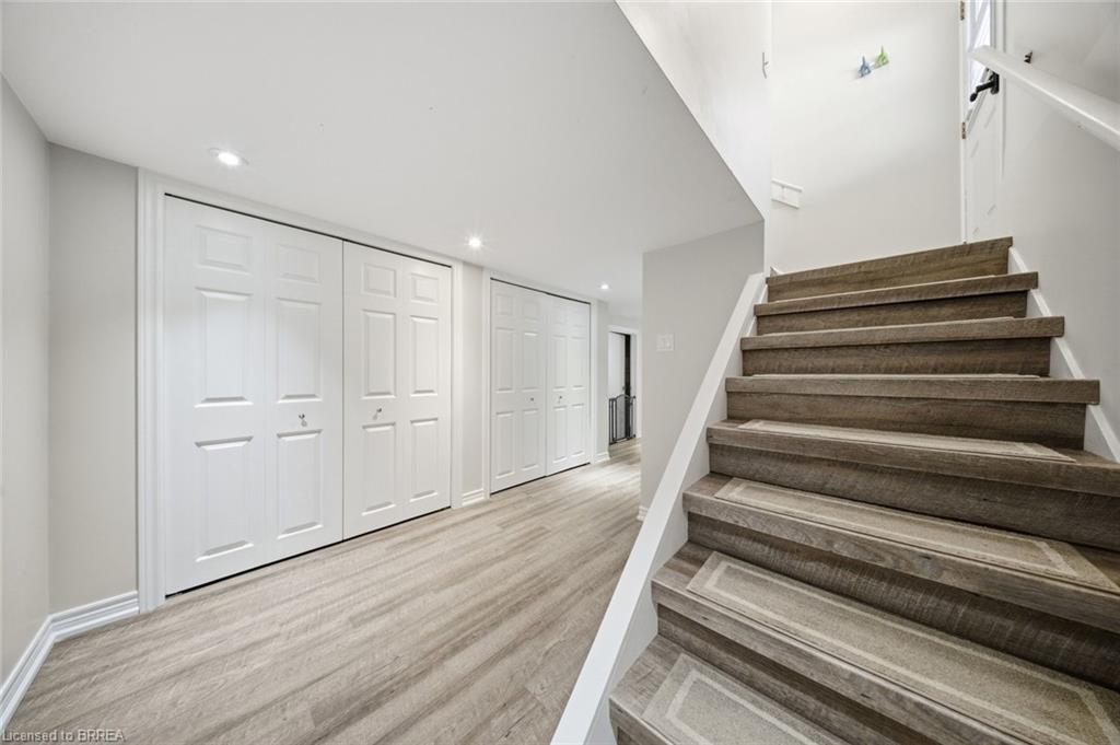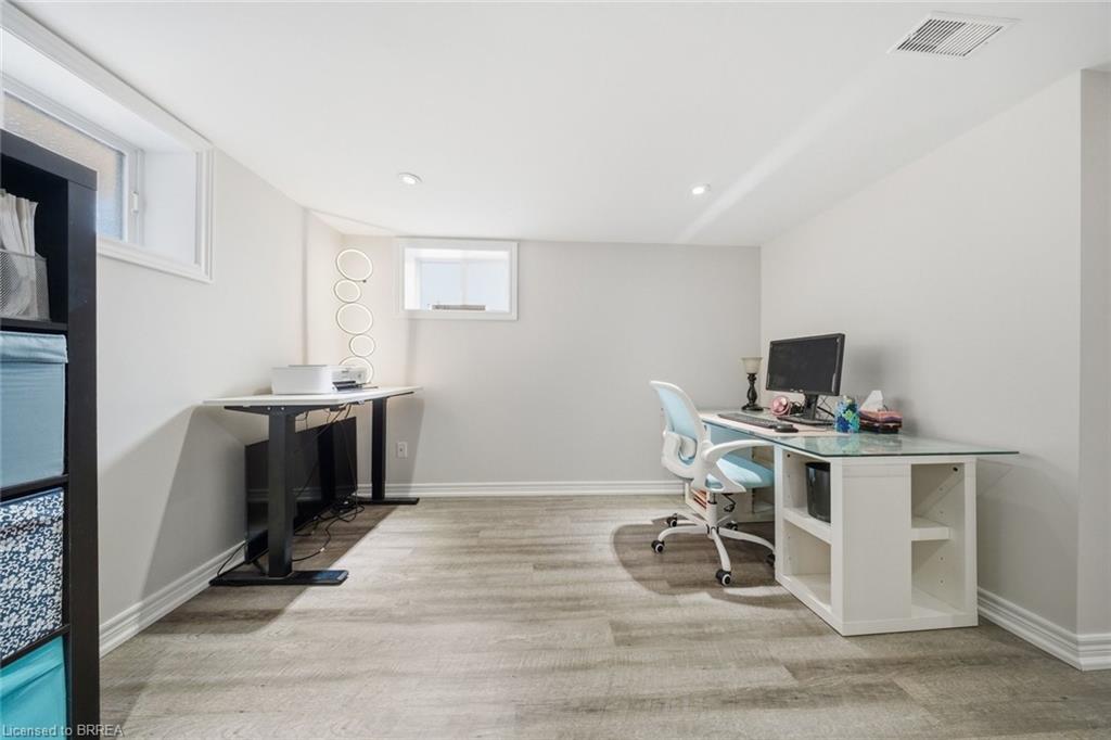 Down the hall you’ll find three generous-sized bedrooms, including the primary bedroom, along with a 4-piece bathroom. The finished lower level offers even more living space and is beautifully finished with a bright, modern feel. The large rec room features recessed pot lighting throughout and plenty of room for a TV area, play space, or home office. This level also includes an updated 3-piece bathroom with black hardware, making it ideal for guests or growing families.