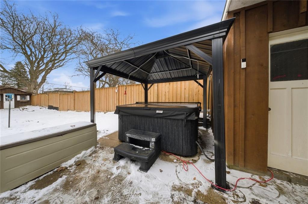 Situated on an impressive 64′ x 150′ lot, this property offers a rare amount of outdoor space within the town. The brand new cement driveway provides ample parking and includes an EV charger. The spacious backyard is perfect for entertaining or relaxing, complete with a large concrete patio, gazebo, and hot tub.