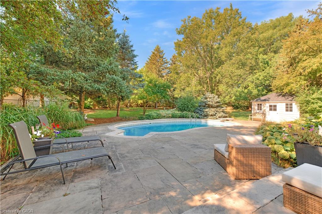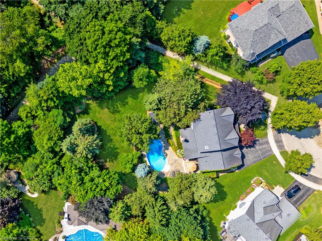 Welcome to 19 Huntingwood Court! With just under 3,000 square feet above grade, a massive half-acre (0.53) south-facing pie-shaped lot surrounded by extensive green space, mature trees, and a backyard built for summer, this builder-owned home delivers privacy, comfort, and classic family vibes in one of Kitchener’s most desirable neighbourhoods. Check out our TOP 7 reasons why this house should be your next home! #7: BACKYARD RETREAT: The south-facing, half-acre pie-shaped lot is a rare city find — fully fenced, landscaped, with mature trees & no rear neighbours. You’ll love the in-ground pool, & the 8×12-foot pool house. #6: PRIME DOON SOUTH LOCATION: Tucked on a quiet cul-de-sac in Wyldwoods with only 7 neighbours, the home is walking distance to great schools, scenic trails, Conestoga College, and just minutes from Highway 401. #5: INVITING CURB APPEAL: With its brick façade, double car garage, mature landscaping, and covered front porch, the home gives off a warm welcome before you even step inside. #4: WARM & FUNCTIONAL MAIN FLOOR: The two-story 17’ foyer sets the tone. You’ll find hardwood flooring, a formal dining room with a bay window & a stunning 2-story great room with clerestory windows. The main floor also features a main floor primary suite — complete with a bay window, a walk-in closet, and a 4-piece en-suite bathroom with a whirlpool tub and a separate shower. #3: LARGE EAT-IN KITCHEN: The kitchen blends function and flow, with granite countertops, stainless steel appliances, a 3-seater island with breakfast bar, plenty of cabinetry, and even a built-in study nook. #2: BEDROOMS & BONUS LOFT: Upstairs, you’ll find 3 bedrooms. You’ll also love the airy loft with vaulted ceilings & an oversized window — perfectly suited as a kids’ play space, study, or quiet escape. #1: UNFINISHED BASEMENT WITH POTENTIAL: The insulated basement is a blank slate. Finish it to suit your needs, whether that’s a rec room, gym, home theatre, or guest suite.