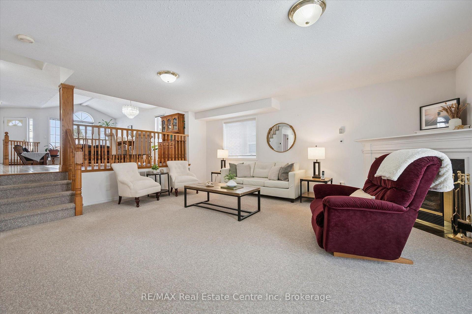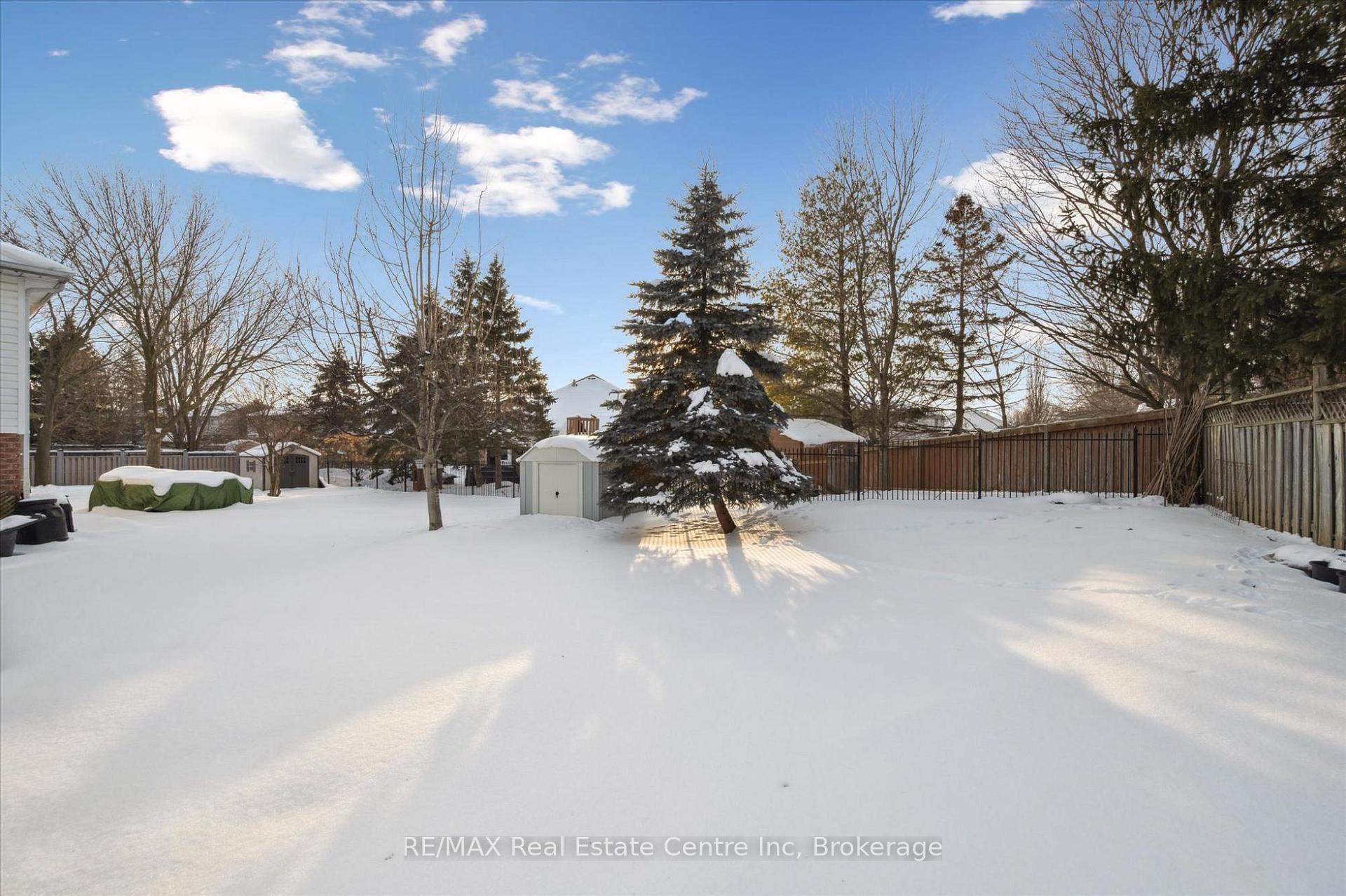 19 Merganser Dr is a spacious & well-maintained 4+1 bdrm home situated on large 50 X 120ft lot surrounded by mature trees in one of Guelph’s most sought-after, family-friendly neighbourhoods! From the moment you enter you’re welcomed by inviting living room W/hardwood, vaulted ceilings & arched picture window that fills space W/natural light. Hardwood floors continues into formal dining room creating perfect setting for hosting family dinners & special occasions. Glass pocket doors lead to spacious kitchen W/handsome dark cabinetry, tiled backsplash & breakfast bar W/seating for casual dining. The kitchen flows into dinette area W/large window & sliding doors overlooking the backyard, ideal spot to enjoy morning coffee while taking in peaceful outdoor views. Family room offers garden doors & fireplace creating a warm & welcoming atmosphere. This level is completed by generous bdrm W/large window & 3pc bath perfect for guests, extended family or home office. Upstairs the primary bdrm impresses W/vaulted ceilings, large window & ample closet space. 4pc cheater ensuite W/shower & sep jacuzzi tub. 2 add’l bdrms complete the upper level. Finished bsmt provides versatility W/rec room filled W/natural light from oversized window. Space is ideal for gym, playroom, media room or office. 5th bdrm W/closet & egress window adds even more functionality. Private backyard retreat features patio area ideal for outdoor dining & entertaining surrounded by mature trees that provide exceptional privacy. Expansive grassy yard offers lots of room for kids &pets to play making it a true extension of the home’s living space. Roof has been recently replaced! At the end of the street you’ll find access to Kortright Hills Public School & Mollison Park W/trails & off-leash dog park. Nearby YMCA offers gym, pool, daycare & community programs. Quick access to Hanlon Pkwy makes commuting easy & efficient. Fantastic opportunity to own a spacious well-located home designed for comfortable living!