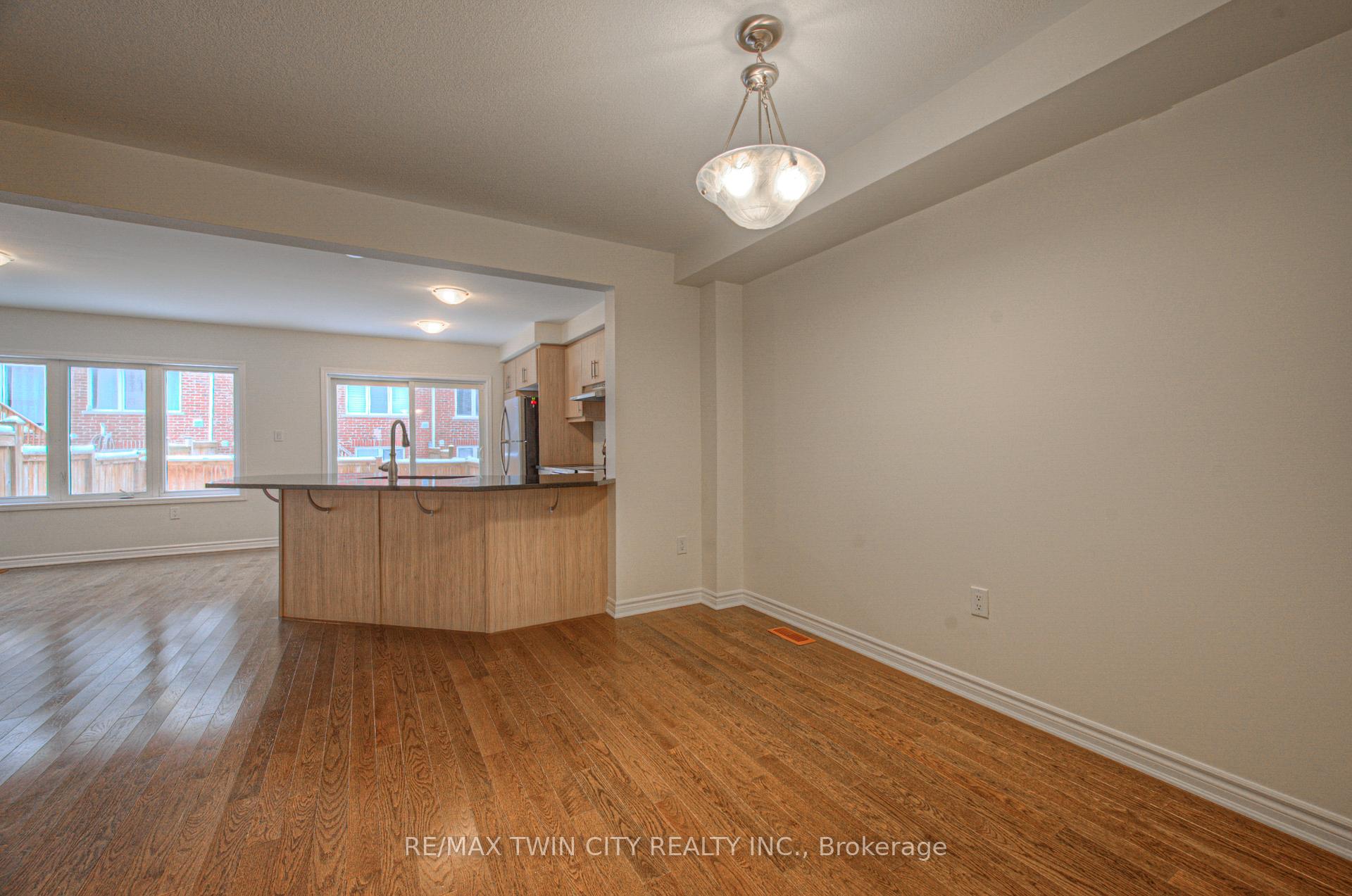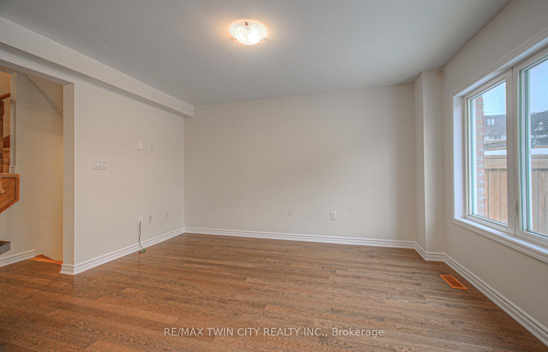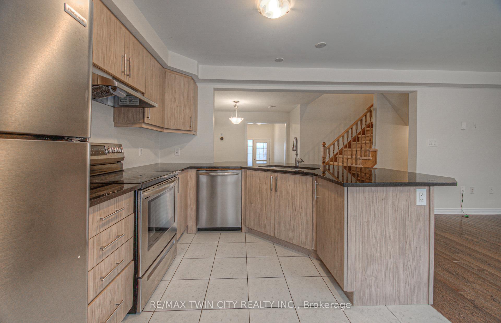 This beautiful 3-bedroom, 3-bathroom Mattamy townhouse is located in the family-friendly Rivermill community. The home is freshly painted and features a bright and spacious open-concept living and dining area, complemented by an exquisite gourmet kitchen with top-of-the-line stainless steel appliances, elegant granite countertops, and a stunning island with an undermount sink and breakfast bar. Upstairs, there are three well-appointed bedrooms, including a luxurious primary suite with its own ensuite bathroom and walk-in closet. The basement remains untouched and includes large lookout windows, offering great potential for future customization. The home comes equipped with a stainless steel fridge, stove, built-in dishwasher, and range hood fan, along with a washer, dryer, central air conditioning, and all existing light fixtures. Conveniently situated in Cambridge, this remarkable residence is just minutes from Highway 401, schools, parks, and a wide range of amenities.