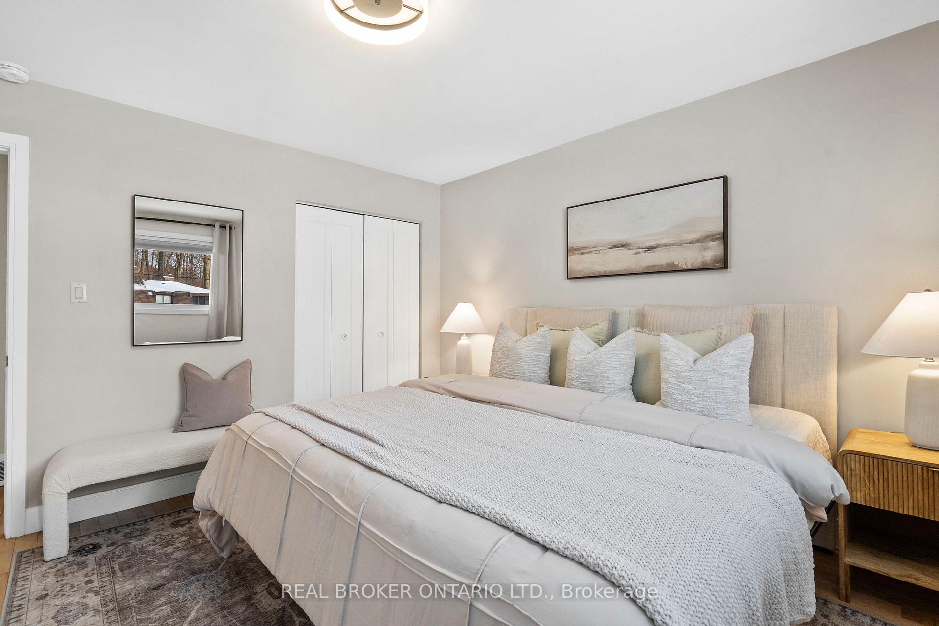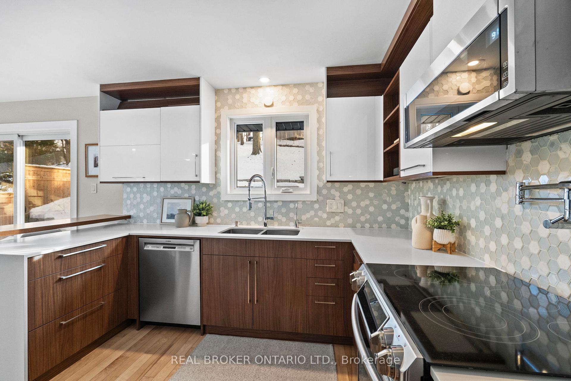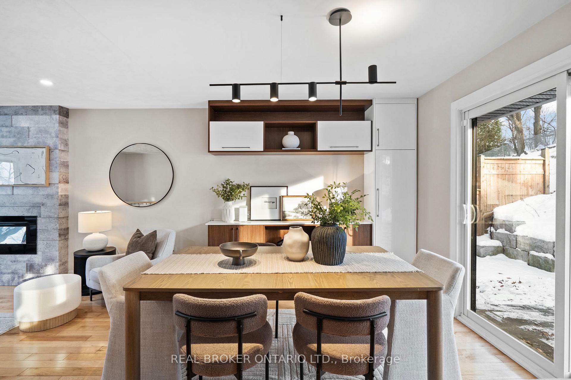 Updated raised bungalow in sought-after Hespeler, where established streets, mature trees, and a strong sense of neighbourhood set the tone for everyday living.Entering the home you walk into a proper front foyer with closet and a built-in bench with drawers, ideal for keeping everyday essentials organized. This level features a full bathroom, a spacious recreation room with a gas fireplace and large window, and a separate flex room with pocket doors that works beautifully as a bedroom, home office, or workout space. The upgraded laundry room is straight out a Pinterest board, with quartz counters, thoughtful storage, and a beverage bar.Upstairs is where daily life flows. The kitchen is functional and refined, featuring under-cabinet lighting, a pot filler, built-in wine rack, and a sink overlooking the backyard and surrounding mature trees. Built-ins continue throughout the home, creating a place for everything and making clutter-free living feel effortless.The main living level offers a natural flow between the kitchen, dining, and living areas, ideal for everyday living and entertaining. Cozy evenings are spent by the fireplace, while the walkout to the backyard makes indoor-outdoor living seamless. Three bright bedrooms complete this level, including a primary bedroom with built in California Closets storage, along with carpet-free living throughout and an upgraded main bathroom with double sinks and a tub/shower combination with glass door.The professionally landscaped backyard (2023) features multiple patio areas, front- and back-yard irrigation, outdoor audio wiring, smart soffit lighting, and a hot tub. A second-tier seating area is perfect for evening gatherings, while a grassy area provides space for play or pets. Designed to be enjoyed year-round, this backyard is both a private retreat and an entertaining hub.Located close to schools, parks, trails and highway access, this raised bungalow offers a flexible layout that adapts to every stage of life.