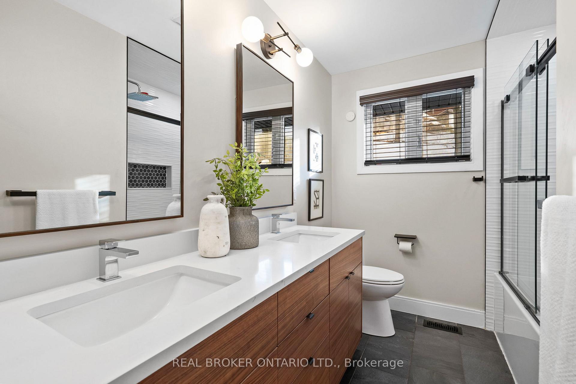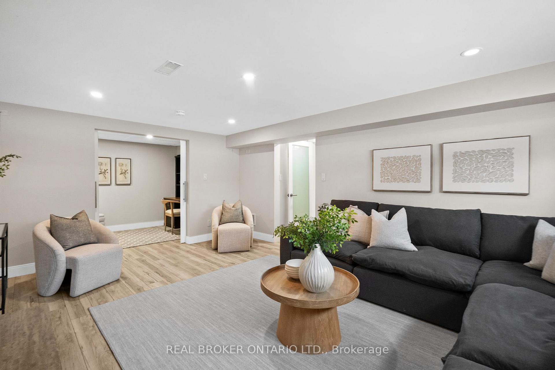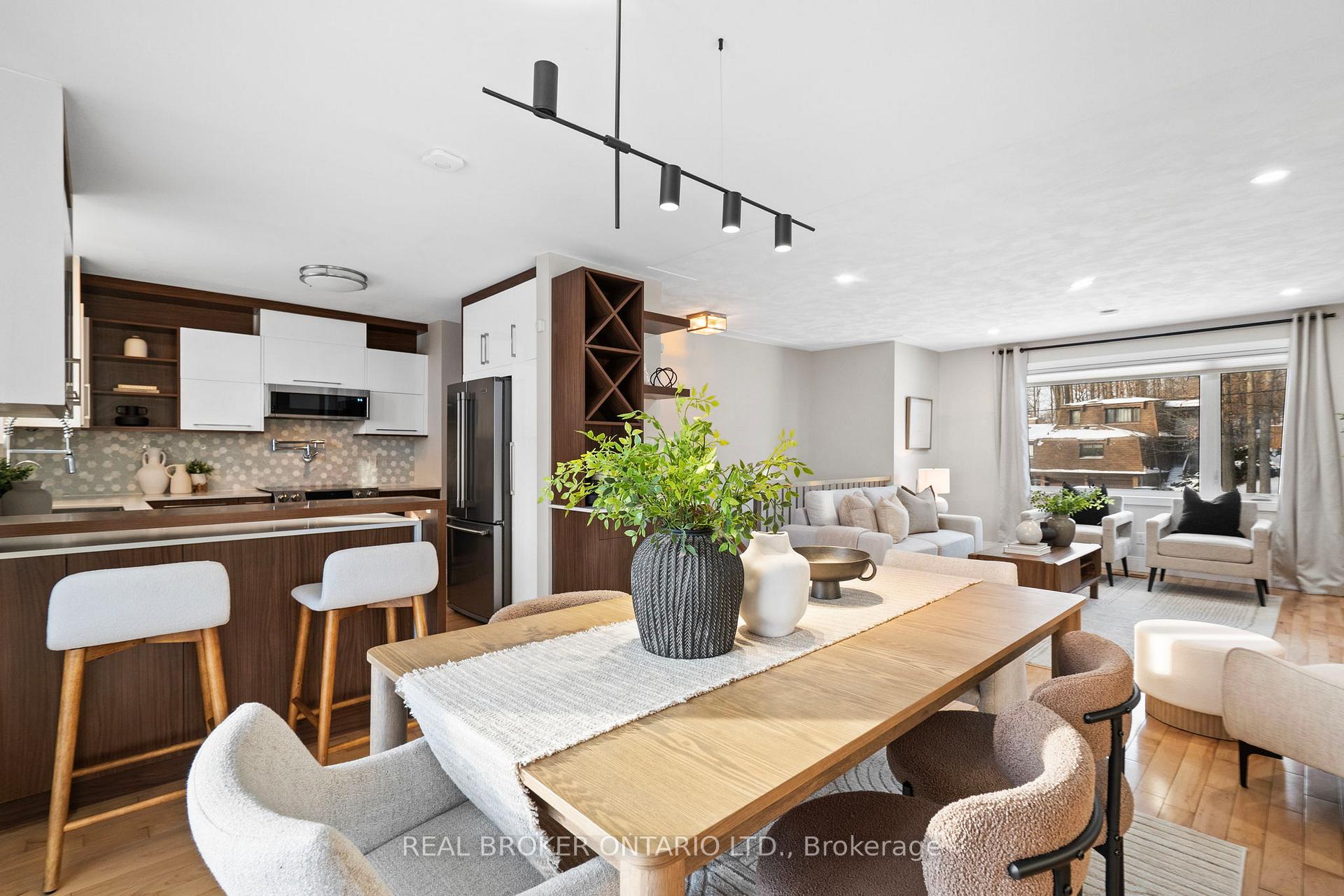 Updated raised bungalow in sought-after Hespeler, where established streets, mature trees, and a strong sense of neighbourhood set the tone for everyday living.Entering the home you walk into a proper front foyer with closet and a built-in bench with drawers, ideal for keeping everyday essentials organized. This level features a full bathroom, a spacious recreation room with a gas fireplace and large window, and a separate flex room with pocket doors that works beautifully as a bedroom, home office, or workout space. The upgraded laundry room is straight out a Pinterest board, with quartz counters, thoughtful storage, and a beverage bar.Upstairs is where daily life flows. The kitchen is functional and refined, featuring under-cabinet lighting, a pot filler, built-in wine rack, and a sink overlooking the backyard and surrounding mature trees. Built-ins continue throughout the home, creating a place for everything and making clutter-free living feel effortless.The main living level offers a natural flow between the kitchen, dining, and living areas, ideal for everyday living and entertaining. Cozy evenings are spent by the fireplace, while the walkout to the backyard makes indoor-outdoor living seamless. Three bright bedrooms complete this level, including a primary bedroom with built in California Closets storage, along with carpet-free living throughout and an upgraded main bathroom with double sinks and a tub/shower combination with glass door.The professionally landscaped backyard (2023) features multiple patio areas, front- and back-yard irrigation, outdoor audio wiring, smart soffit lighting, and a hot tub. A second-tier seating area is perfect for evening gatherings, while a grassy area provides space for play or pets. Designed to be enjoyed year-round, this backyard is both a private retreat and an entertaining hub.Located close to schools, parks, trails and highway access, this raised bungalow offers a flexible layout that adapts to every stage of life.