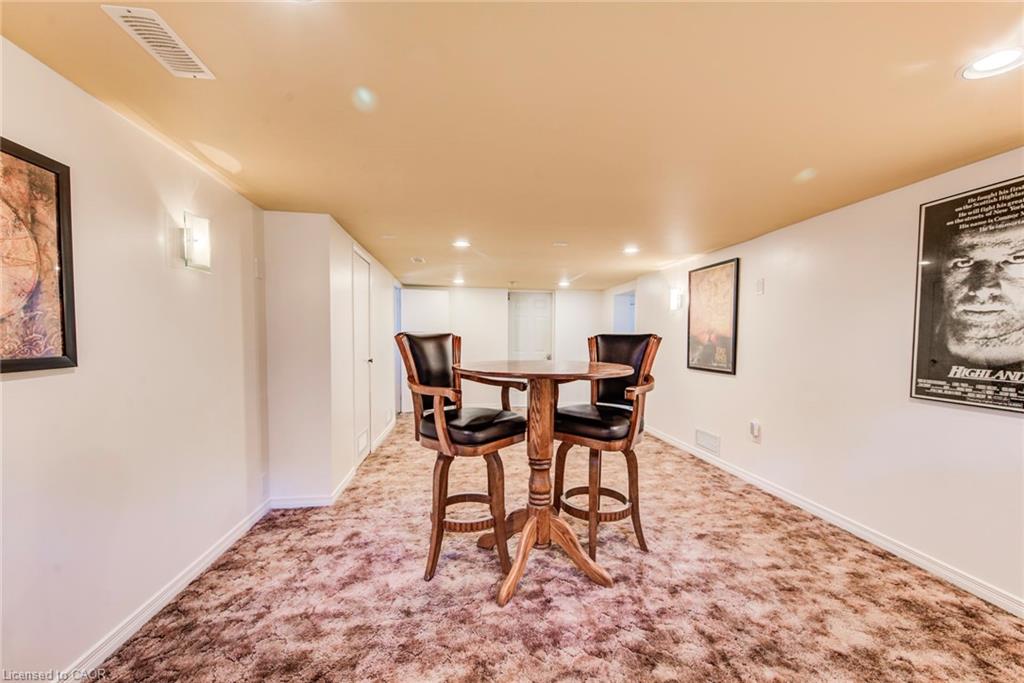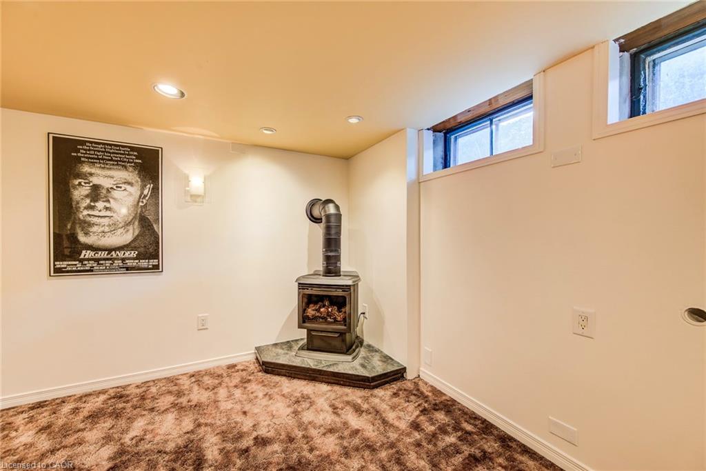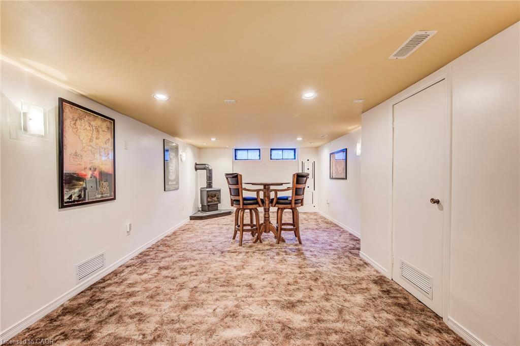 The eat-in kitchen is equipped with a natural gas stove, vented range hood, and luxury vinyl tile flooring. A separate rear entrance, plus interior access from the garage, opens the door to in-law suite possibilities. Downstairs, the 25’ x 12’, freshly painted recreation room features the warmth of a gas fireplace—an inviting space that could easily be adapted into a combined living and bedroom area. The spacious 20’ x 11’ laundry and utility room provides plenty of flexibility, including potential for a second bathroom and kitchenette.