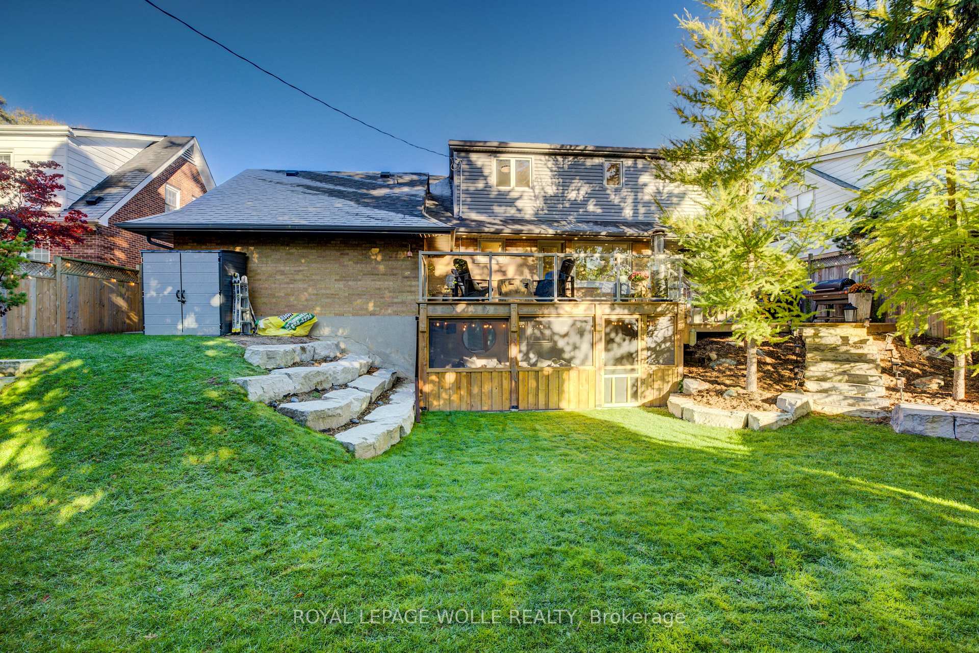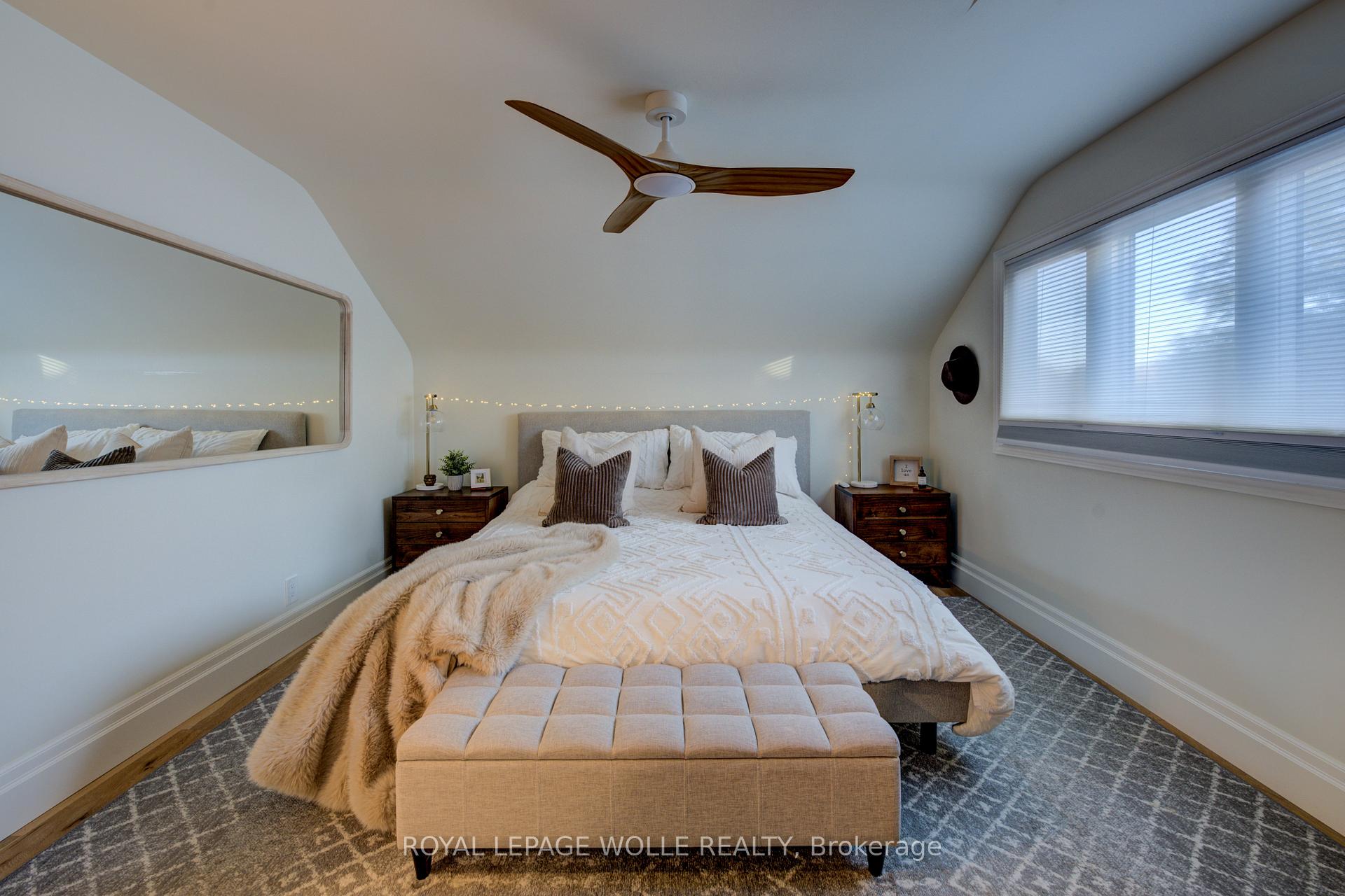 Welcome to 191 John St W, located in the highly sought-after Westmount neighborhood of Waterloo! This is the one you don’t want to miss! Walk to Westmount Golf Course and uptown Waterloo. This beautifully updated and meticulously maintained 3-bedroom, 3-bathroom home combines modern elegance with exceptional comfort. Step inside to discover hardwood floors and a warm, inviting main-floor living area featuring a gas fireplace-perfect for cozy nights in. The custom kitchen by Casey’s Kitchens is a true showpiece, complete with a large island with generous storage, gas stove, and built-in oven with air fryer function. The open-concept layout flows effortlessly into the large dining area and main-floor bar- perfect for entertaining. A convenient 2-piece bathroom completes the main level. Upstairs, you’ll find three bedrooms and a 4-piece bathroom, offering both style and comfort. The walkin attic space has awesome storage. The finished walkout basement adds even more living and hang out space in the recroom, also featuring a beautiful and modern 3 piece bathroom (2025) with heated floors and a laundry area. There is great storage space in the basement. Step outside to your private retreat – an enclosed outdoor Muskoka room with a fireplace, quartz counters on the bar and fully screened in perfect for relaxing or entertaining with no bugs. Enjoy a large deck, fully fenced backyard, and two storage sheds. The great sized landscaped yard could easily fit a swimming pool if desired. With a double-car garage (with loft storage) and dbl wide driveway you have parking for up to eight vehicles. Major exterior updates completed in 2025 include new siding, soffit, gutters, stone façade, eavestroughs, and roof, this home ensures peace of mind for years to come. Need more space… renderings are available for possible primary suite/bonus room over the garage. Nothing to do but move in and enjoy!
