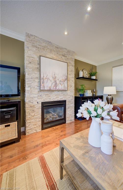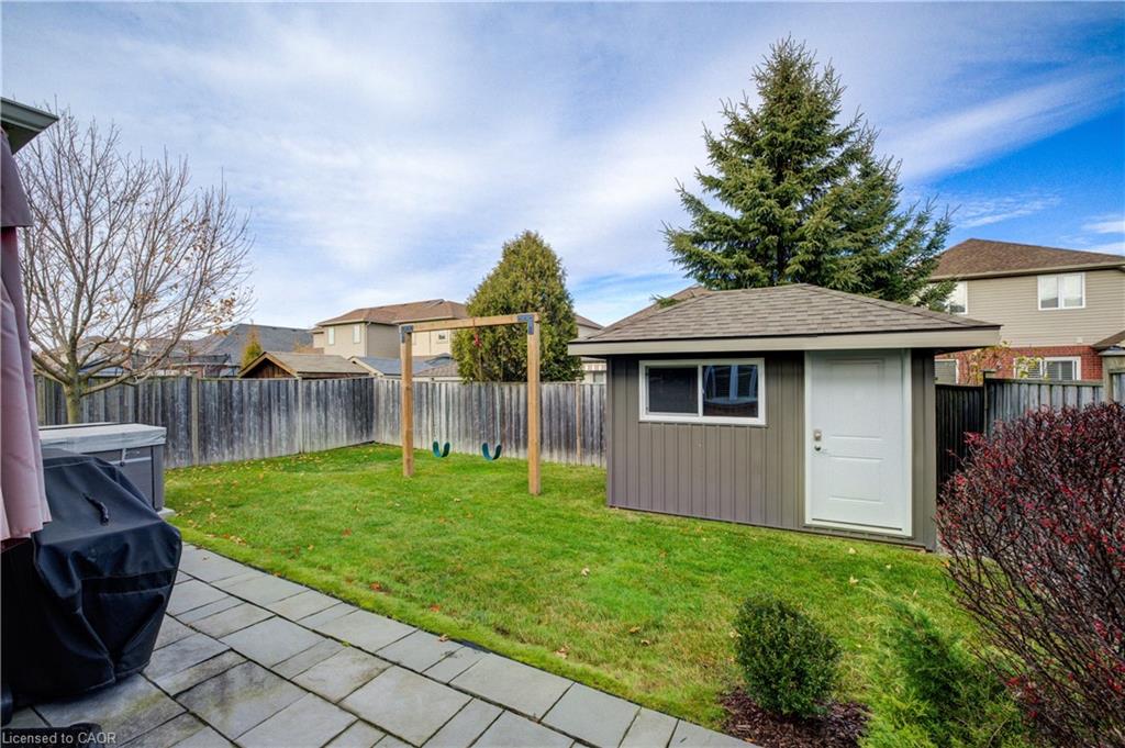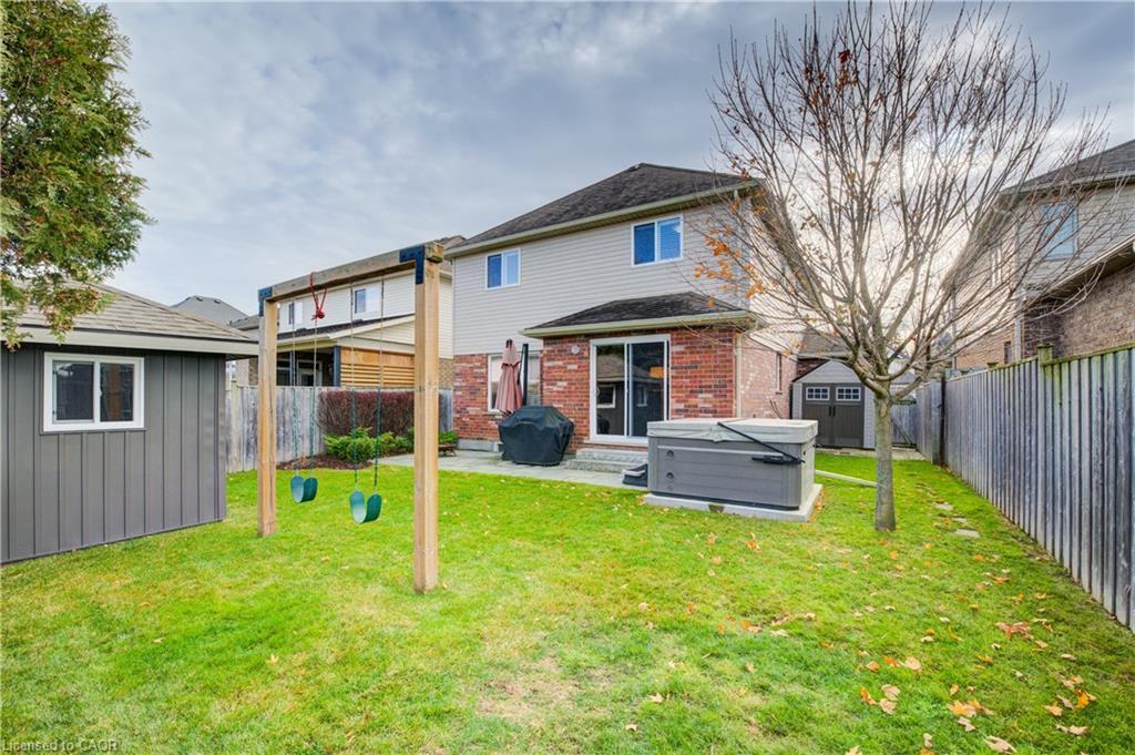 Welcome to this beautifully maintained 4-bedroom, 4-bathroom home offering approximately 2,176 sq. ft. of living space plus a fully finished basement. The open-concept main floor features a white kitchen with ample cupboard and counter space, backsplash, a functional island return, and a patio door leading to a stone patio with a hot tub, perfect for entertaining. The main-floor living room includes a cozy gas fireplace, adding warmth and character to the space. California shutters throughout provide style, privacy, and light control. The fully fenced backyard also includes two storage sheds for added convenience. The finished basement extends your living area with a spacious rec room, a 3-piece bathroom, and custom built-in cupboards for excellent storage and organization. Upstairs, you’ll find four generous bedrooms with custom built in closets, including the primary suite with a walk-in closet and 4-piece ensuite. Additional features include a double-car garage with built-in shelving, gas BBQ hook up central vac, neutral décor, and a desirable location close to the Memorial Centre. This home offers an ideal blend of comfort, style, and thoughtful upgrades.