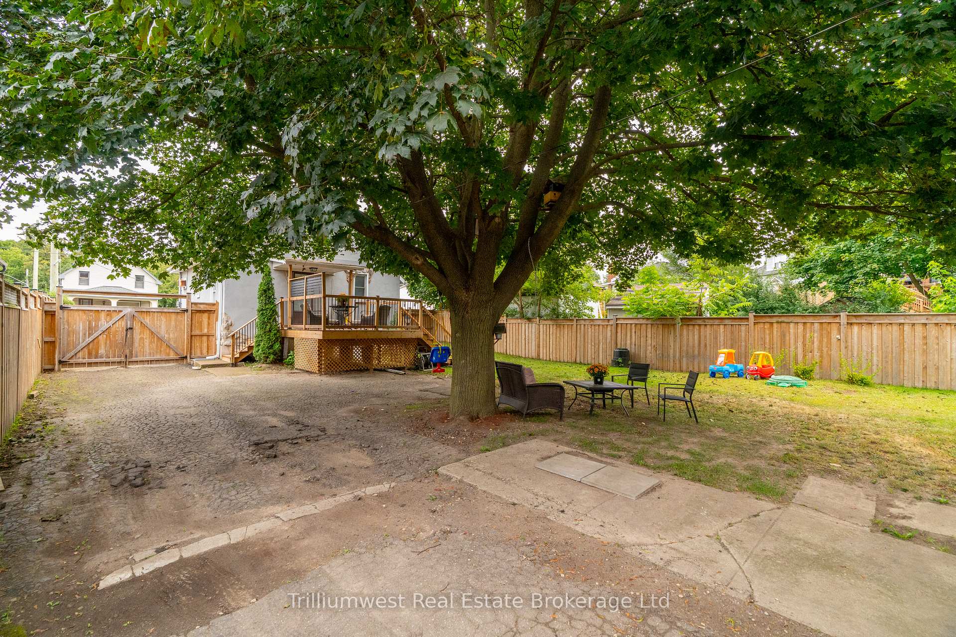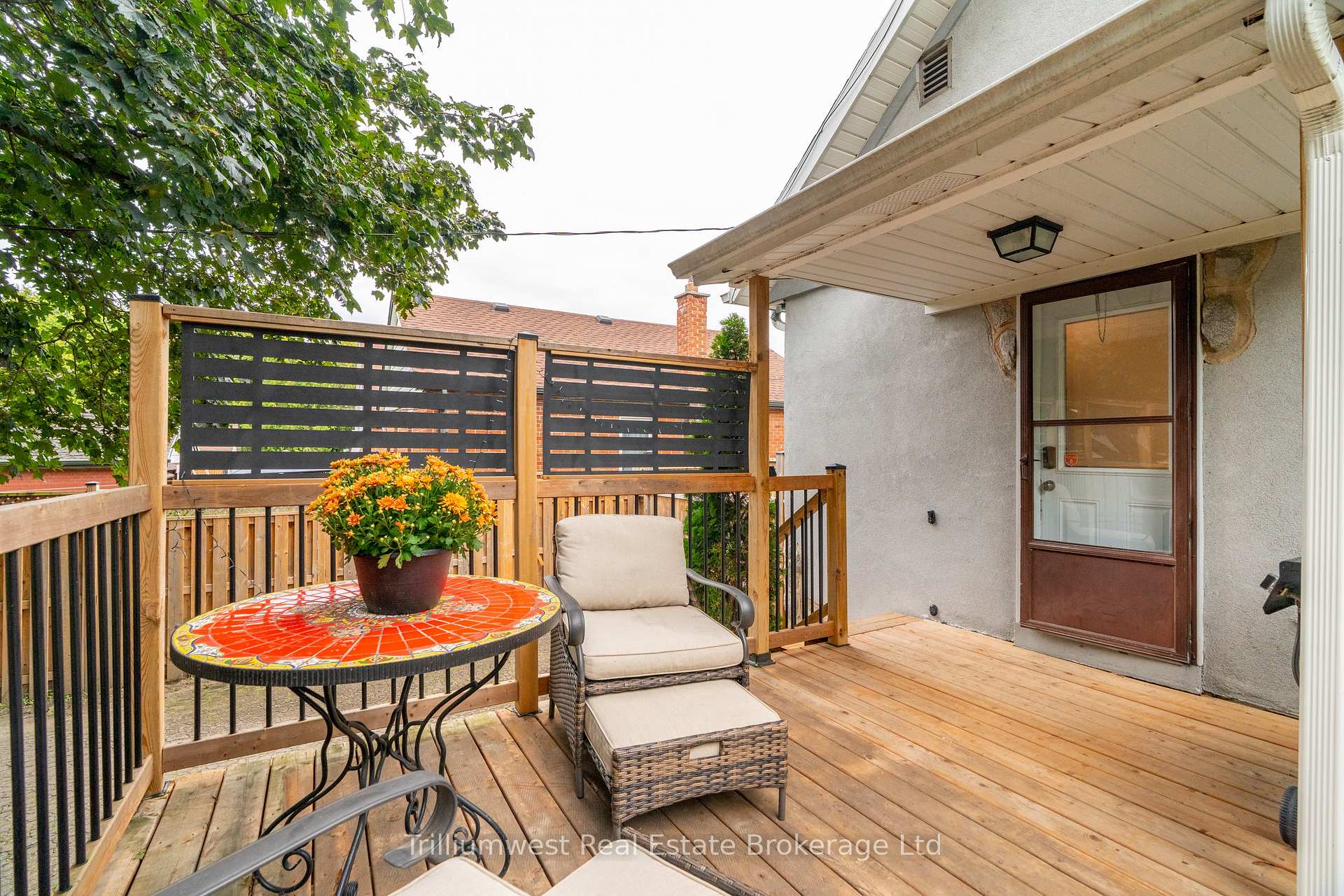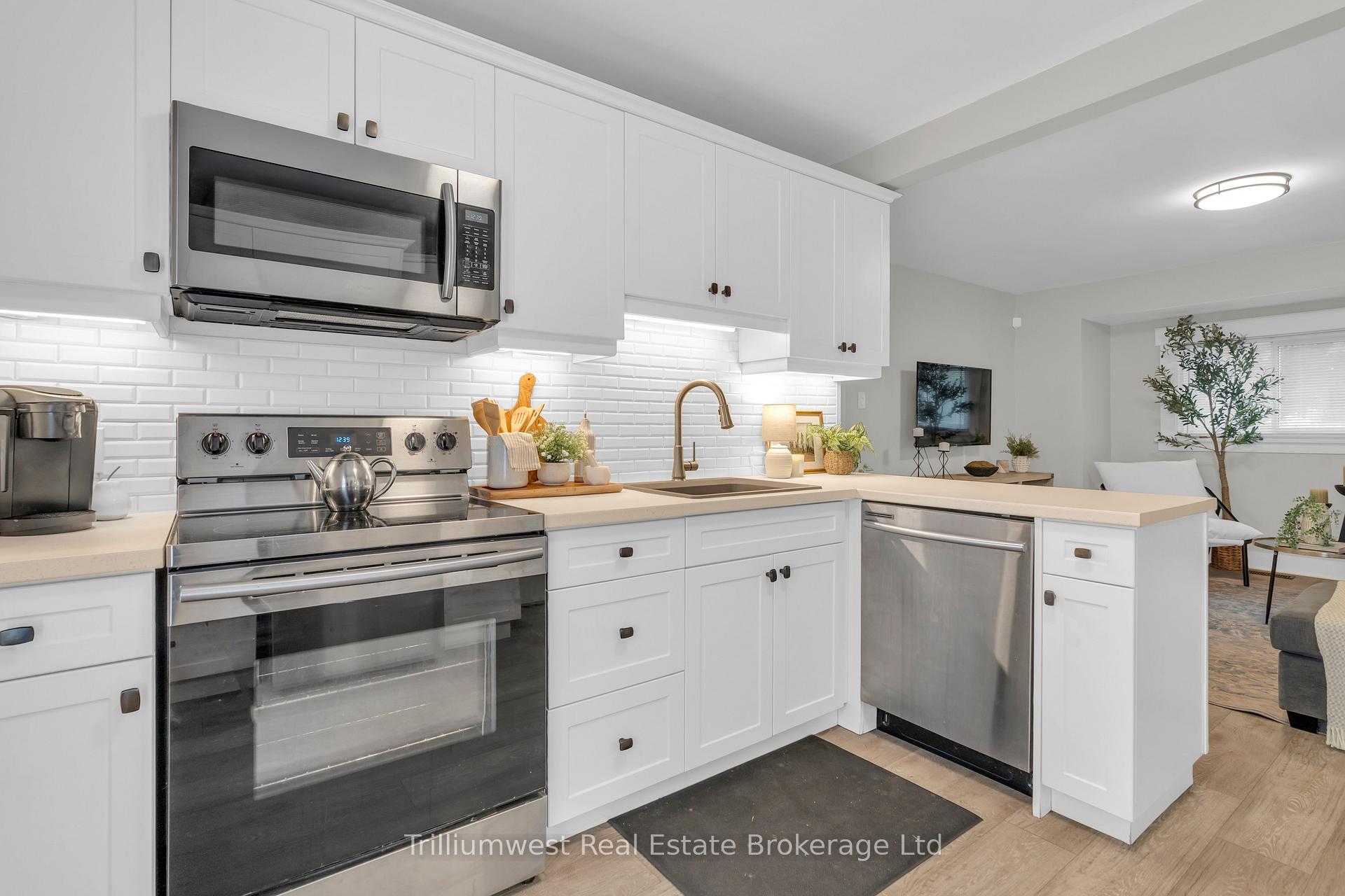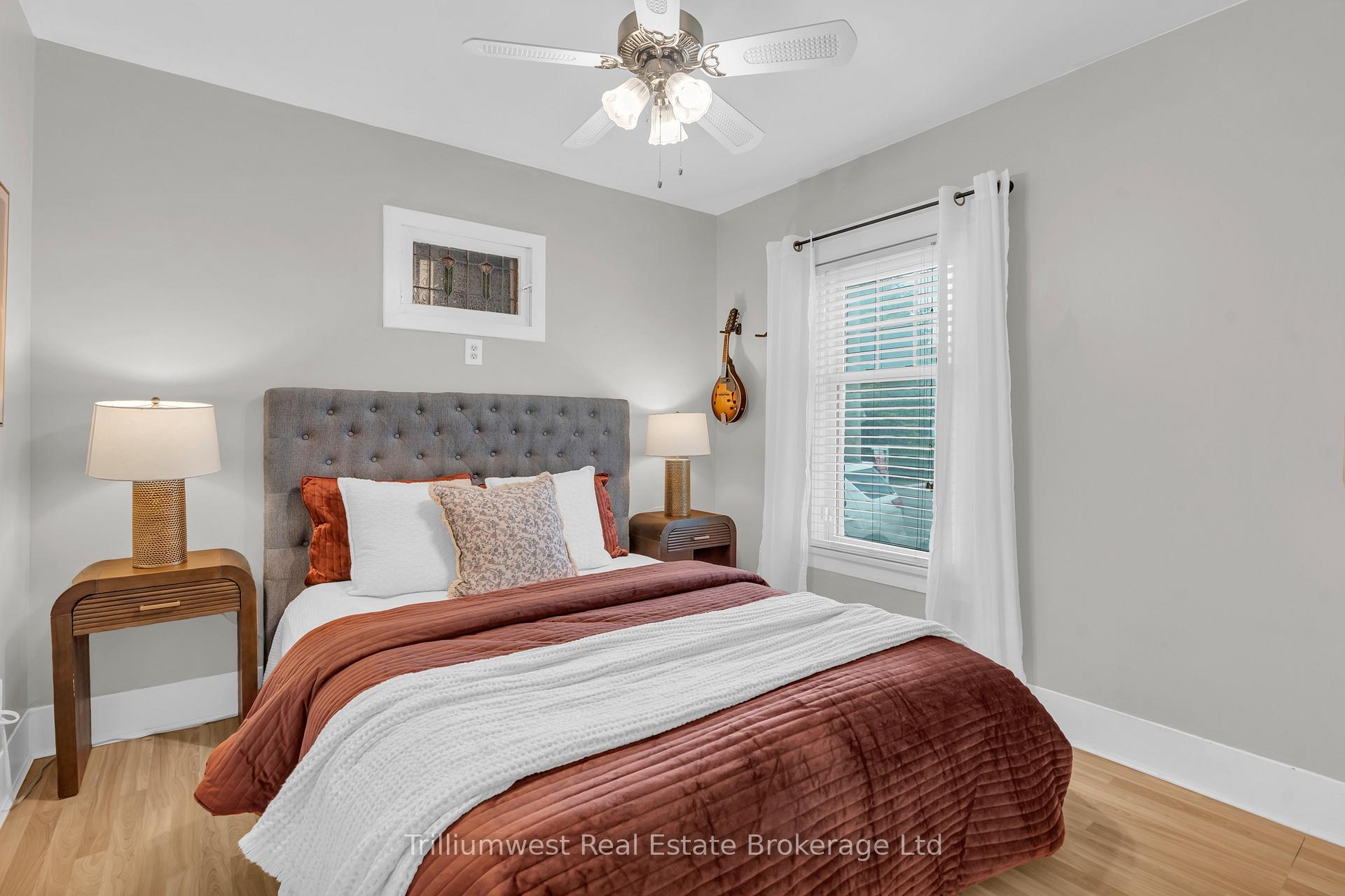 This beautifully updated cottage-style home in desirable East Galt seamlessly blends timeless character with contemporary finishes. The inviting exterior showcases modern stucco paired with expertly crafted stonework, setting the tone for what awaits inside. Step onto the spacious covered front porch and enter a home where every detail has been thoughtfully updated. The stunning fireplace in the front room echoes the homes exterior, featuring a unique stucco and stone façade with a vintage electric log insertadding both warmth and charm. This versatile space can serve as a formal dining area or a cozy sitting room. Elegant arched doorways and new laminate flooring lead to an open-concept living room and an updated kitchen complete with white cabinetry, stainless appliances, ample storage, under-cabinet lighting, a built-in fridge, beveled subway tile backsplash, and a Silgranit sink. Just off the kitchen, a new rear deck provides ideal space for outdoor dining and entertaining. The main floor also includes a spacious bedroom with a large window and a stunning modern farmhouse bathroom featuring a wood-accented ceiling, subway tile tub surround with dark grout, and a sleek vanity with an integrated sink. Upstairs, you’ll find two additional well-appointed bedrooms with stylish accent walls and ample storage. The basementwith a separate entranceoffers potential for an in-law suite, income property, or extended living space. Situated on a generous 132-foot deep lot, the property offers parking for 8+ vehicles, plus an oversized two-car garage/workshop with electricalperfect for hobbyists or trades. The new fully fenced backyard includes a custom rolling gate, a new deck with privacy screens, and plenty of room for entertaining or play. Additional upgrades include newer windows, furnace, electrical, and plumbing making this home truly move-in ready. Ideally located near parks, trails, schools, and major amenities, this is East Galt living at its finest