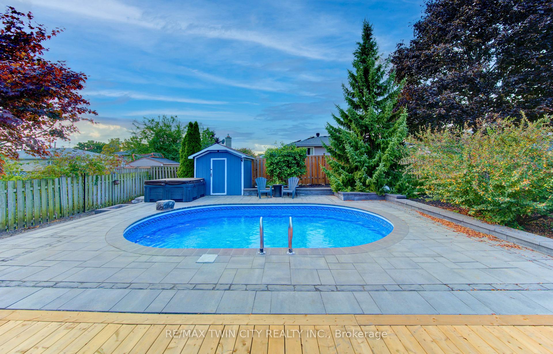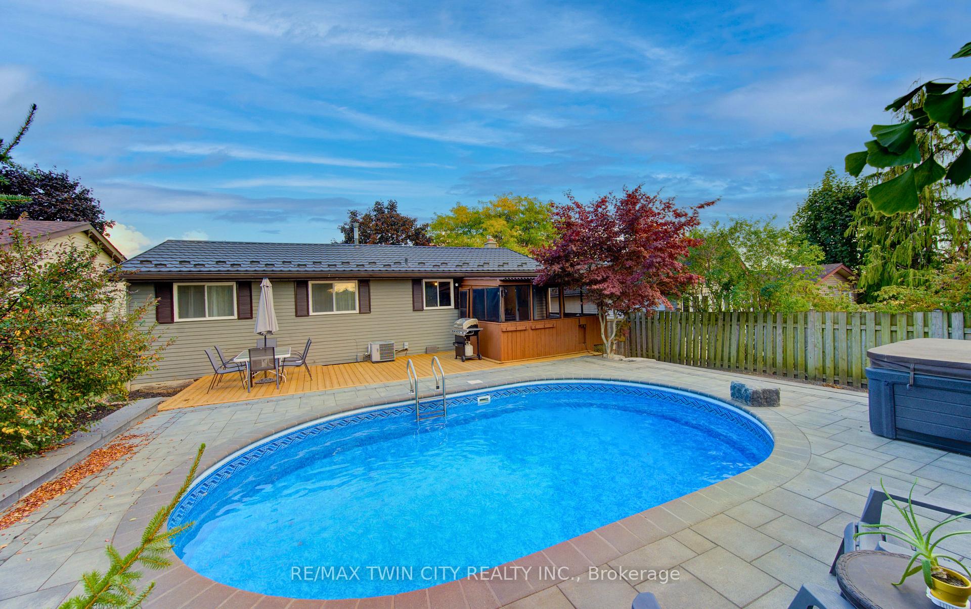 Welcome home to 194 Limpert Avenue, located in a family-friendly Hespeler neighbourhood! This nicely updated single-detached raised bungalow offers over 1700 sqft of finished living space, 3 bedrooms, 2 baths, a finished basement, single car garage with double driveway, plus an INGROUND HEATED POOL AND HOT TUB! The inviting main level features a bright living room with hardwood flooring, large windows, and a custom rustic fireplace surround; a functional kitchen with stainless steel appliances; and a dining area with patio door access to an enclosed three-season room. From here, step out to the deck and fully fenced, low-maintenance backyard complete with a pool and hot tub – perfect for relaxing or entertaining. Three bedrooms and an updated 4 piece bath complete the main level. The fully finished basement, with in-law potential and a separate entrance, includes a spacious rec room with above-grade windows and a wood stove; a versatile bonus room currently used as a 4th bedroom; another updated full bath, and laundry. Additional features include a METAL ROOF (2017), furnace (2024), AC, 125 amp panel, updated light fixtures, custom barn door, fresh, neutral paint (2025) and, NO RENTED EQUIPMENT. Located on a mature street close to schools, parks, shopping, highway access, and public transit, this home is updated and move-in ready!