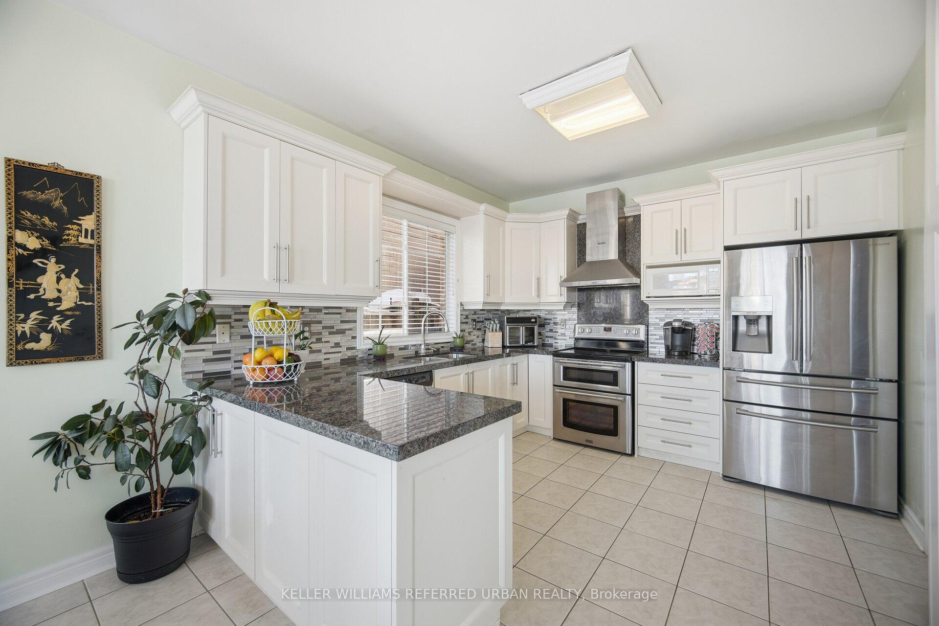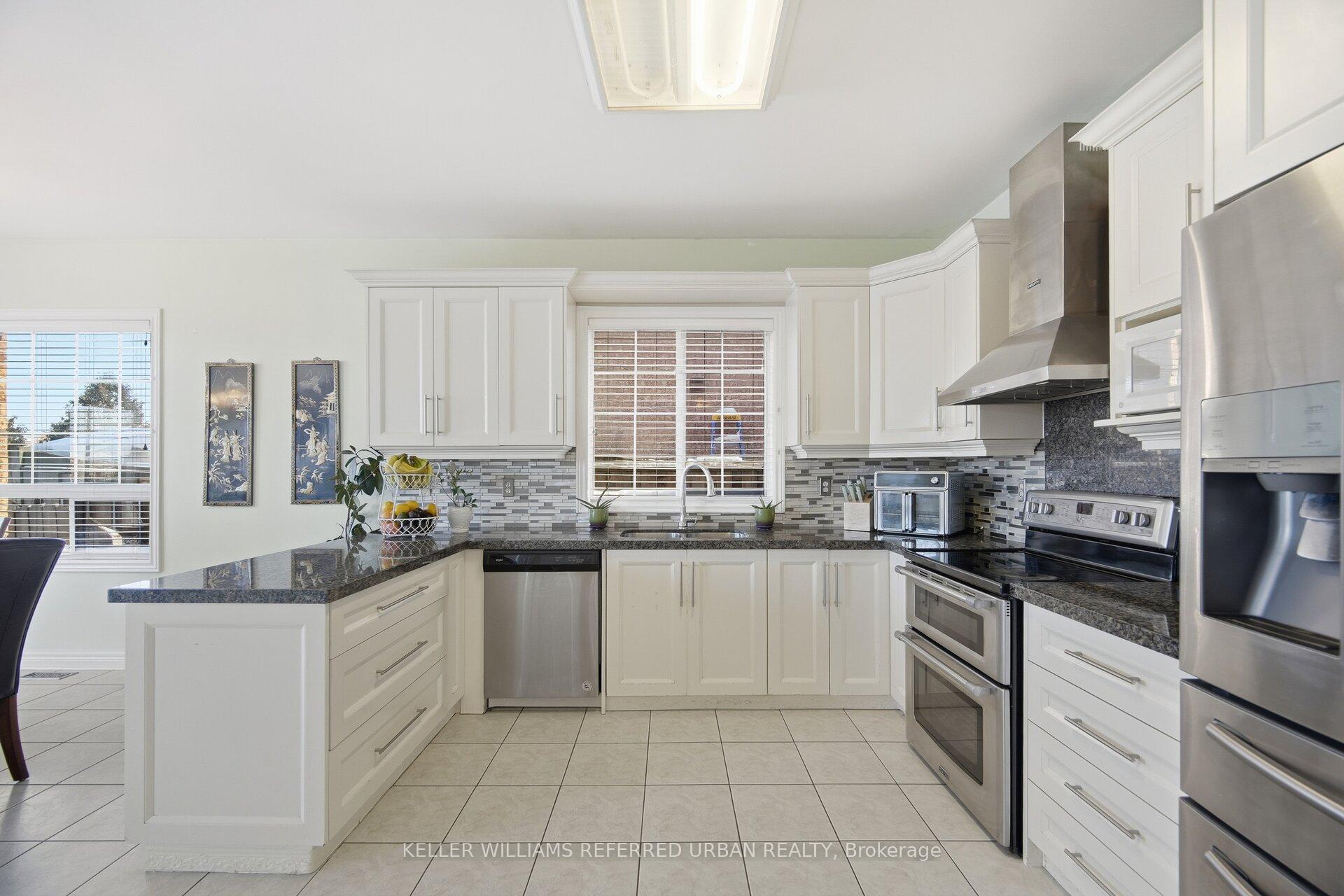 Welcome to this beautifully appointed 4-bedroom, 5-bathroom detached residence with a double-car garage, ideally located in Milton’s highly desirable Dempsey neighbourhood and backing onto full privacy in the form of a tranquil ravine. A bright, double-height foyer leads you to the main level, which features an open-concept living and dining area enhanced by elegant hardwood flooring and an abundance of natural light. At the heart of the home is the updated eat-in kitchen, showcasing crisp white cabinetry, dark granite countertops, a stylish backsplash, and quality appliances. The spacious breakfast area offers a walkout to the backyard and overlooks the inviting family room, complete with hardwood floors, a cozy fireplace, and large picture windows framing ravine views. The upper level offers four generously sized bedrooms and three full bathrooms. The private primary retreat, tucked away at the rear of the home, features a walk-in closet and 4-piece ensuite with a soaker tub, large vanity, and separate shower. Bedrooms two and three share a well-designed Jack-and-Jill bathroom, while the fourth bedroom enjoys its own private ensuite and double. The finished basement adds exceptional versatility with a large recreation area, full bath, and two bedrooms. Step outside to a private yard that’s fully fenced, thoughtfully landscaped with mature gardens, lush greenery, and multiple seating areas, including a flagstone patio. Ideally located close to grocery stores, restaurants, theatres, shopping, and public transit, and within walking distance to schools, parks, the library, and the arts centre. Easy access to Highways 401 and 407 ensures effortless commuting.