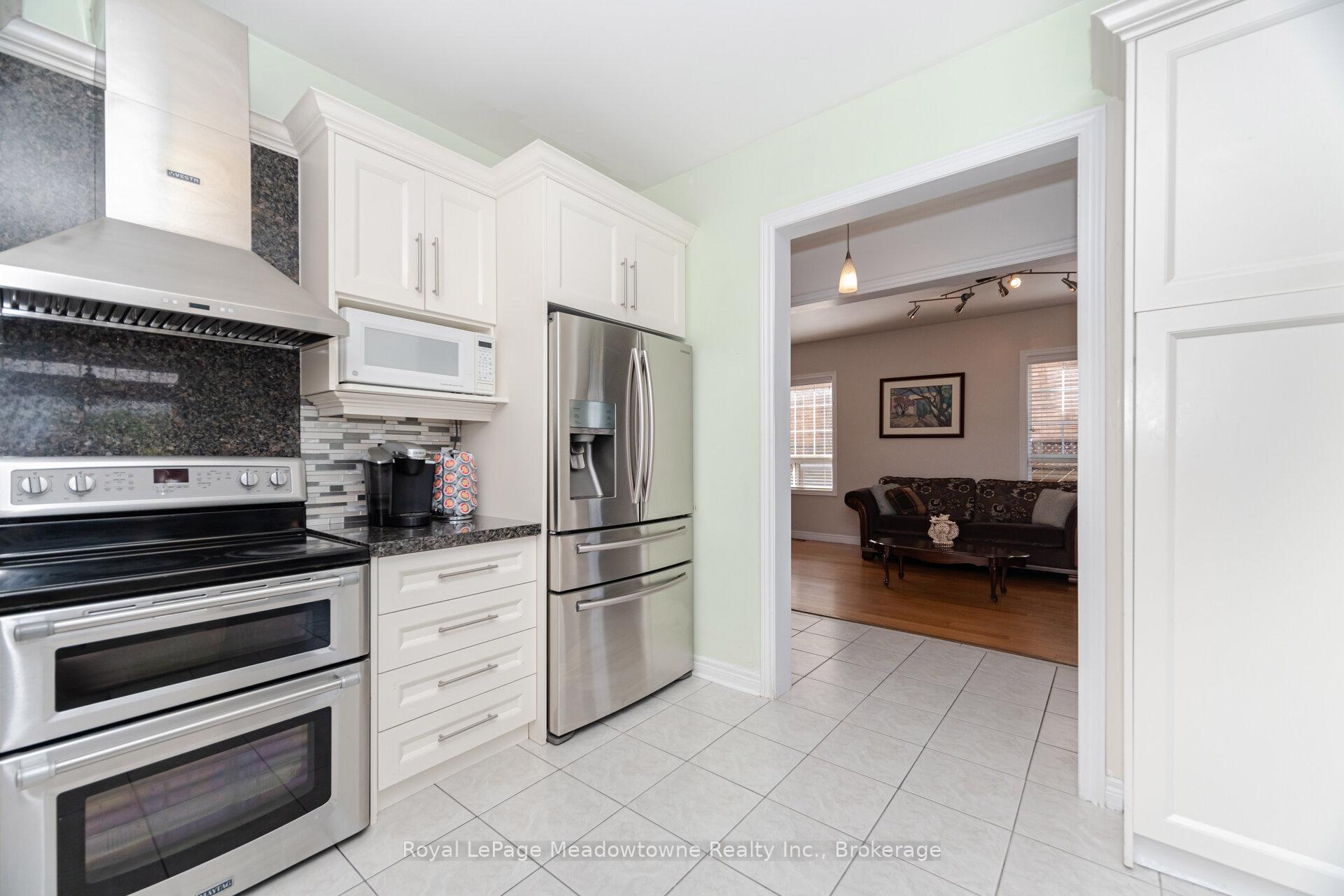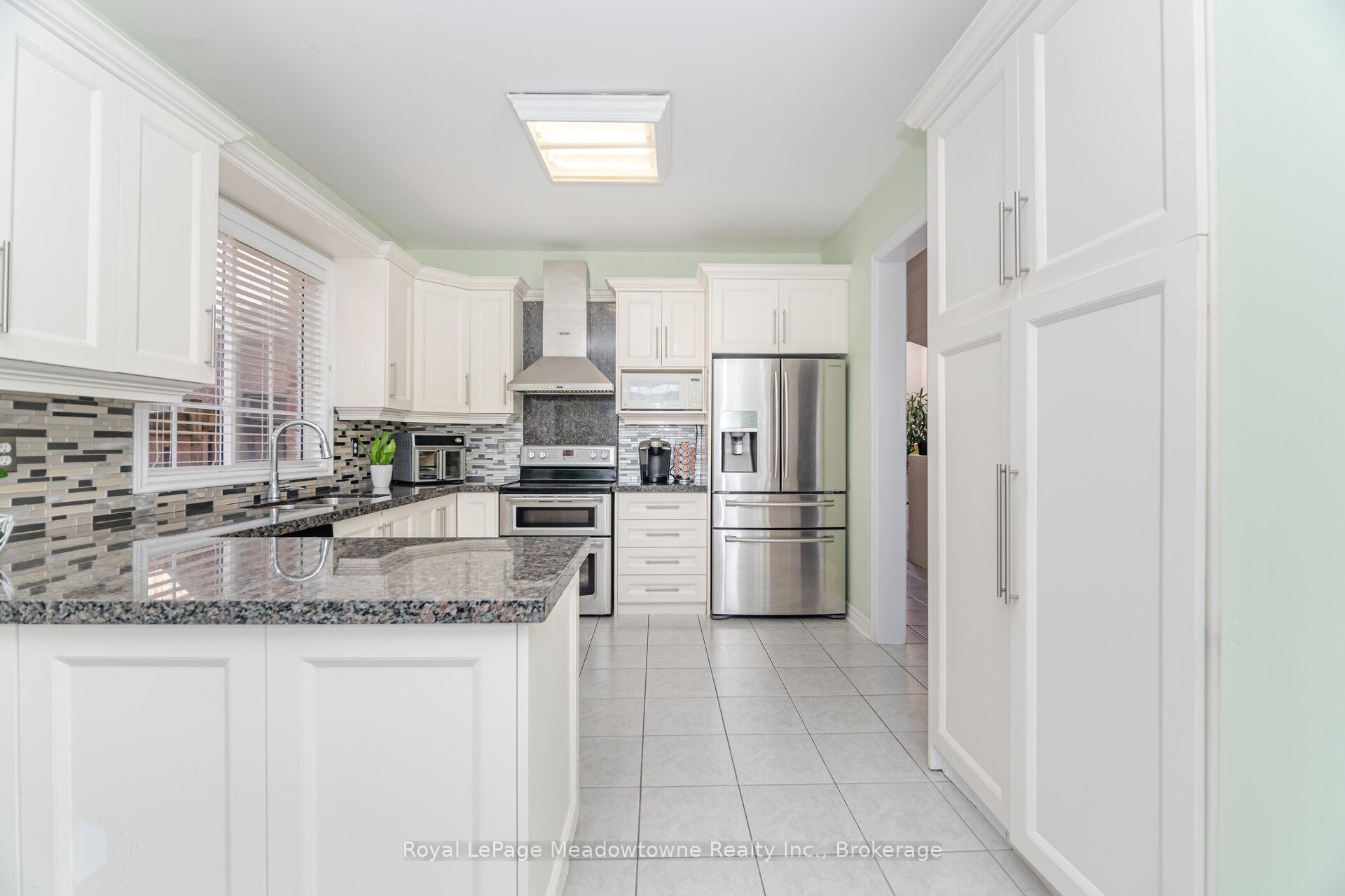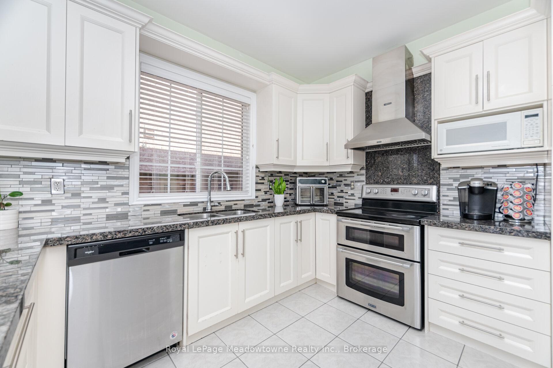 Welcome to this stunning 4+2 bed, 4+1 bath detached home with a double car garage, located in highly desirable Dempsey neighbourhood. Backing onto a peaceful ravine, this Greenpark-built Westgate 6 model offers 2,640 sq ft plus finished basement, combining space, style, and privacy. Step into a bright and welcoming foyer with tiled flooring & generous coat closet. The open-concept living & dining rooms feature elegant hardwood floors and are flooded with natural light perfect for hosting or relaxing.The updated eat-in kitchen is the heart of the home, boasting crisp white cabinetry, dark granite countertops, stylish tile backsplash, & s/s appls including a new range hood. The spacious breakfast area offers a w/o to the backyard & overlooks the cozy family room, which features a gas fireplace, hardwood flooring & large picture windows showcasing views of the ravine.Upstairs, you’ll find 4 generous bedrooms & 3 full bathrooms. The primary suite, located at the rear for maximum privacy, includes a w/I closet and 4-c ensuite with soaker tub, large vanity & separate shower. Bedrooms 2 & 3 share a convenient Jack & Jill bathroom, while bedroom 4 enjoys its own private ensuite & double closet.The finished basement offers incredible versatility use the space as additional bedrooms, a home office, gym, playroom or rec room. A 4-piece bathroom and laundry room are also located on this level.Enjoy your own private backyard oasis, fully fenced with mature gardens, greenery, & multiple seating areas, including a flagstone patio & stone patio ideal for dining or lounging. Ideally located close to all major amenities grocery stores, restaurants, theatres, shops & public transit and within walking distance to schools, parks, library, & arts centre. Easy access to Highway 401 & 407 makes commuting simple & convenient. Dont miss this rare opportunity to own a ravine-lot home in one of Miltons most sought-after communities.
