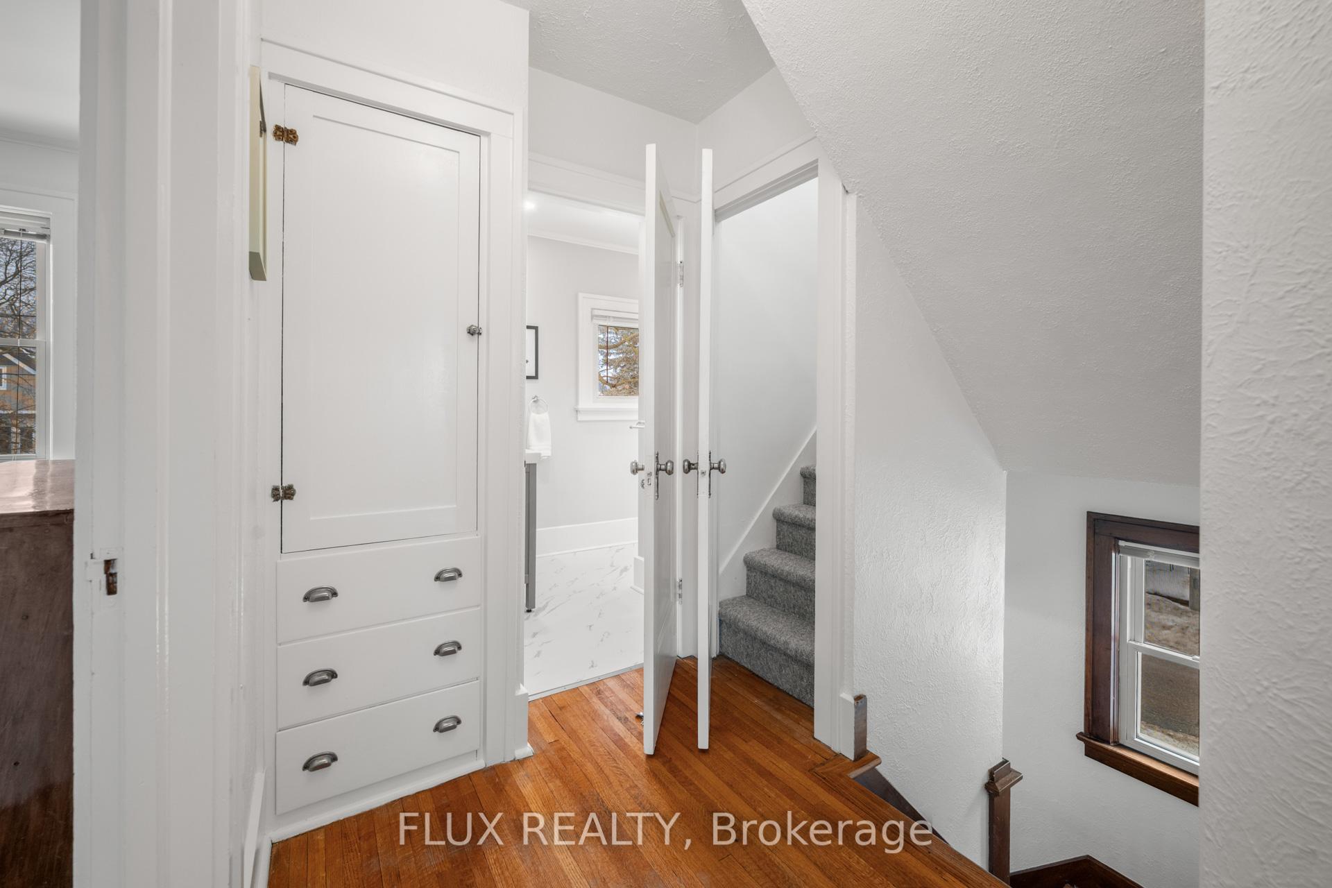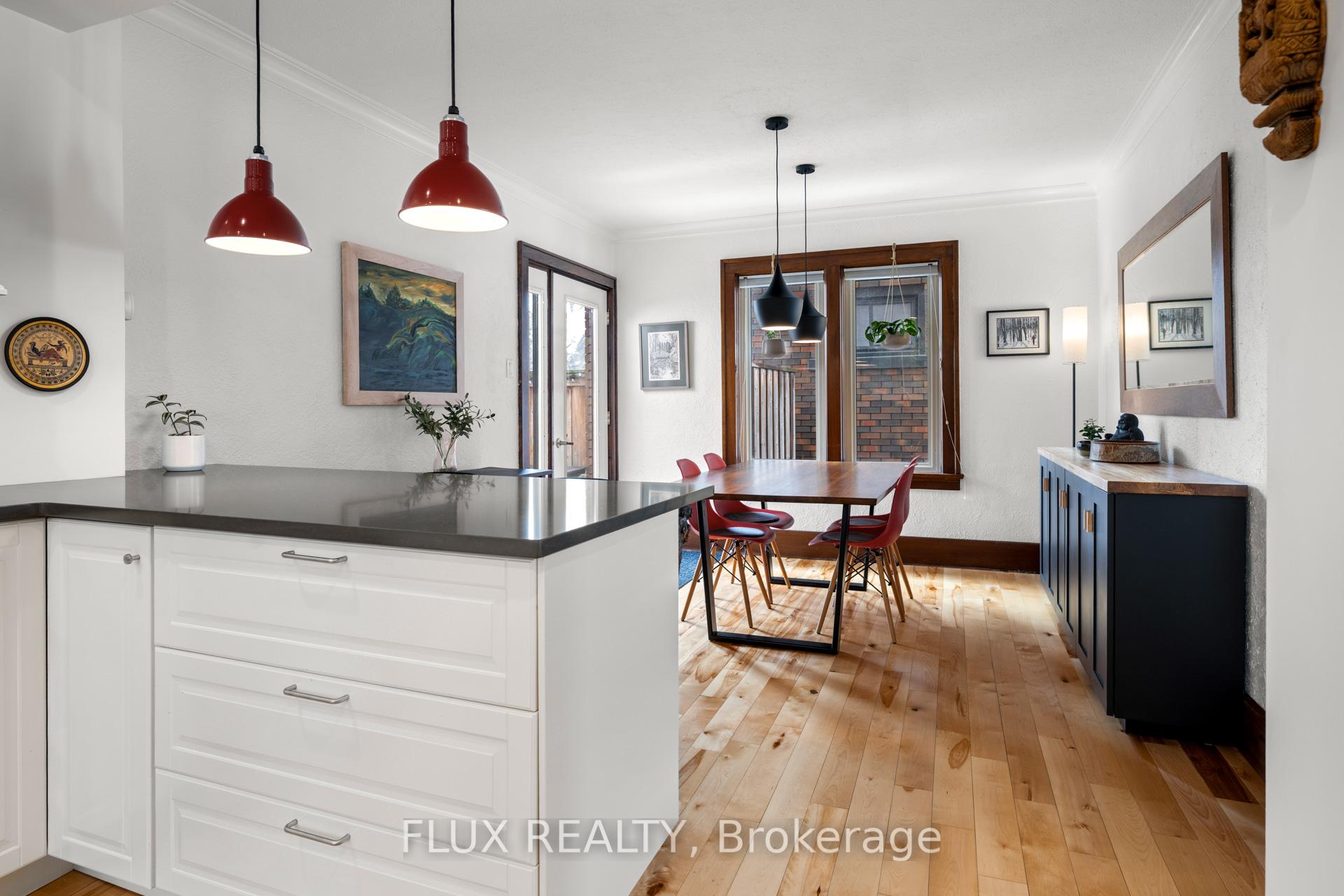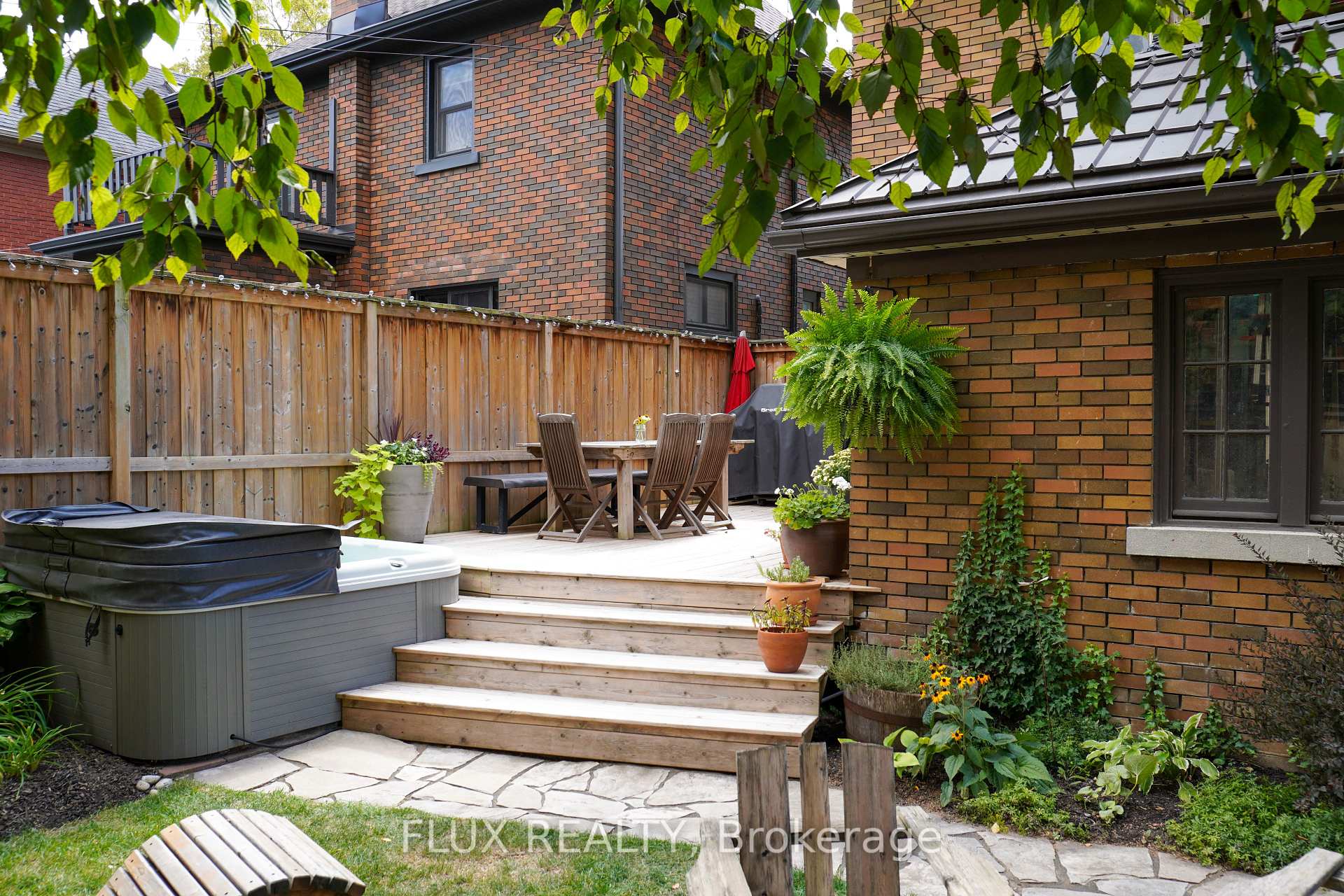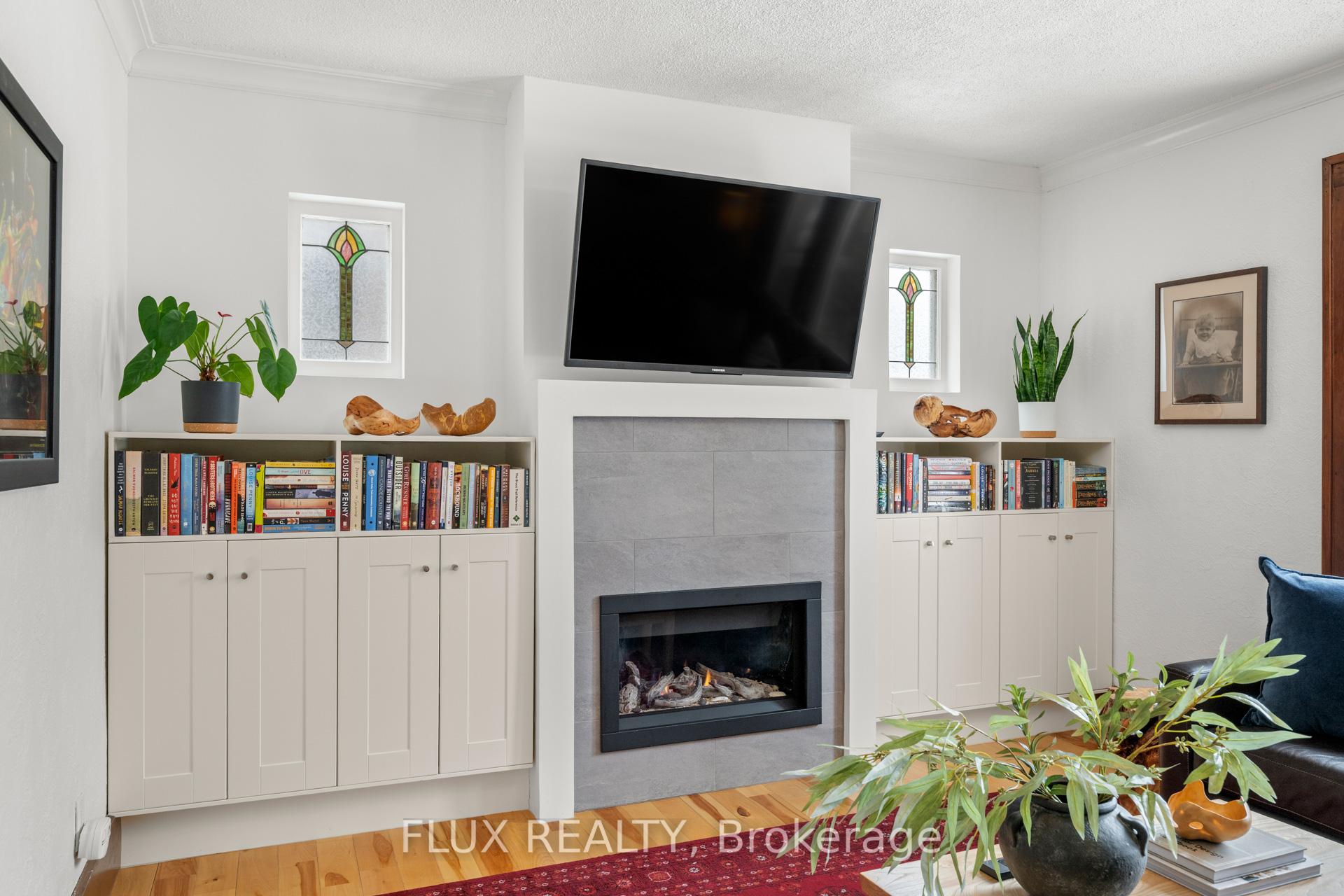 Welcome to 194 Simeon Street, a beautifully updated East Ward home just steps to the Kitchener Market, LRT, excellent schools, shopping, the Auditorium and vibrant downtown amenities. Offering 4 bedrooms and 3 bathrooms with over 1700 sq ft of finished living space, this home seamlessly blends classic charm with thoughtful modern upgrades. The main floor features a bright open-concept kitchen and dining area with a fully renovated kitchen, updated appliances, rich hardwood flooring, a cozy gas fireplace with custom built-ins, and a stylish 2-piece bath with heated floors. Upstairs you’ll find three spacious bedrooms plus a finished third-floor loft ideal as a primary suite, office or bonus living space, along with a beautifully updated main bath. The partially finished basement adds valuable flexibility with updated flooring, an insulated room perfect as a fifth bedroom or office, and updated laundry. Significant electrical upgrades have been completed throughout the home. Outside, the landscaped yard offers a cedar deck with hot tub, new fencing, a shed on a poured concrete pad, flagstone walkway, along with a double-wide driveway, rooftop deck over the garage and resurfaced garage floor. Meticulously maintained and move-in ready, this is a rare opportunity to own a truly turn-key home in one of Kitchener’s most established and desirable neighbourhoods.