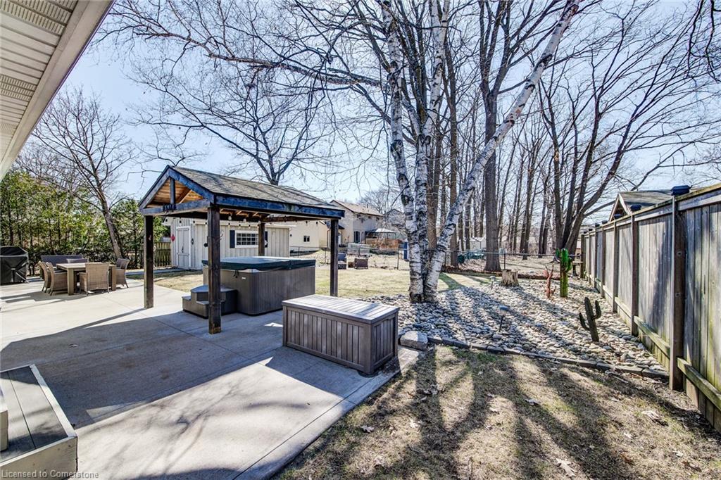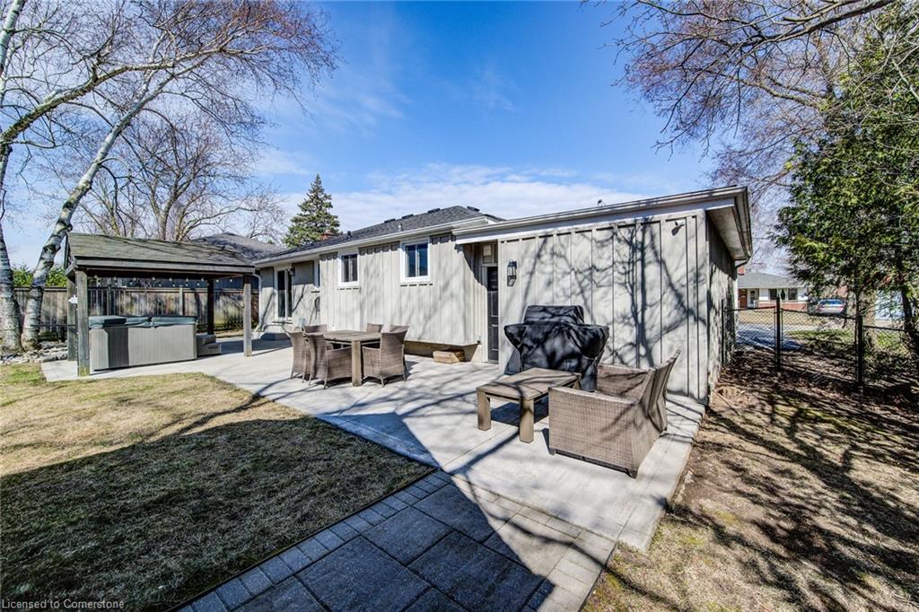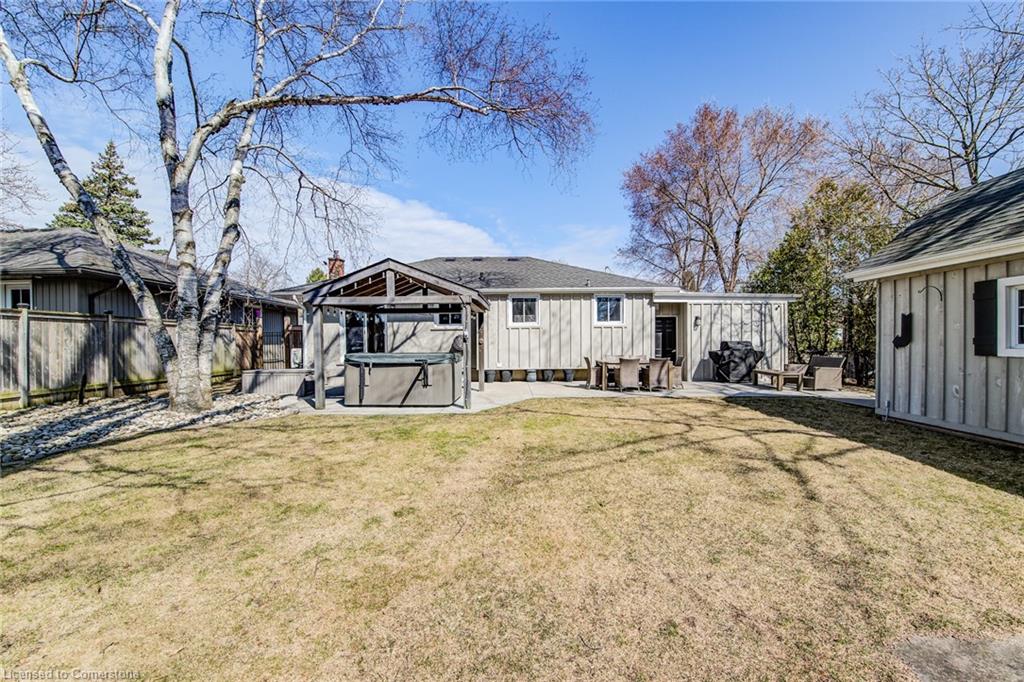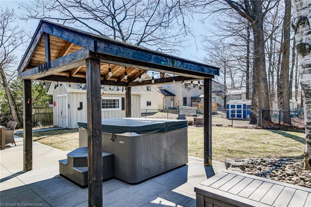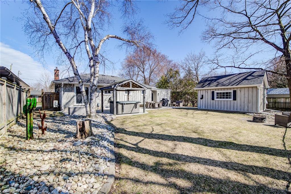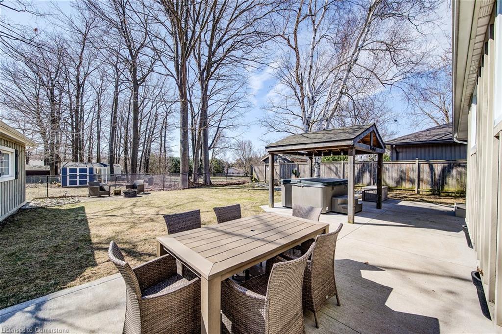 LIVE, WORK & PLAY – BACKING ONTO A GREENBELT IN HESPELER. Tucked away on a quiet, mature street in Hespeler, this charming bungalow is more than just a house – it’s a home that’s been loved, updated, and thoughtfully maintained over the years. Backing onto peaceful greenspace and a nearby park, it offers the perfect blend of privacy and nature. Inside, you’ll find an open-concept layout with over 1,670 sqft of finished living space, including 2 spacious bedrooms on the main floor (with the option to convert back to 3). The heart of the home is the beautifully updated kitchen – complete with a large island, breakfast bar, pot drawers, soft-close cabinetry, pot lights, and a handy lazy susan – perfect for morning coffees or gathering with friends. Downstairs, the fully finished basement offers a cozy rec room, a full 3pc bathroom (2015), and a versatile den currently used as a bedroom – ideal for guests, or a home office. The large utility room doubles as a workshop, complete with a workbench and laundry area. Step outside to your private backyard oasis, where entertaining and relaxing come easy. A concrete patio (2016), hot tub (negotiable), and wired gazebo set the stage for memorable summer nights. The 10×20 shed (2016), wired and prepped for a future golf simulator, adds incredible bonus space for hobbyists or sports lovers. Additional updates include: Patio sliding doors (2018), roof (2018), furnace & AC (2022), a double-wide paved driveway (2016), front yard irrigation, soffit lighting, updated kitchen and bathroom windows (2013). With excellent access to schools, amenities, and the 401 just minutes away, this home checks every box – and then some. Come imagine your next chapter here.