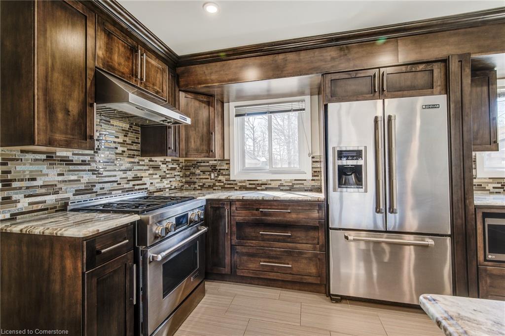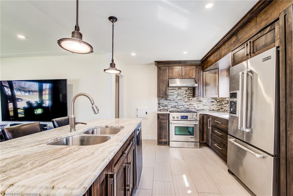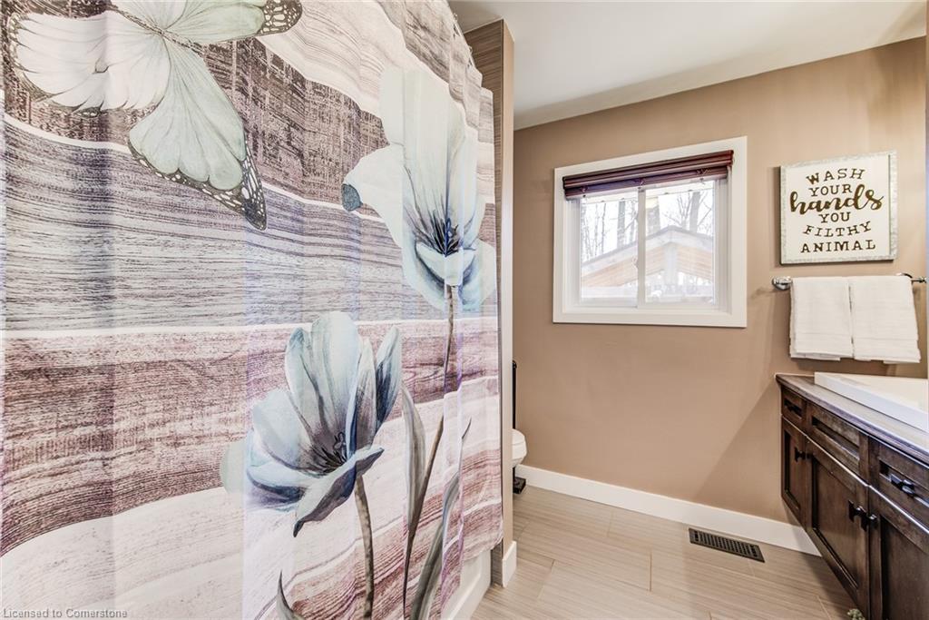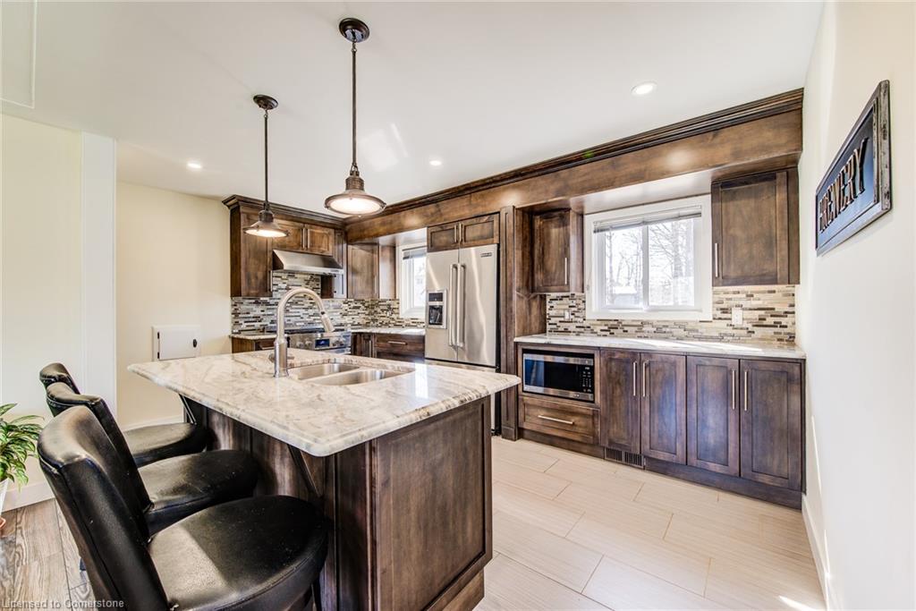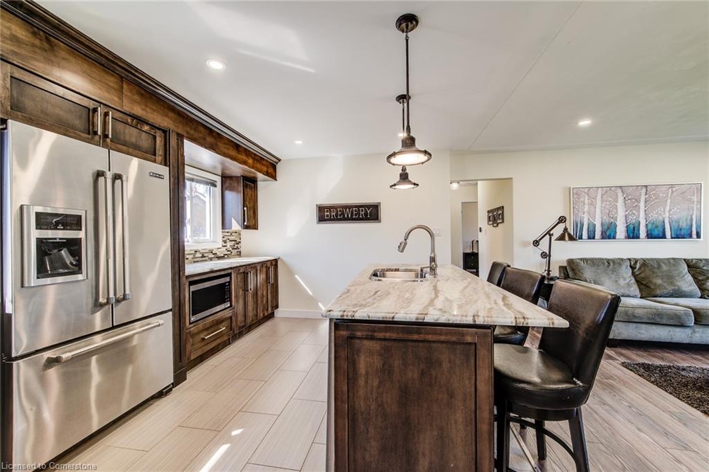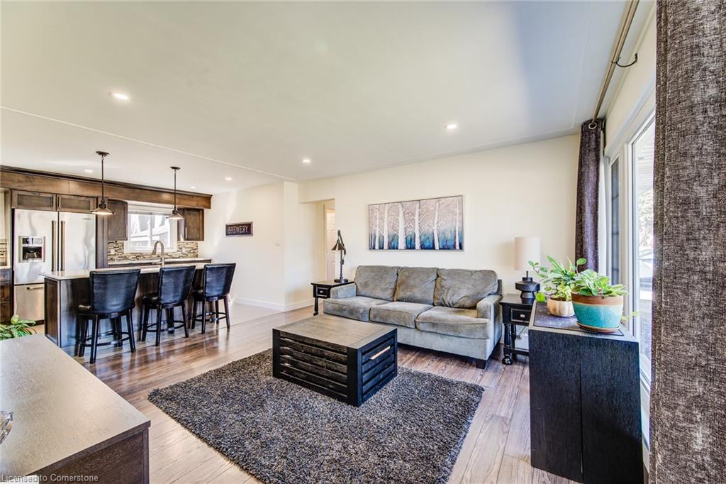 LIVE, WORK & PLAY – BACKING ONTO A GREENBELT IN HESPELER. Tucked away on a quiet, mature street in Hespeler, this charming bungalow is more than just a house – it’s a home that’s been loved, updated, and thoughtfully maintained over the years. Backing onto peaceful greenspace and a nearby park, it offers the perfect blend of privacy and nature. Inside, you’ll find an open-concept layout with over 1,670 sqft of finished living space, including 2 spacious bedrooms on the main floor (with the option to convert back to 3). The heart of the home is the beautifully updated kitchen – complete with a large island, breakfast bar, pot drawers, soft-close cabinetry, pot lights, and a handy lazy susan – perfect for morning coffees or gathering with friends. Downstairs, the fully finished basement offers a cozy rec room, a full 3pc bathroom (2015), and a versatile den currently used as a bedroom – ideal for guests, or a home office. The large utility room doubles as a workshop, complete with a workbench and laundry area. Step outside to your private backyard oasis, where entertaining and relaxing come easy. A concrete patio (2016), hot tub (negotiable), and wired gazebo set the stage for memorable summer nights. The 10×20 shed (2016), wired and prepped for a future golf simulator, adds incredible bonus space for hobbyists or sports lovers. Additional updates include: Patio sliding doors (2018), roof (2018), furnace & AC (2022), a double-wide paved driveway (2016), front yard irrigation, soffit lighting, updated kitchen and bathroom windows (2013). With excellent access to schools, amenities, and the 401 just minutes away, this home checks every box – and then some. Come imagine your next chapter here.