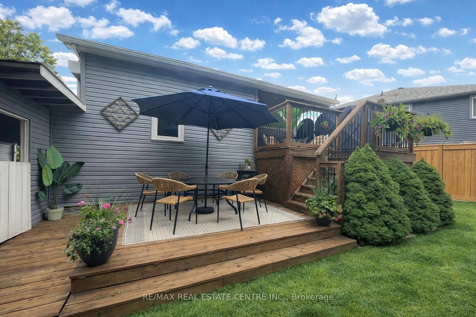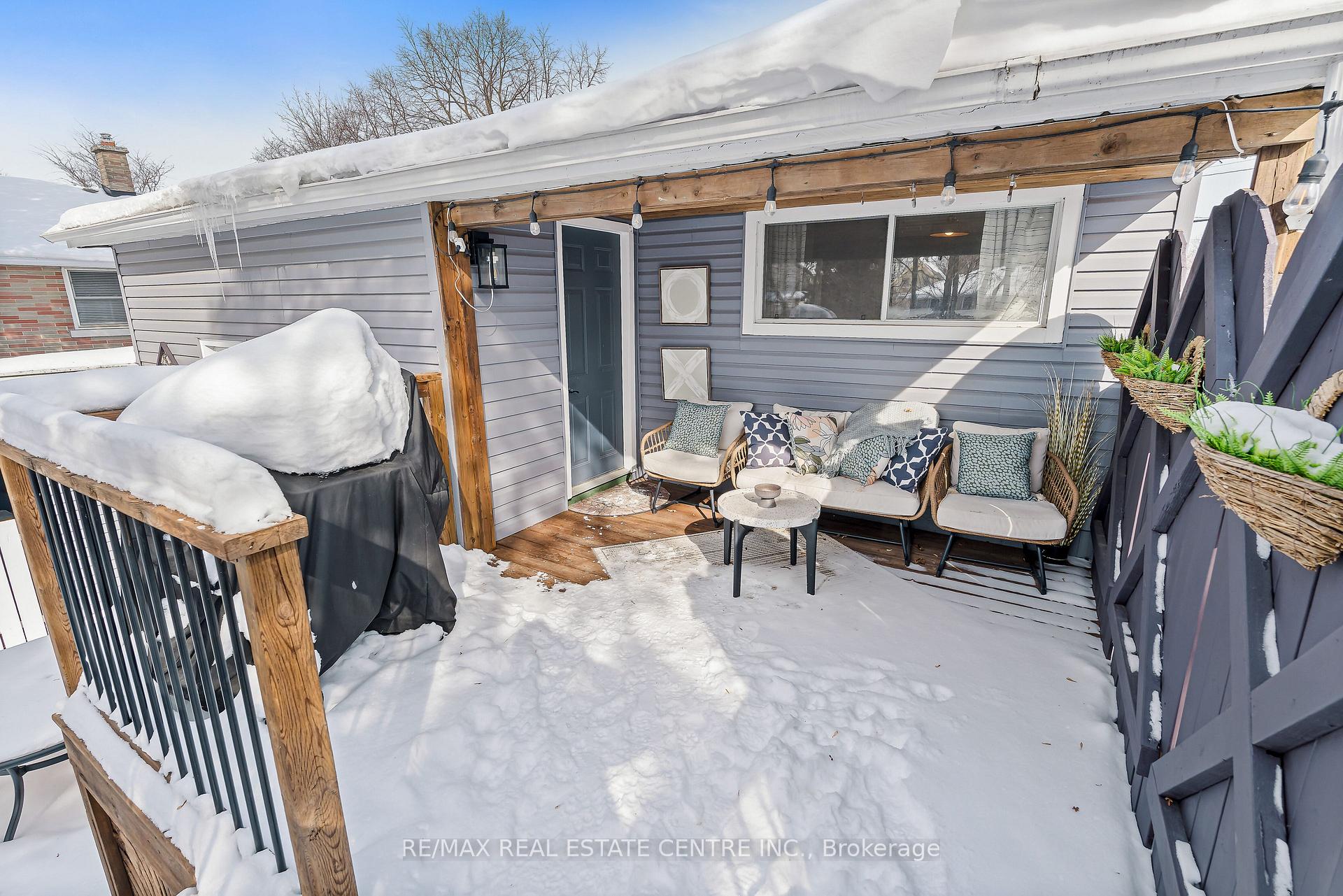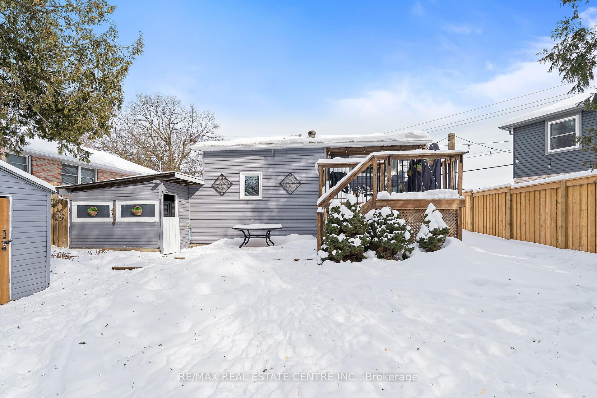 Discover refined comfort in this beautifully maintained, cute as a button, 2 + 1 bedroom, 2 bathroom residence offering over 1,500 square feet of total and thoughtfully finished living space. Set within a mature, tree-lined neighbourhood known for its welcoming community and exceptional convenience to schools, Highway 401 and premier amenities, this home is waiting to welcome a new family. A private side entrance leads to the fully finished lower level, presenting outstanding in-law or multi-generational living potential. Outdoors the deep, fully fenced backyard creates a serene retreat for elegant entertaining, complete with an expansive deck and two storage buildings – one powered and perfectly suited for a workshop or creative studio. Inside, natural light fills the inviting main living area, complemented by two well-appointed bedrooms and a stylishly updated bathroom. The eat-in kitchen blends function and charm with generous storage and seamless access to the rear entry and lower level. The finished basement features a sophisticated third bedroom, a second full bathroom, an upgraded laundry space with folding counter and extensive shelving and a spacious recreation room. A substantial utility and cold room further enhance the home’s impressive storage capacity. Don’t miss this exceptional opportunity to enjoy comfort, privacy and versatility in a sought-after setting!