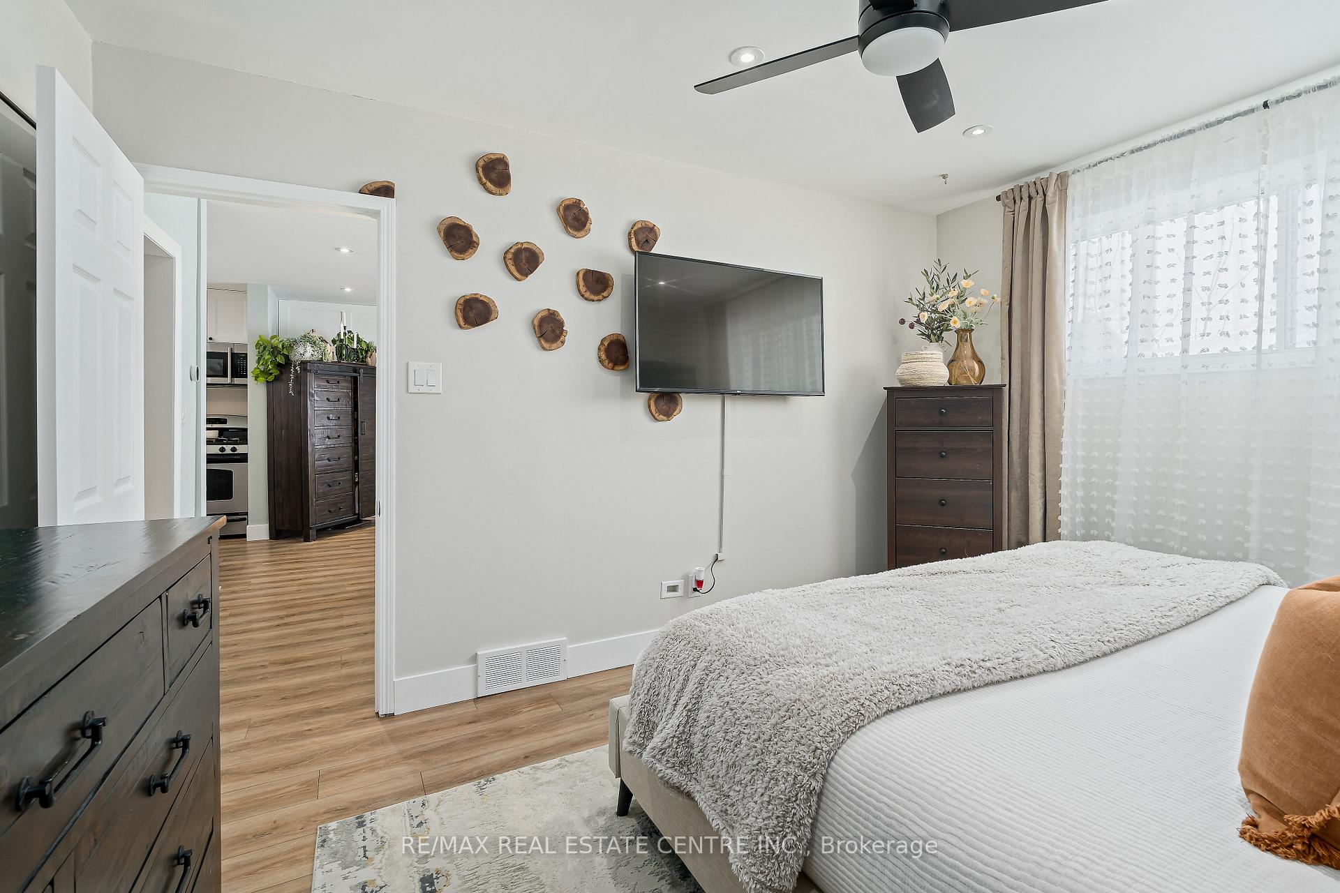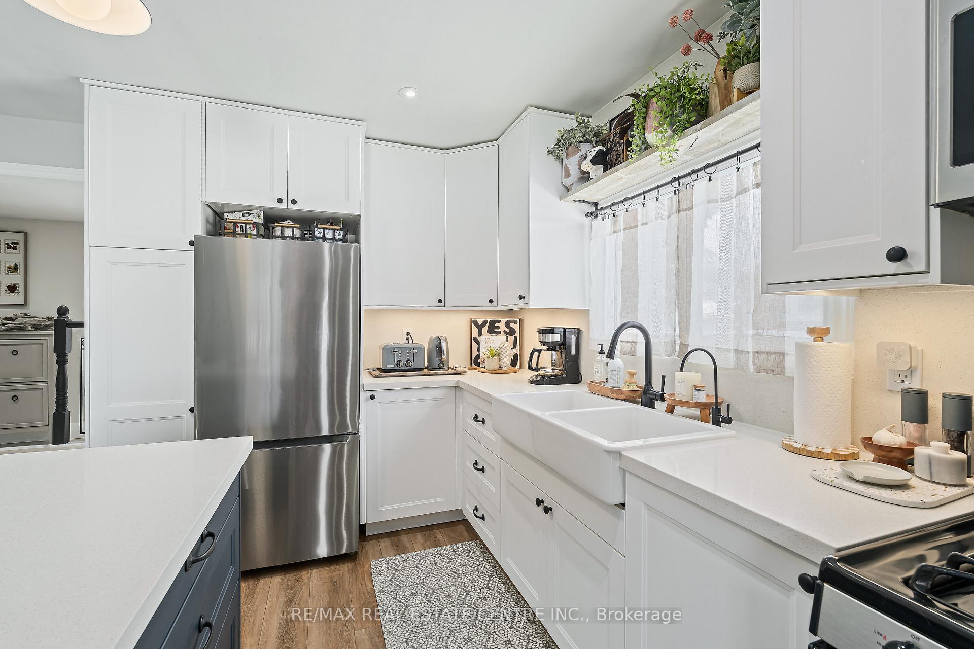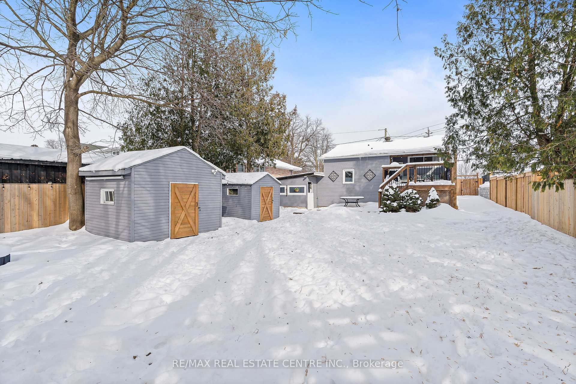 Discover refined comfort in this beautifully maintained, cute as a button, 2 + 1 bedroom, 2 bathroom residence offering over 1,500 square feet of total and thoughtfully finished living space. Set within a mature, tree-lined neighbourhood known for its welcoming community and exceptional convenience to schools, Highway 401 and premier amenities, this home is waiting to welcome a new family. A private side entrance leads to the fully finished lower level, presenting outstanding in-law or multi-generational living potential. Outdoors the deep, fully fenced backyard creates a serene retreat for elegant entertaining, complete with an expansive deck and two storage buildings – one powered and perfectly suited for a workshop or creative studio. Inside, natural light fills the inviting main living area, complemented by two well-appointed bedrooms and a stylishly updated bathroom. The eat-in kitchen blends function and charm with generous storage and seamless access to the rear entry and lower level. The finished basement features a sophisticated third bedroom, a second full bathroom, an upgraded laundry space with folding counter and extensive shelving and a spacious recreation room. A substantial utility and cold room further enhance the home’s impressive storage capacity. Don’t miss this exceptional opportunity to enjoy comfort, privacy and versatility in a sought-after setting!