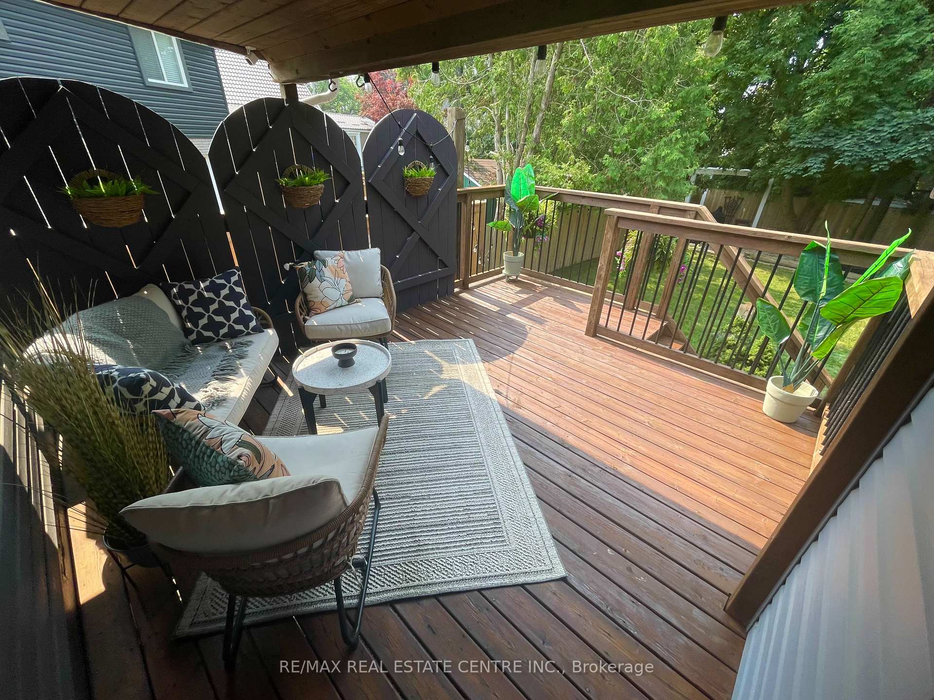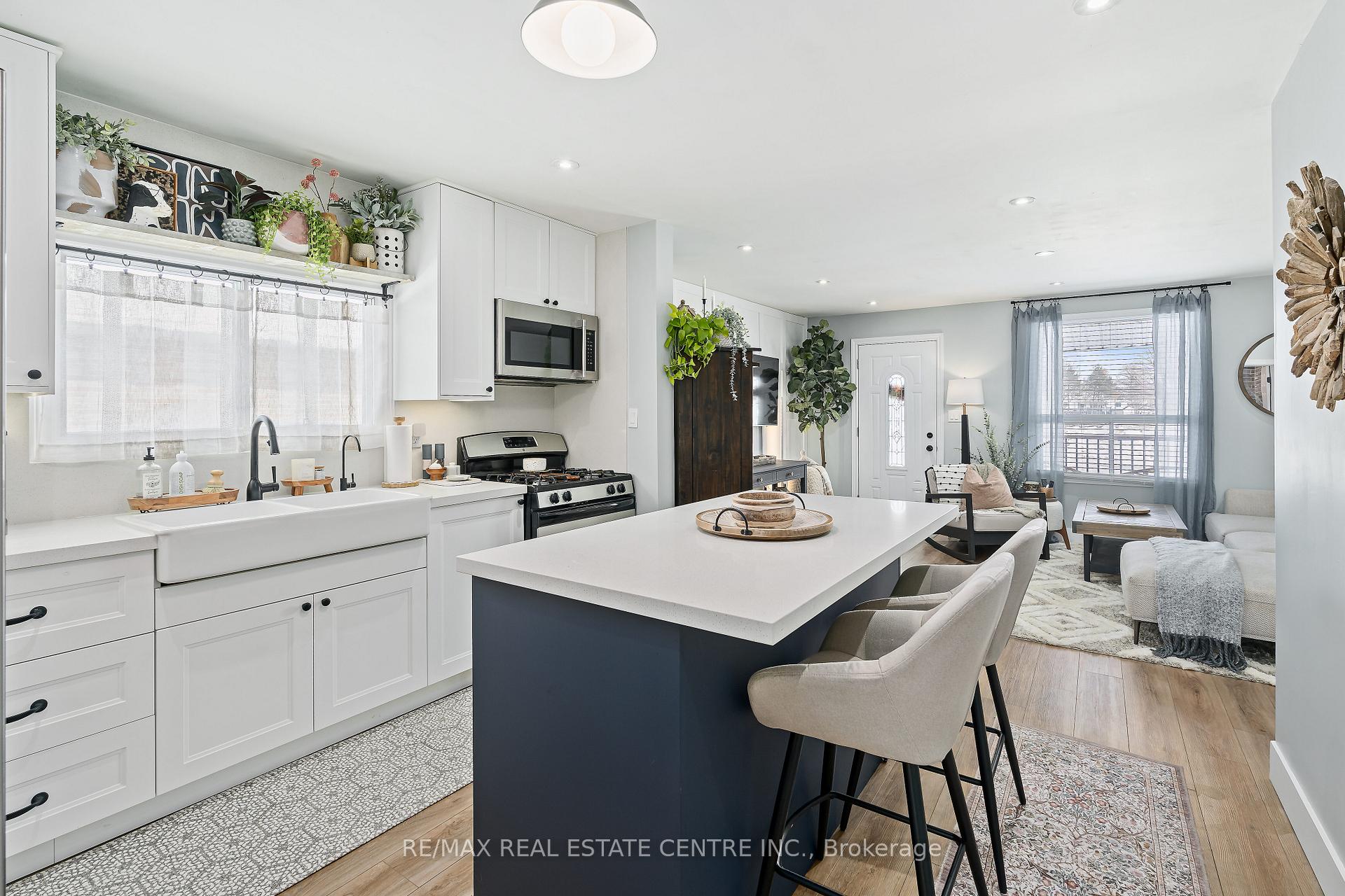 Discover refined comfort in this beautifully maintained, cute as a button, 2 + 1 bedroom, 2 bathroom residence offering over 1,500 square feet of total and thoughtfully finished living space. Set within a mature, tree-lined neighbourhood known for its welcoming community and exceptional convenience to schools, Highway 401 and premier amenities, this home is waiting to welcome a new family. A private side entrance leads to the fully finished lower level, presenting outstanding in-law or multi-generational living potential. Outdoors the deep, fully fenced backyard creates a serene retreat for elegant entertaining, complete with an expansive deck and two storage buildings – one powered and perfectly suited for a workshop or creative studio. Inside, natural light fills the inviting main living area, complemented by two well-appointed bedrooms and a stylishly updated bathroom. The eat-in kitchen blends function and charm with generous storage and seamless access to the rear entry and lower level. The finished basement features a sophisticated third bedroom, a second full bathroom, an upgraded laundry space with folding counter and extensive shelving and a spacious recreation room. A substantial utility and cold room further enhance the home’s impressive storage capacity. Don’t miss this exceptional opportunity to enjoy comfort, privacy and versatility in a sought-after setting!
