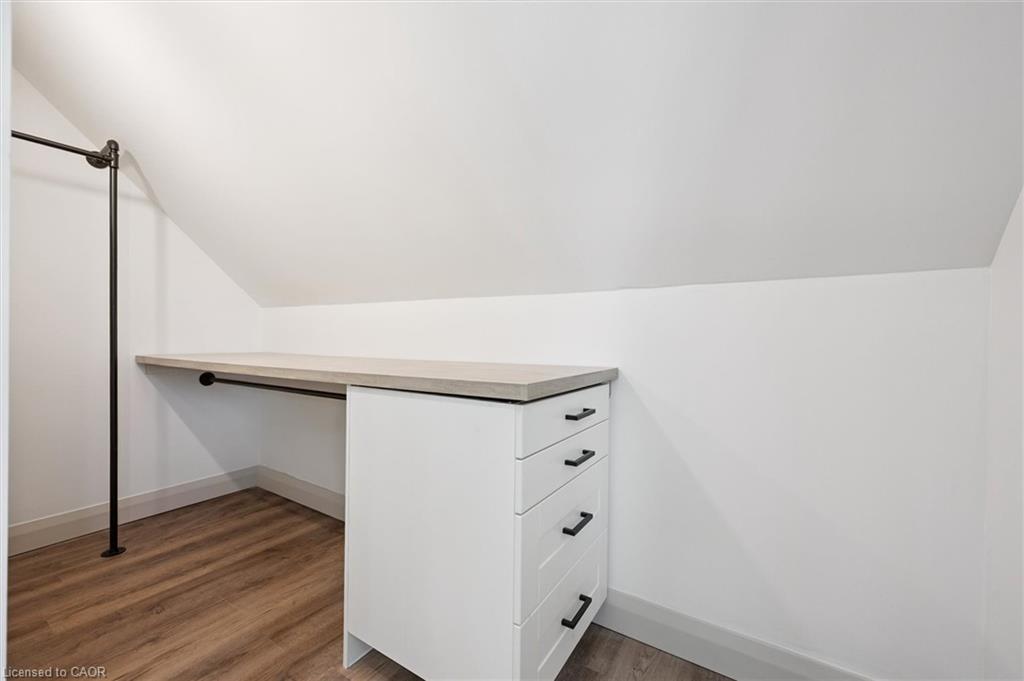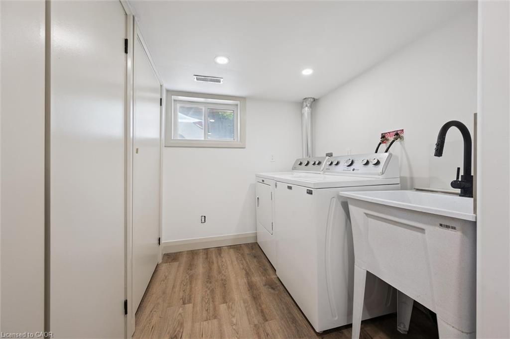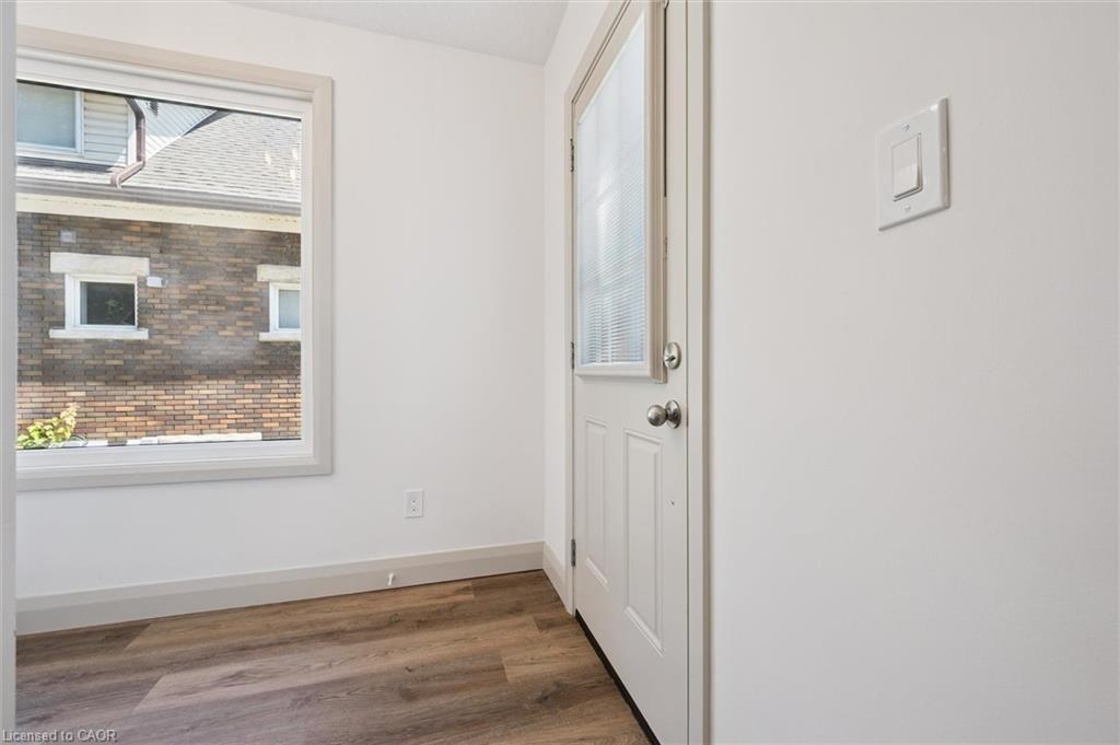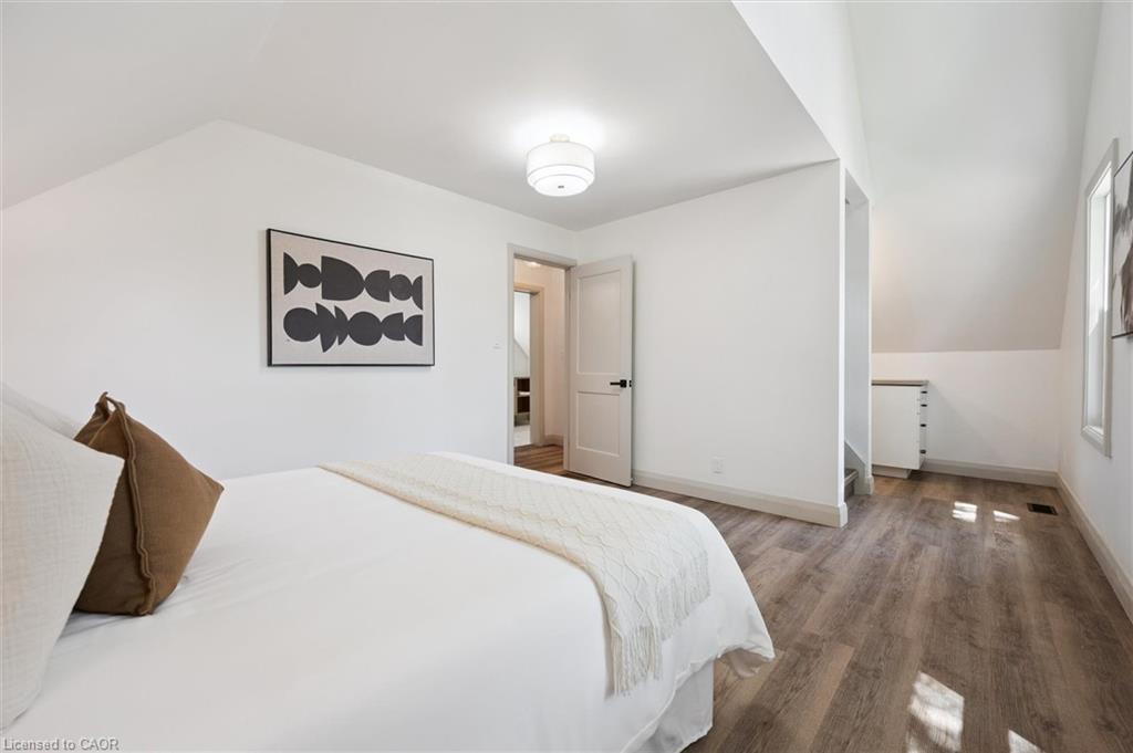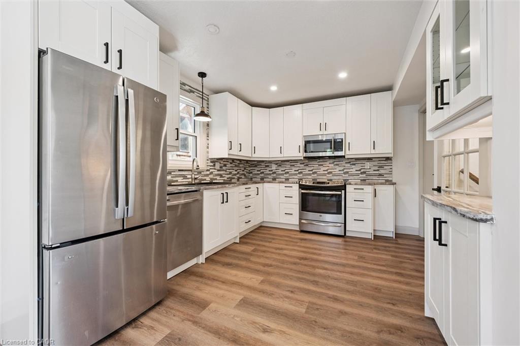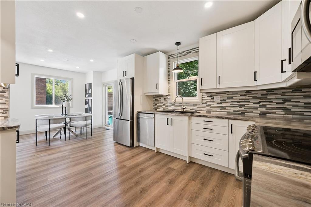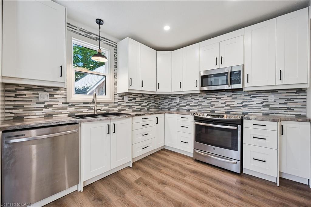 Attention First Time Homebuyers! This fully renovated Detached home blends modern upgrades with classic charm in a sought-after Kitchener location. Built in 1920 and extensively updated in 2025, it sits within the SGA1 zoning area, offering excellent long-term value and future potential. Steps from the Iron Horse Trail, ION LRT, and minutes to downtown, it also offers quick access to Rockway Golf Course, Hwy 7/8, and Hwy 401—ideal for commuters and recreation alike. Nearly every surface has been refreshed, including new electrical, plumbing, insulation, drywall, & professional painting. All flooring has been replaced, with refinished walls, ceilings, trim, and doors creating a cohesive designer look. Mechanical upgrades include all-new ductwork, a high-efficiency furnace, central air, and a new owned hot water heater. The modern kitchen features soft-close cabinetry, stainless steel appliances, a pantry, and under-cabinet lighting, seamlessly connecting to bright dining and living areas. New Windows 2025 (Basement Windows Replaced 2022), along with a new front door and rear slider leading to a massive two-level deck overlooking a private backyard with mature trees, new sod, and fresh landscaping. A large detached garage, currently used as a workshop, adds storage and functionality. Upstairs, the primary bedroom spans the full width of the home with a semi-vaulted ceiling, walk-in closet, and access to a versatile loft. The remodeled upper bath showcases porcelain tile, floating cabinetry, and modern fixtures, while the second bedroom offers a large closet and backyard views. The newly finished basement includes raised flooring for warmth, ample lighting, and a stylish three-piece bath. Its open layout is ideal for a family room, home office, or private suite. A bright laundry area with Maytag appliances adds everyday convenience. Move-in ready with extensive updates and valuable SGA1 zoning, 196 Kent Avenue combines comfort, style, and future potential.