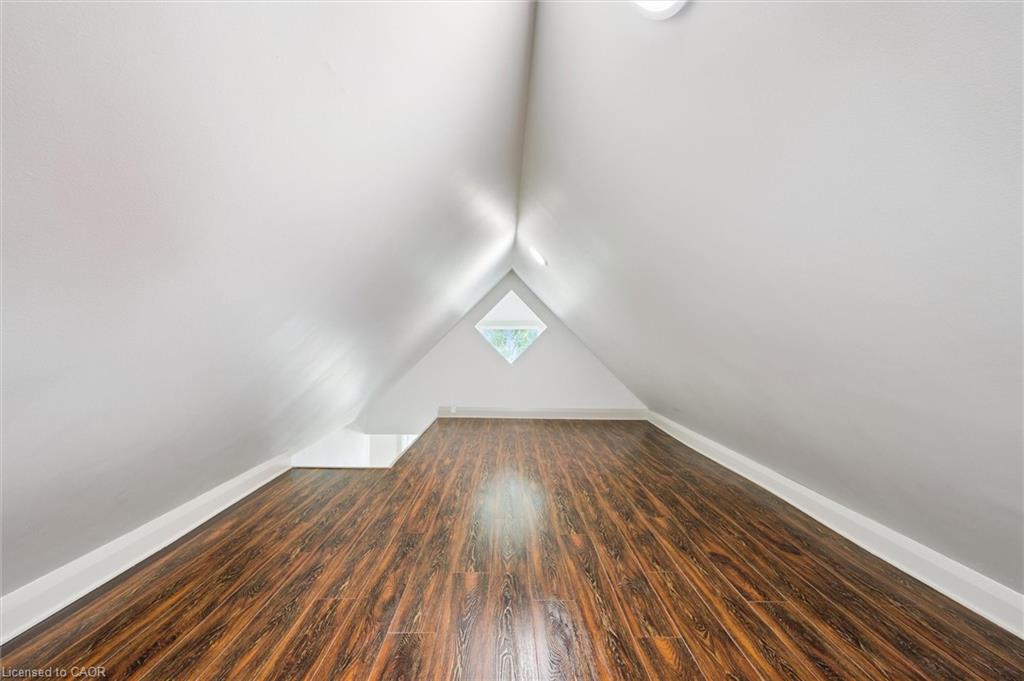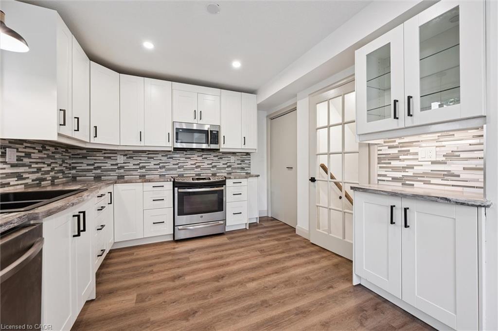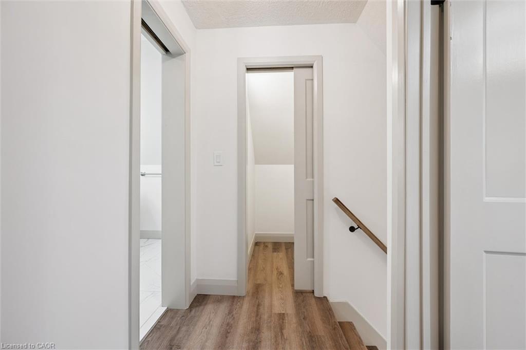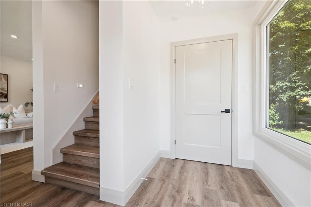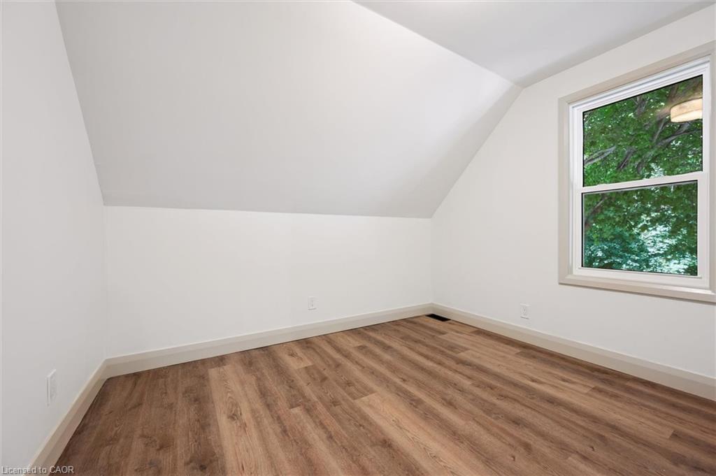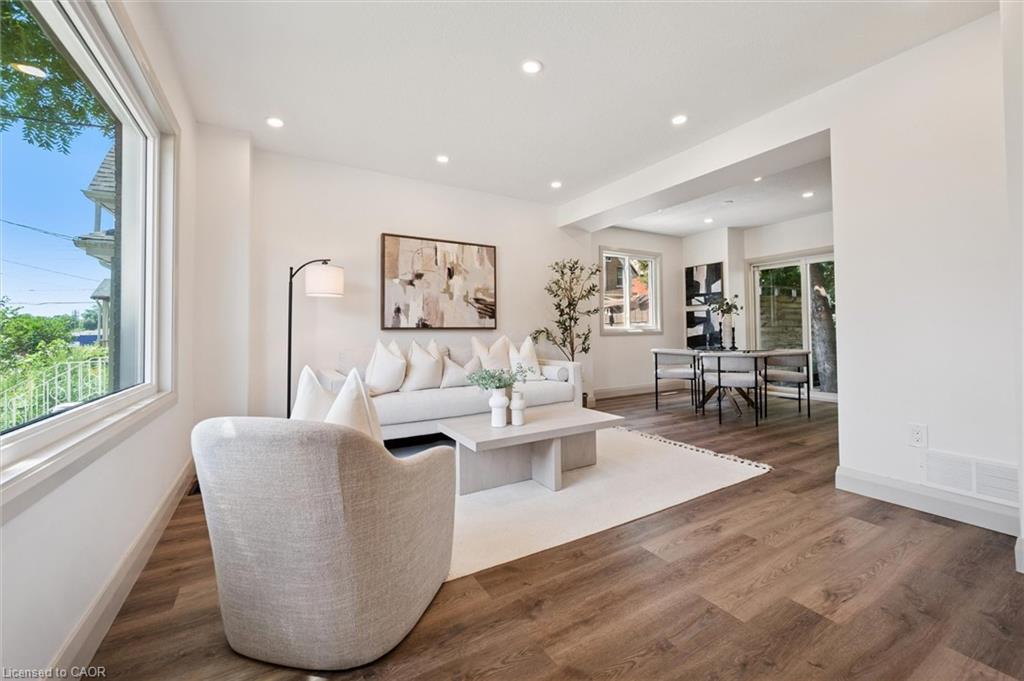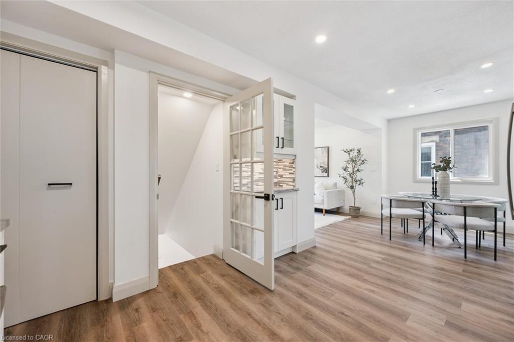 Attention First Time Homebuyers! This fully renovated Detached home blends modern upgrades with classic charm in a sought-after Kitchener location. Built in 1920 and extensively updated in 2025, it sits within the SGA1 zoning area, offering excellent long-term value and future potential. Steps from the Iron Horse Trail, ION LRT, and minutes to downtown, it also offers quick access to Rockway Golf Course, Hwy 7/8, and Hwy 401—ideal for commuters and recreation alike. Nearly every surface has been refreshed, including new electrical, plumbing, insulation, drywall, & professional painting. All flooring has been replaced, with refinished walls, ceilings, trim, and doors creating a cohesive designer look. Mechanical upgrades include all-new ductwork, a high-efficiency furnace, central air, and a new owned hot water heater. The modern kitchen features soft-close cabinetry, stainless steel appliances, a pantry, and under-cabinet lighting, seamlessly connecting to bright dining and living areas. New Windows 2025 (Basement Windows Replaced 2022), along with a new front door and rear slider leading to a massive two-level deck overlooking a private backyard with mature trees, new sod, and fresh landscaping. A large detached garage, currently used as a workshop, adds storage and functionality. Upstairs, the primary bedroom spans the full width of the home with a semi-vaulted ceiling, walk-in closet, and access to a versatile loft. The remodeled upper bath showcases porcelain tile, floating cabinetry, and modern fixtures, while the second bedroom offers a large closet and backyard views. The newly finished basement includes raised flooring for warmth, ample lighting, and a stylish three-piece bath. Its open layout is ideal for a family room, home office, or private suite. A bright laundry area with Maytag appliances adds everyday convenience. Move-in ready with extensive updates and valuable SGA1 zoning, 196 Kent Avenue combines comfort, style, and future potential.