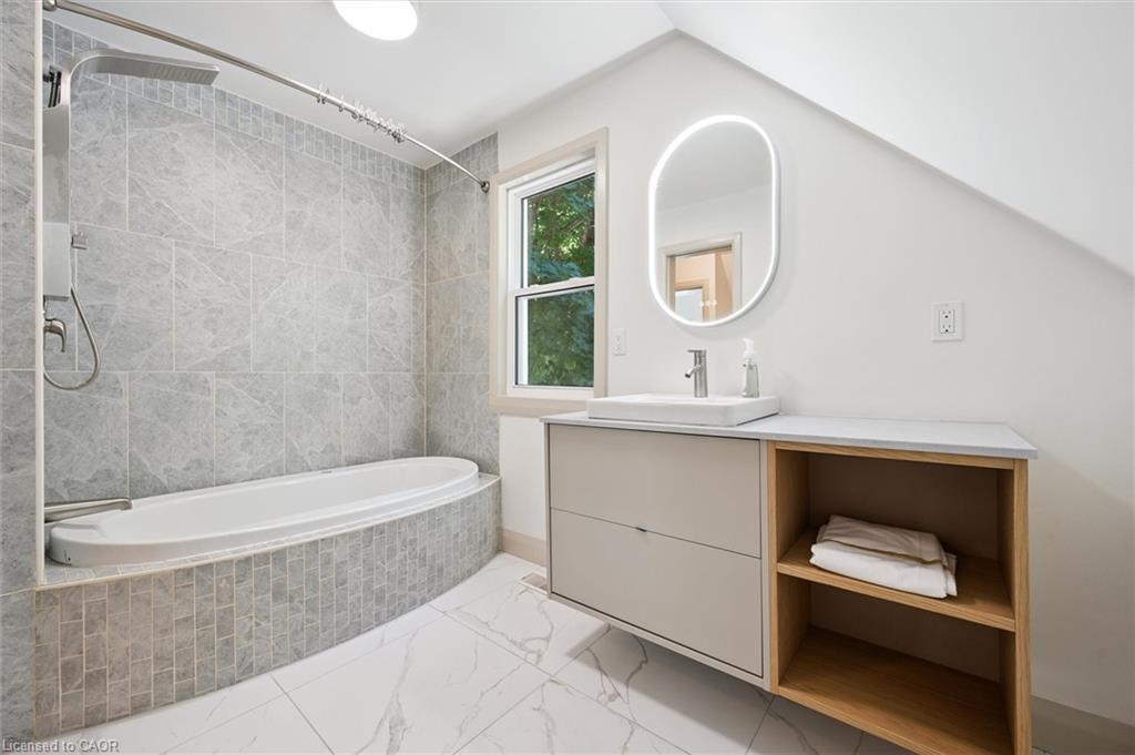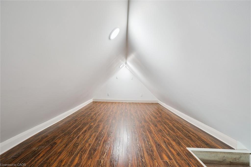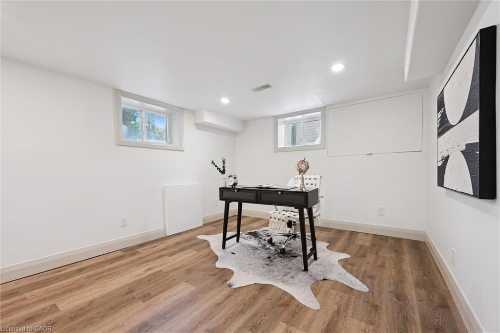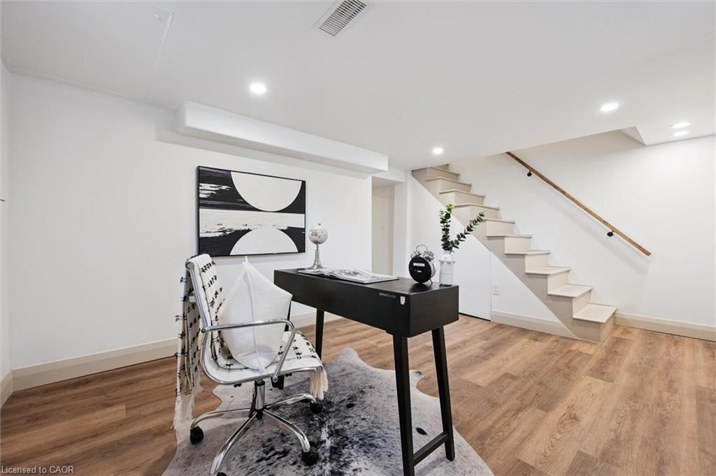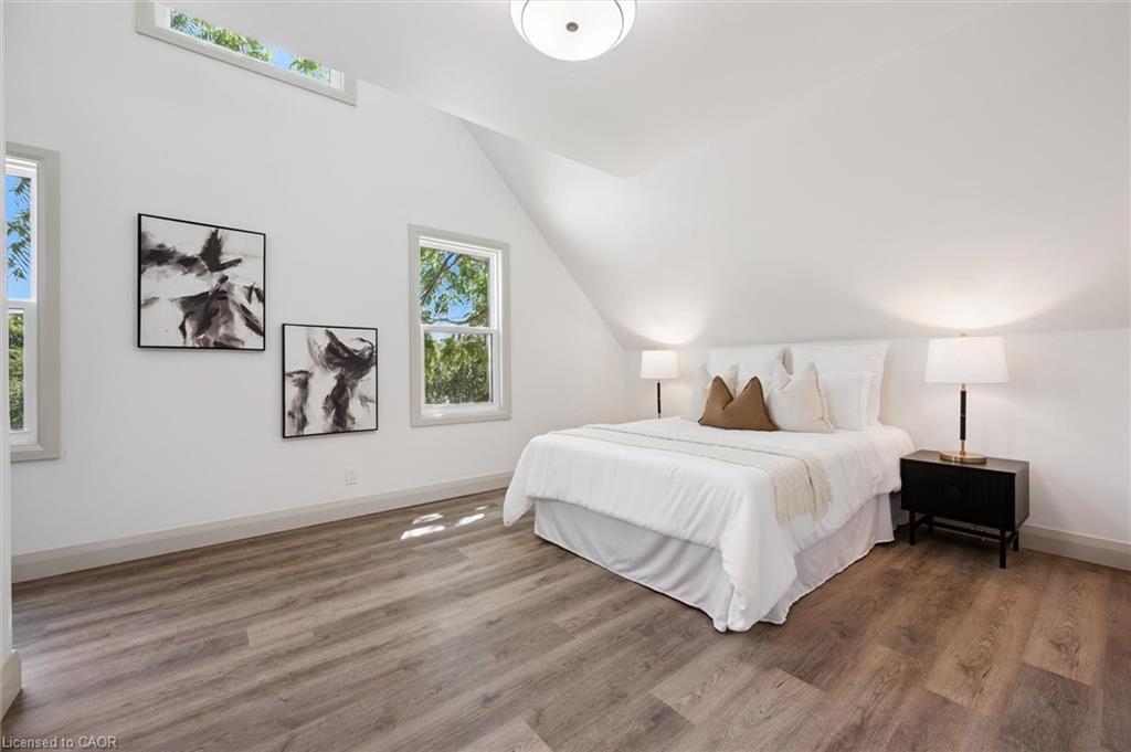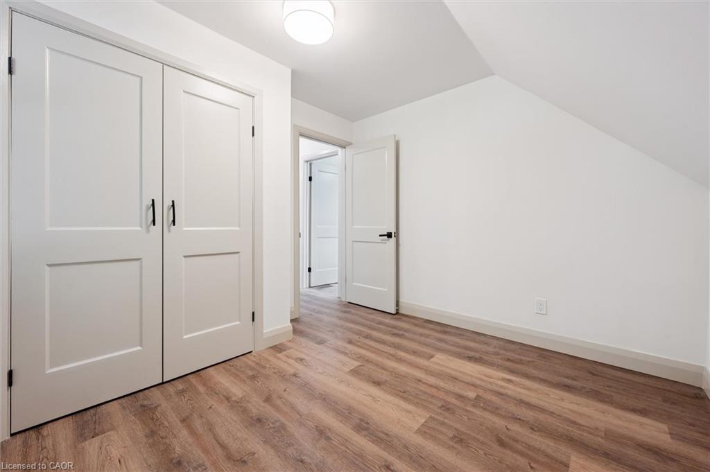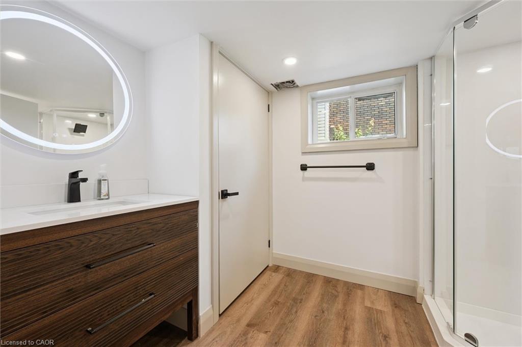 Attention First Time Homebuyers! This fully renovated Detached home blends modern upgrades with classic charm in a sought-after Kitchener location. Built in 1920 and extensively updated in 2025, it sits within the SGA1 zoning area, offering excellent long-term value and future potential. Steps from the Iron Horse Trail, ION LRT, and minutes to downtown, it also offers quick access to Rockway Golf Course, Hwy 7/8, and Hwy 401—ideal for commuters and recreation alike. Nearly every surface has been refreshed, including new electrical, plumbing, insulation, drywall, & professional painting. All flooring has been replaced, with refinished walls, ceilings, trim, and doors creating a cohesive designer look. Mechanical upgrades include all-new ductwork, a high-efficiency furnace, central air, and a new owned hot water heater. The modern kitchen features soft-close cabinetry, stainless steel appliances, a pantry, and under-cabinet lighting, seamlessly connecting to bright dining and living areas. New Windows 2025 (Basement Windows Replaced 2022), along with a new front door and rear slider leading to a massive two-level deck overlooking a private backyard with mature trees, new sod, and fresh landscaping. A large detached garage, currently used as a workshop, adds storage and functionality. Upstairs, the primary bedroom spans the full width of the home with a semi-vaulted ceiling, walk-in closet, and access to a versatile loft. The remodeled upper bath showcases porcelain tile, floating cabinetry, and modern fixtures, while the second bedroom offers a large closet and backyard views. The newly finished basement includes raised flooring for warmth, ample lighting, and a stylish three-piece bath. Its open layout is ideal for a family room, home office, or private suite. A bright laundry area with Maytag appliances adds everyday convenience. Move-in ready with extensive updates and valuable SGA1 zoning, 196 Kent Avenue combines comfort, style, and future potential.