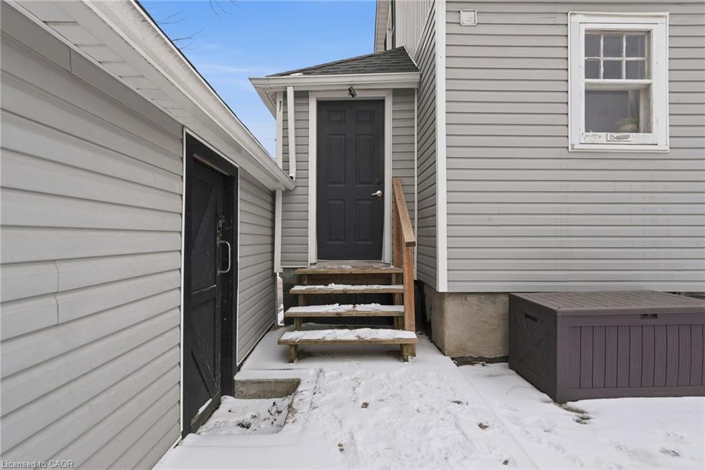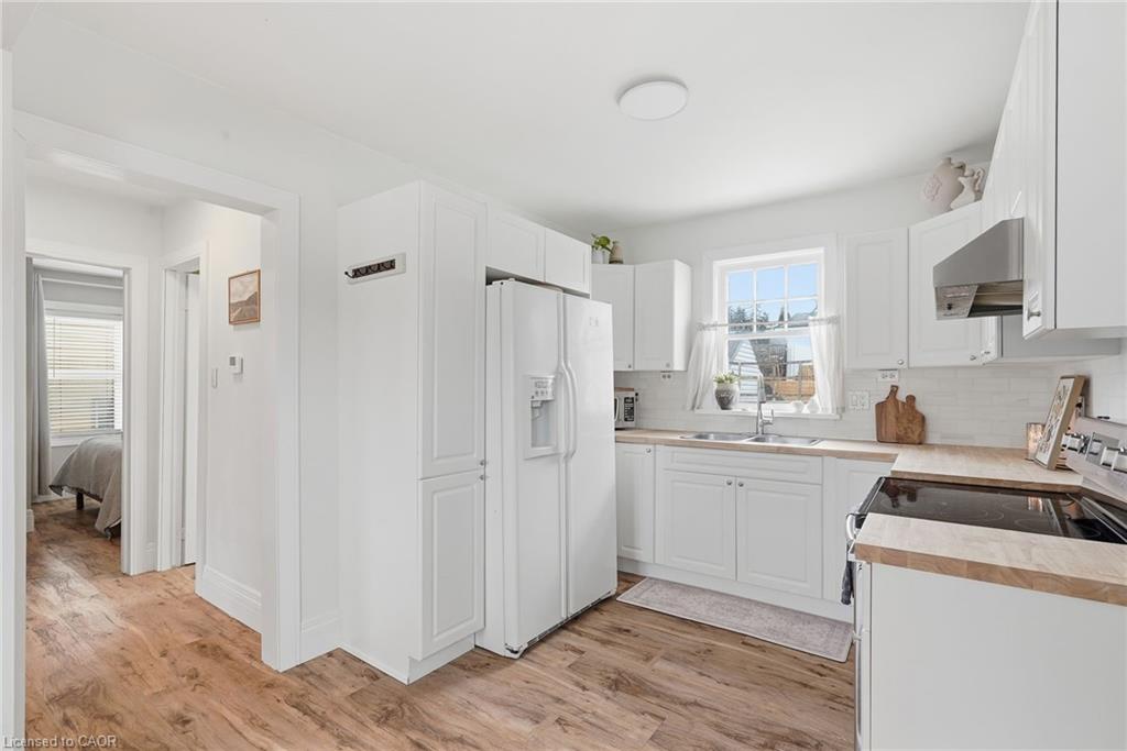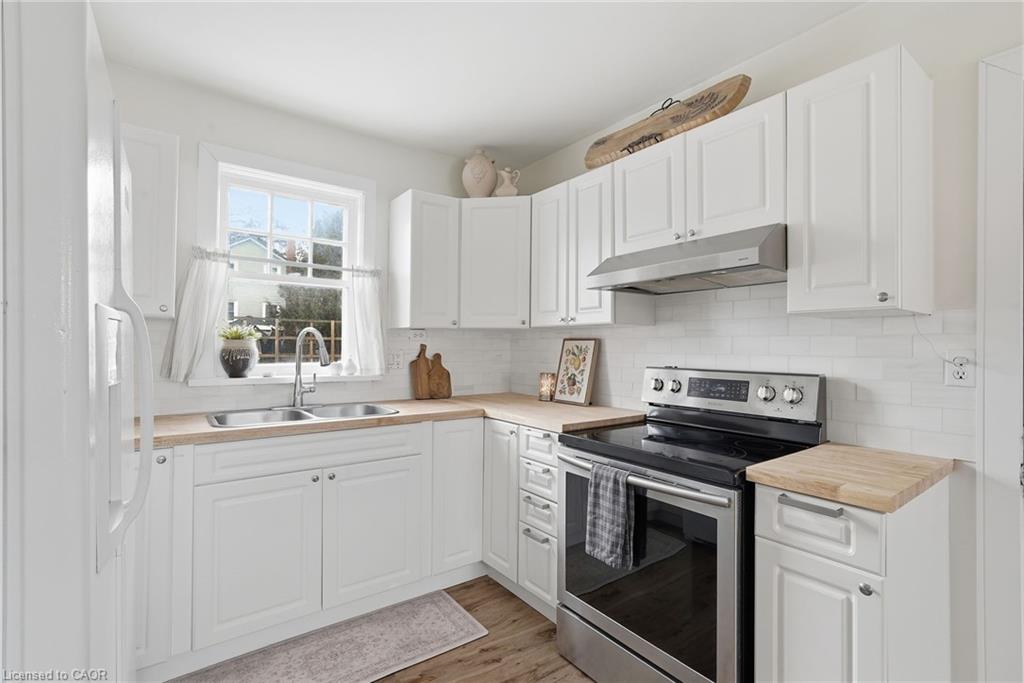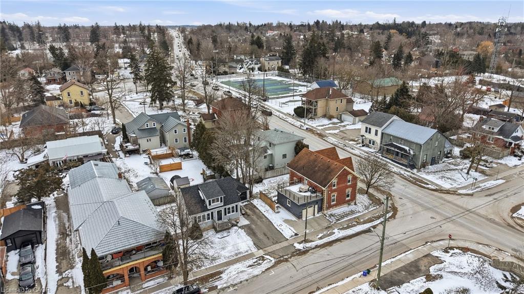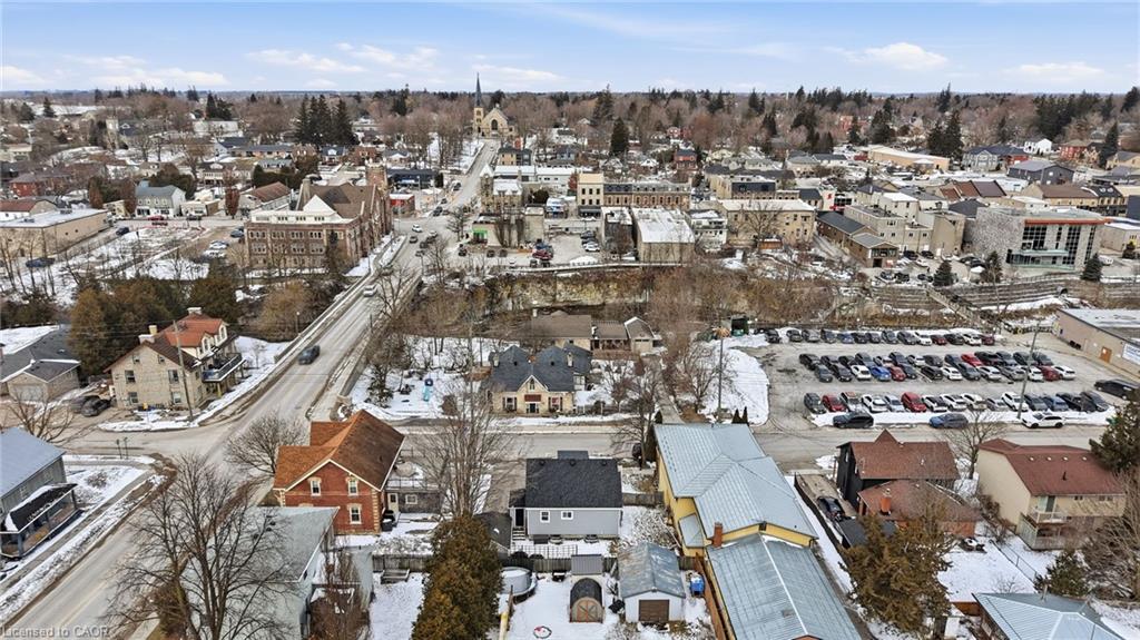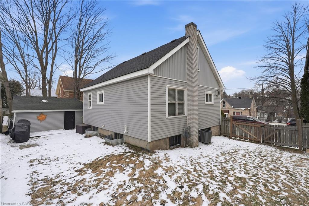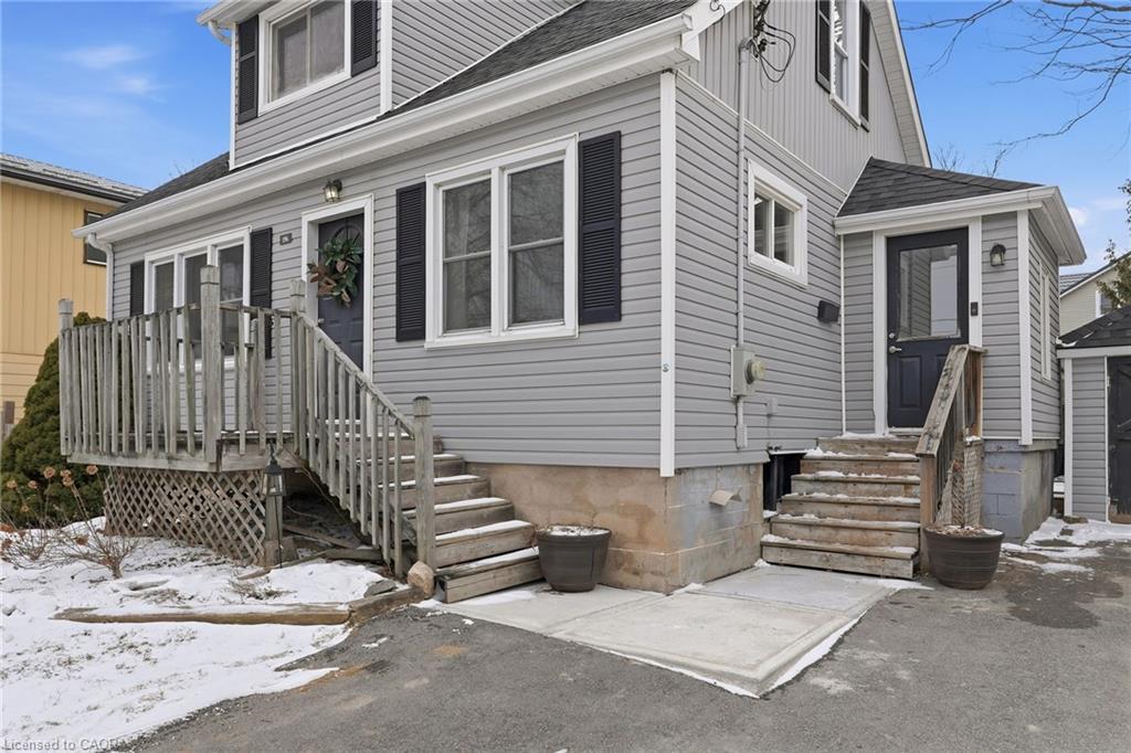 A fantastic opportunity to own a character home in an unbeatable location. This charming 1.5-storey home offers incredible curb appeal and a lifestyle that’s hard to beat. Featuring 3 bedrooms and 1 bath, this beautifully updated home has been preserved with its elegant original charm, and features large baseboard trim throughout. Also including a detached garage with hydro and a recently updated, highly convenient mudroom. The bright kitchen showcases brand-new butcher block countertops and brand new classic subway tile backsplash, opening seamlessly into the spacious dining area-perfect for everyday living and entertaining . The sun-filled living room is warm and inviting, complete with a cozy gas fireplace (2021).The main floor offers the added benefit of a primary bedroom and a full 3-piece bath, ideal for those seeking the convenience of main-level living. Upstairs, you’ll find two generously sized bedrooms along with a charming office nook that looks over the downtown core and offers potential to be converted into a 2-piece bathroom. The partially finished lower level provides additional living space with a comfortable TV/lounge area, plus a laundry room and ample storage. Step outside to enjoy the private patio area, perfect for relaxing or entertaining guests. Located just a short stroll to the vibrant downtown core, you’ll enjoy easy access to pubs, restaurants, boutique shops, and cafés, all while taking in beautiful views of the Grand River just a short stroll away. Key Updates Include: New waterproofing and weeping tile (2018), furnace (2021), A/C (2018), fireplace (2021), and water softener (Owned – 2017), Hot Water Tanks ( Rental – 2026), Recently updated with fresh paint on all trim and doors (2026)