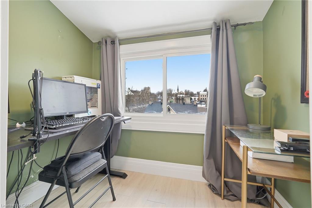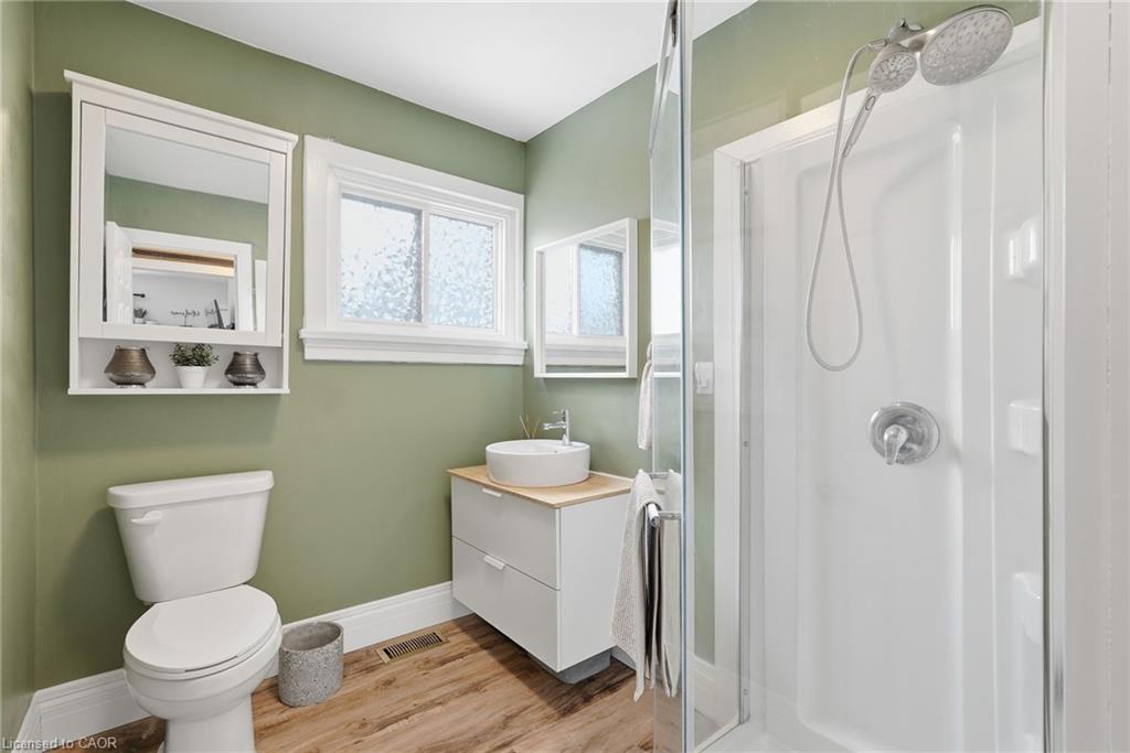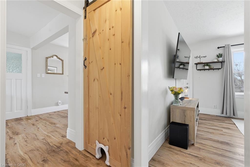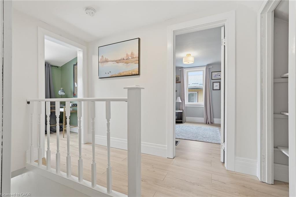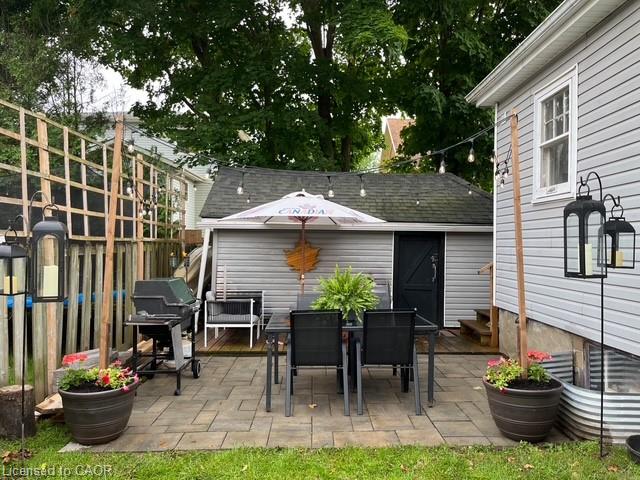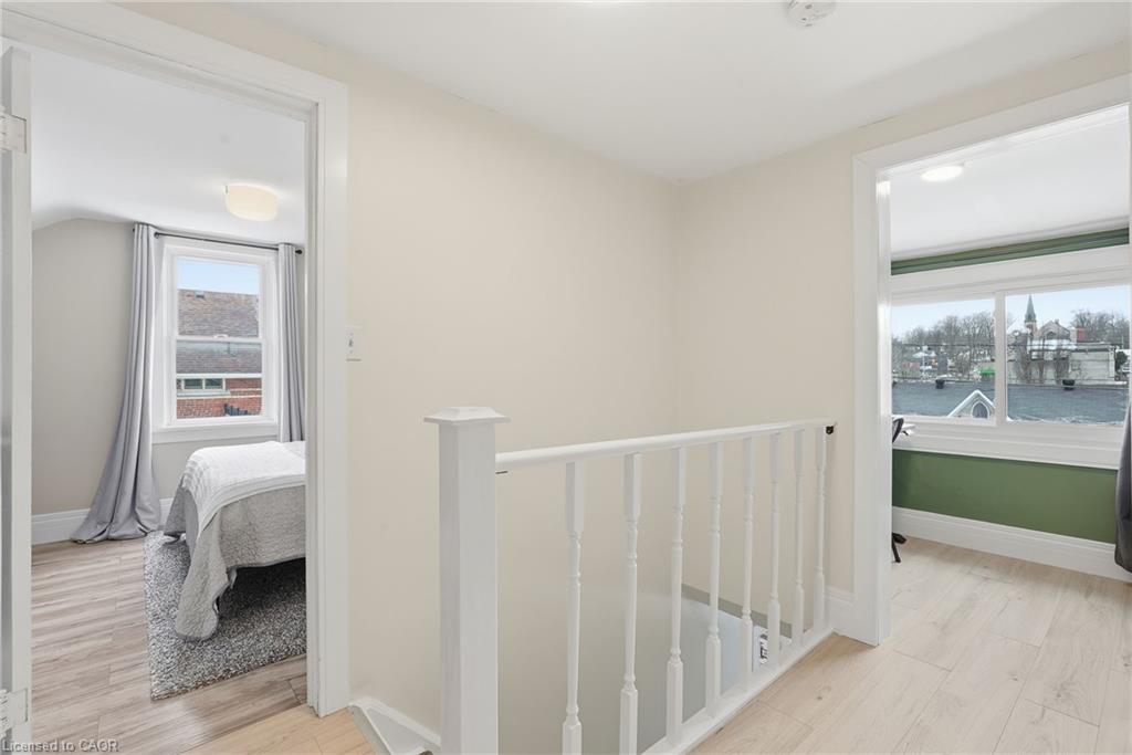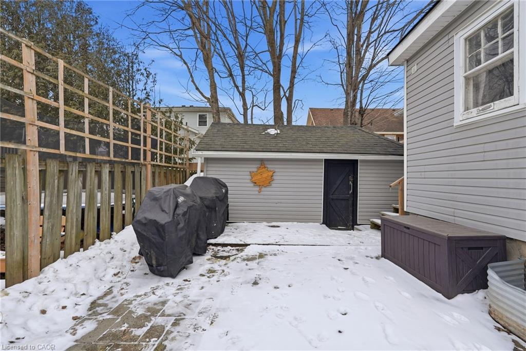 A fantastic opportunity to own a character home in an unbeatable location. This charming 1.5-storey home offers incredible curb appeal and a lifestyle that’s hard to beat. Featuring 3 bedrooms and 1 bath, this beautifully updated home has been preserved with its elegant original charm, and features large baseboard trim throughout. Also including a detached garage with hydro and a recently updated, highly convenient mudroom. The bright kitchen showcases brand-new butcher block countertops and brand new classic subway tile backsplash, opening seamlessly into the spacious dining area-perfect for everyday living and entertaining . The sun-filled living room is warm and inviting, complete with a cozy gas fireplace (2021).The main floor offers the added benefit of a primary bedroom and a full 3-piece bath, ideal for those seeking the convenience of main-level living. Upstairs, you’ll find two generously sized bedrooms along with a charming office nook that looks over the downtown core and offers potential to be converted into a 2-piece bathroom. The partially finished lower level provides additional living space with a comfortable TV/lounge area, plus a laundry room and ample storage. Step outside to enjoy the private patio area, perfect for relaxing or entertaining guests. Located just a short stroll to the vibrant downtown core, you’ll enjoy easy access to pubs, restaurants, boutique shops, and cafés, all while taking in beautiful views of the Grand River just a short stroll away. Key Updates Include: New waterproofing and weeping tile (2018), furnace (2021), A/C (2018), fireplace (2021), and water softener (Owned – 2017), Hot Water Tanks ( Rental – 2026), Recently updated with fresh paint on all trim and doors (2026)