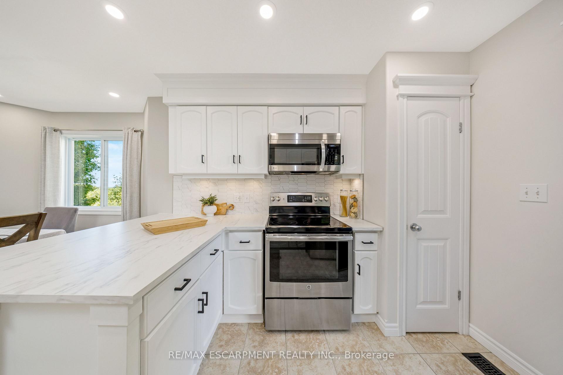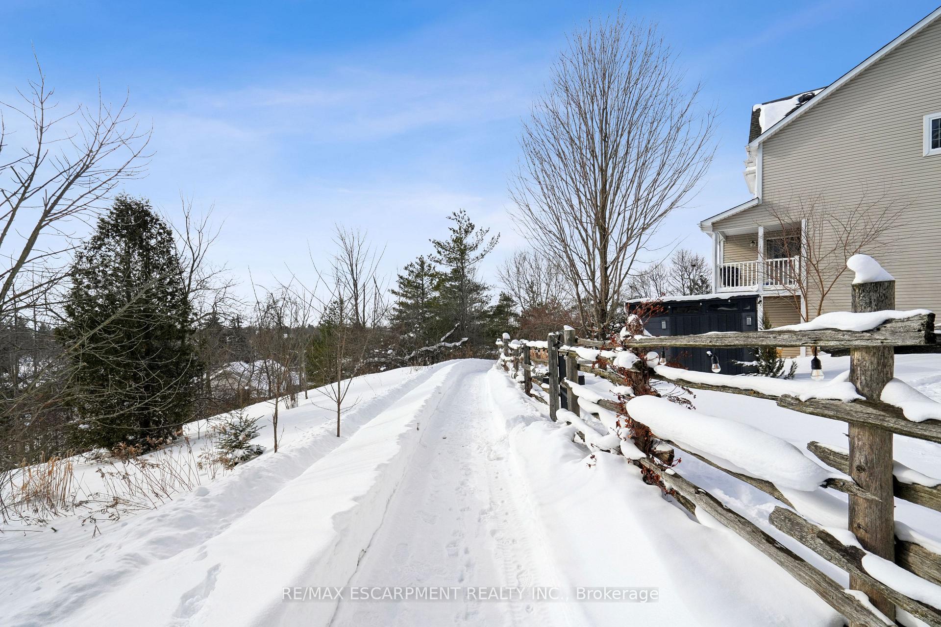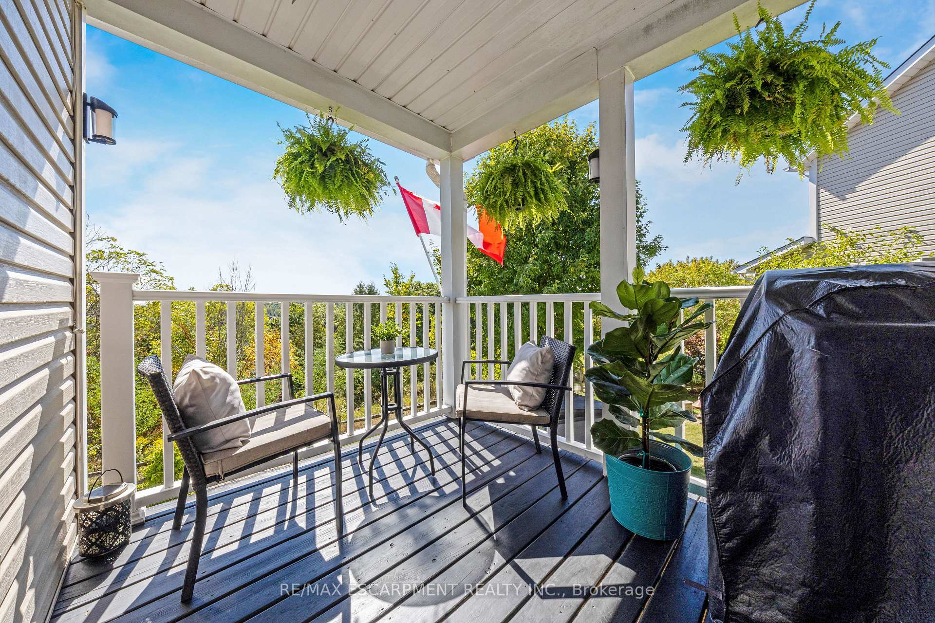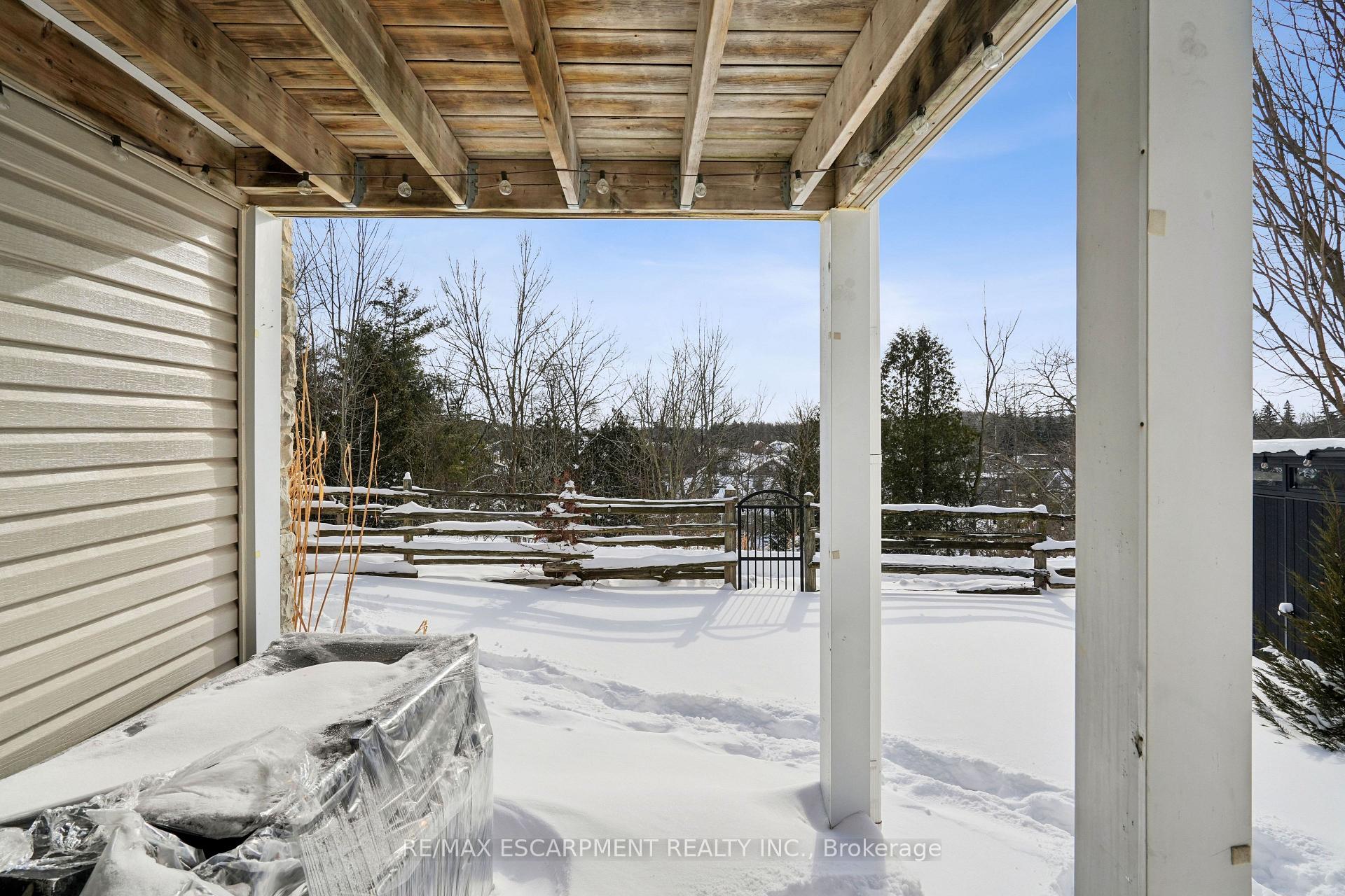 Welcome home to 197 Carters Lane, Rockwood, ON, an end-unit townhouse that checks all the boxes for growing families or those taking the exciting leap into home ownership. Situated on a pie shaped lot with no backyard neighbours, this home offers privacy, comfort, and space to grow. Step through the beautifully landscaped front entrance with charming arbor stone steps into the heart of the home. The main floor features an updated kitchen – new countertops, a stylish backsplash, and modern light fixtures – flowing effortlessly into a bright dining area with a large window that brings in warm natural light. The living room boasts gleaming hardwood floors, pot lights, and a walkout to a balcony overlooking the well-kept backyard – perfect for morning coffee or watching kids play. The main level also features a powder room and direct access to the garage. Upstairs you’ll find three cozy bedrooms and a full four-piece bathroom, with semi ensuite access from the primary bedroom. The primary also includes a walk-in closet and generous natural light. Upper-level laundry makes life easier-no more hauling laundry up and down stairs. The finished basement adds even more living space: a bright recreation room, exercise room, vinyl flooring, pot lights, and a walkout to a covered patio – an ideal spot for family BBQs, kid space, or just chilling outdoors in any weather. There’s also a convenient 3-piece bathroom downstairs. Located on a friendly, family-oriented street in a neighbourhood known for green space and natural features, you’ll love having access to trails, and nearby parks. The Rockwood Conservation Area is close by for weekend adventures in nature. And with easy commutes to Guelph and Acton (for GO train access), this home delivers both peaceful living and connected opportunity. If you’re ready to start your home ownership journey in a place where your children can make new friends, play in the yard, and you feel part of a real community – this one’s waiting for you.