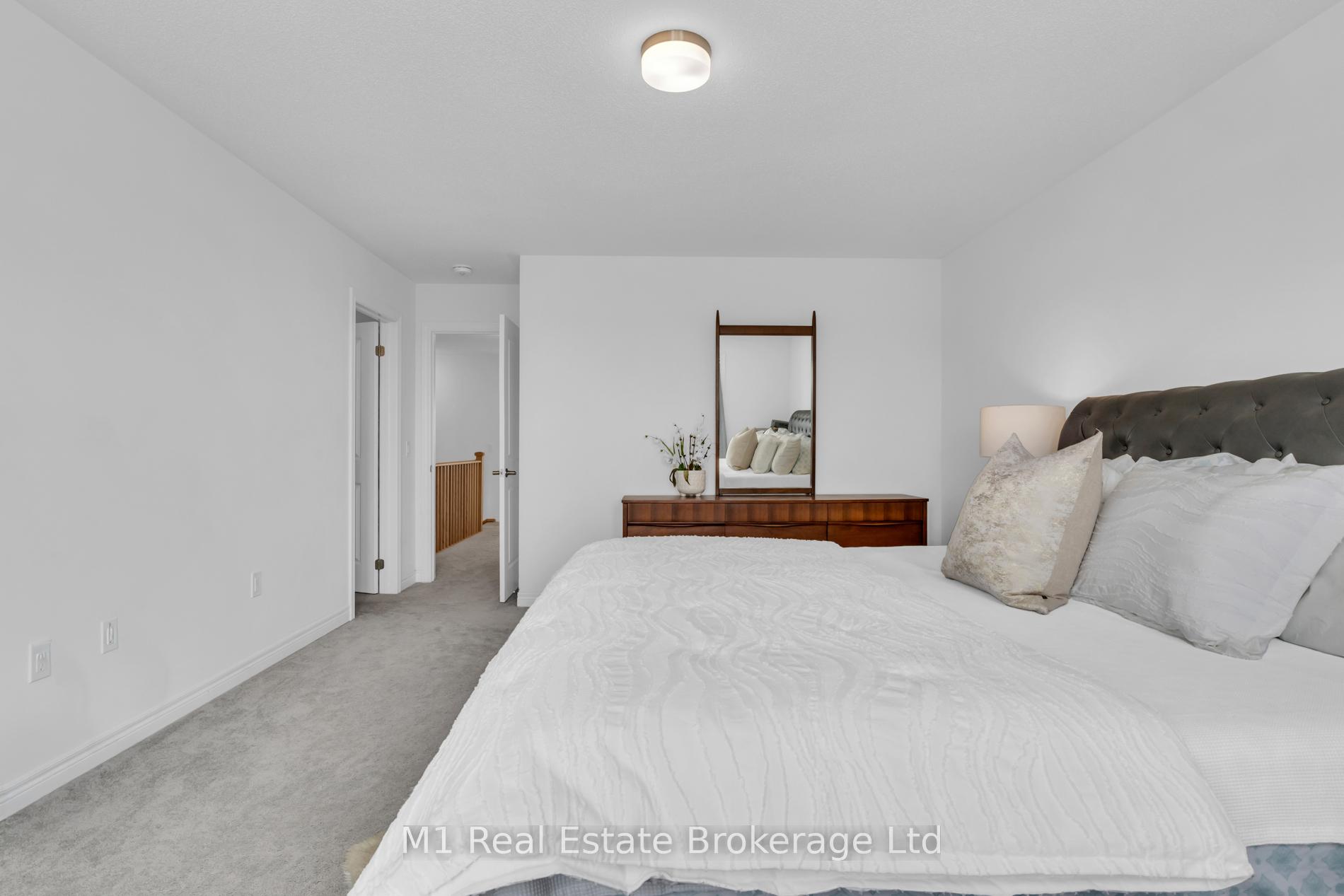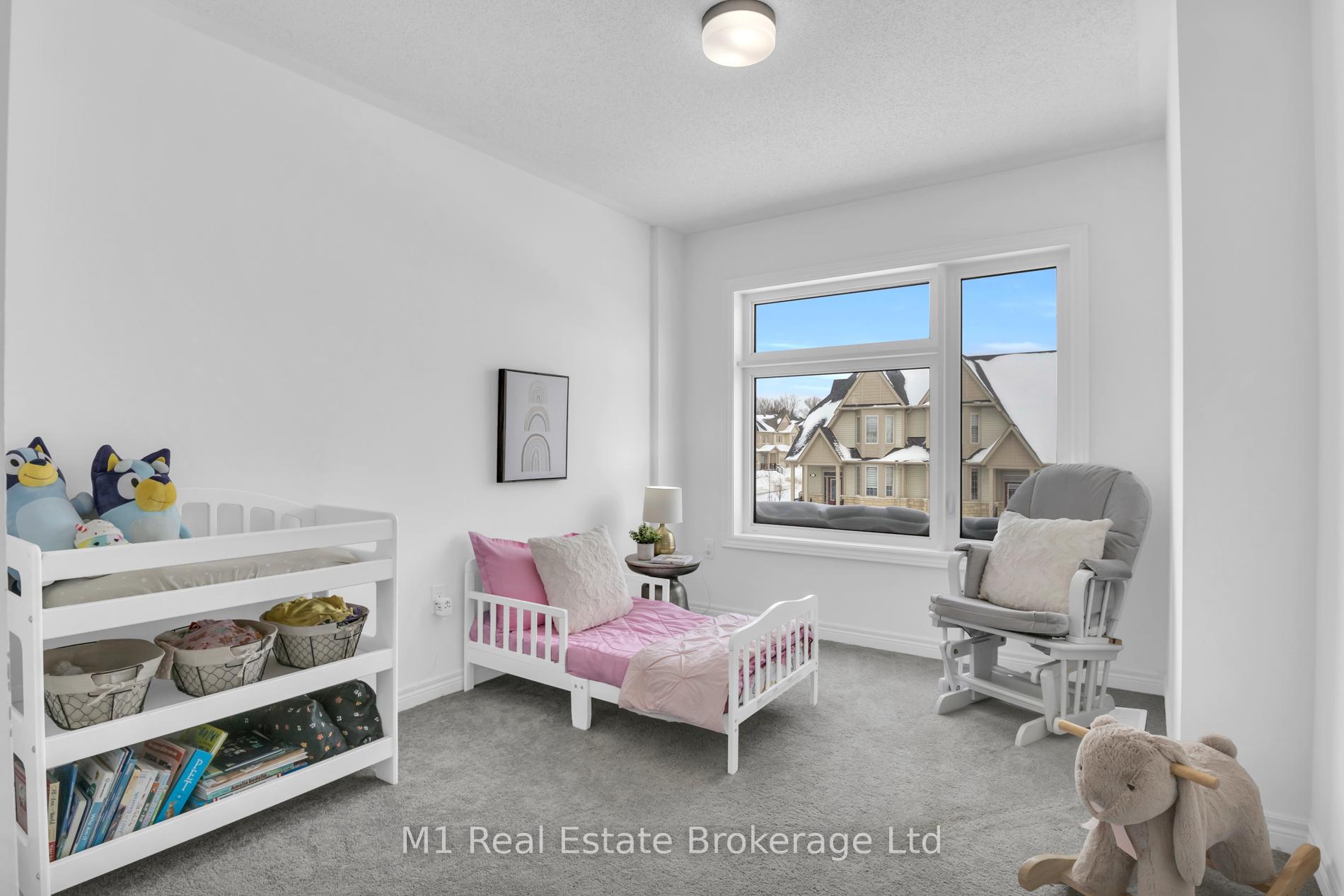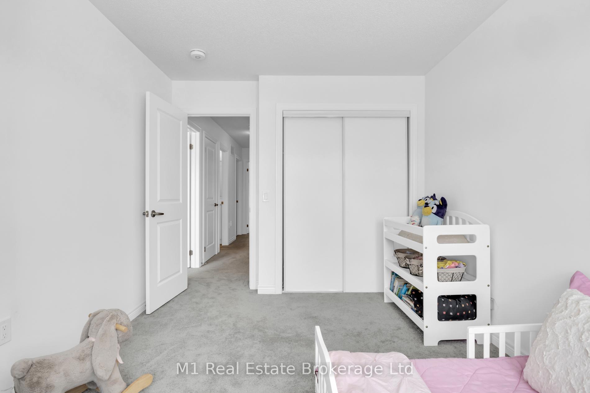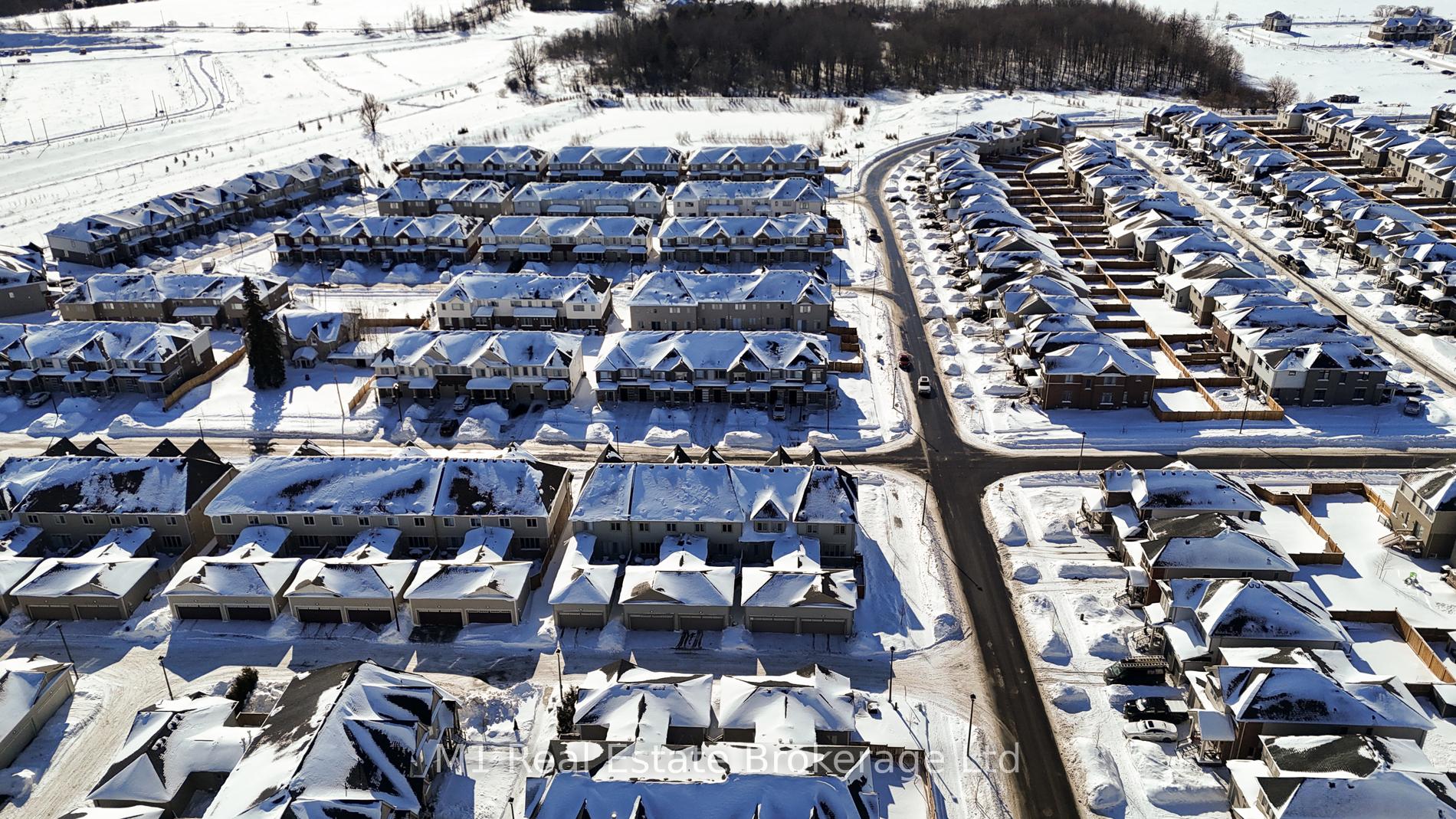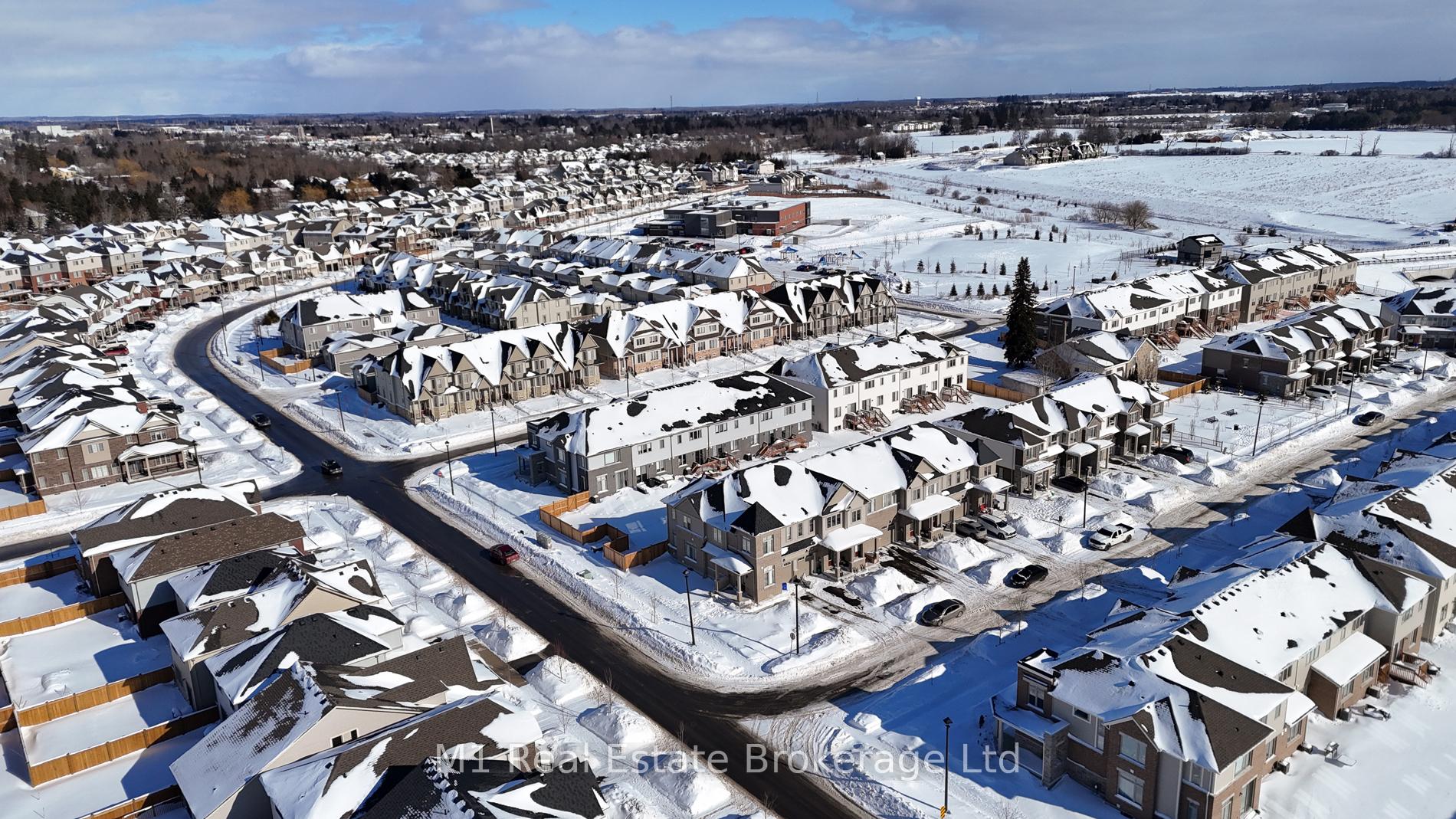 Welcome to 197 Farley Road, a well-designed freehold townhome located in the desirable Storybrook community of Fergus. This modern two-storey home offers approximately 1,742 sq. ft. of finished living space with three bedrooms and three bathrooms, providing a practical layout suited to everyday living. The main floor features a bright, open-concept design anchored by a contemporary kitchen with ample cabinetry, a large centre island, and quality finishes throughout, flowing seamlessly into the main living area. Upstairs, the primary bedroom includes a walk-in closet and a private four-piece ensuite, while two additional bedrooms share a full main bath. Upper-level laundry adds everyday convenience, and the unfinished basement offers excellent potential for future living space with existing rough-ins already in place. Exterior highlights include attractive brick and stone finishes, a covered front porch, and an attached garage with interior access. Ideally located close to schools, parks, trails, recreation facilities, and Groves Memorial Community Hospital, this home offers a low-maintenance lifestyle in one of Fergus’s established newer neighbourhoods.