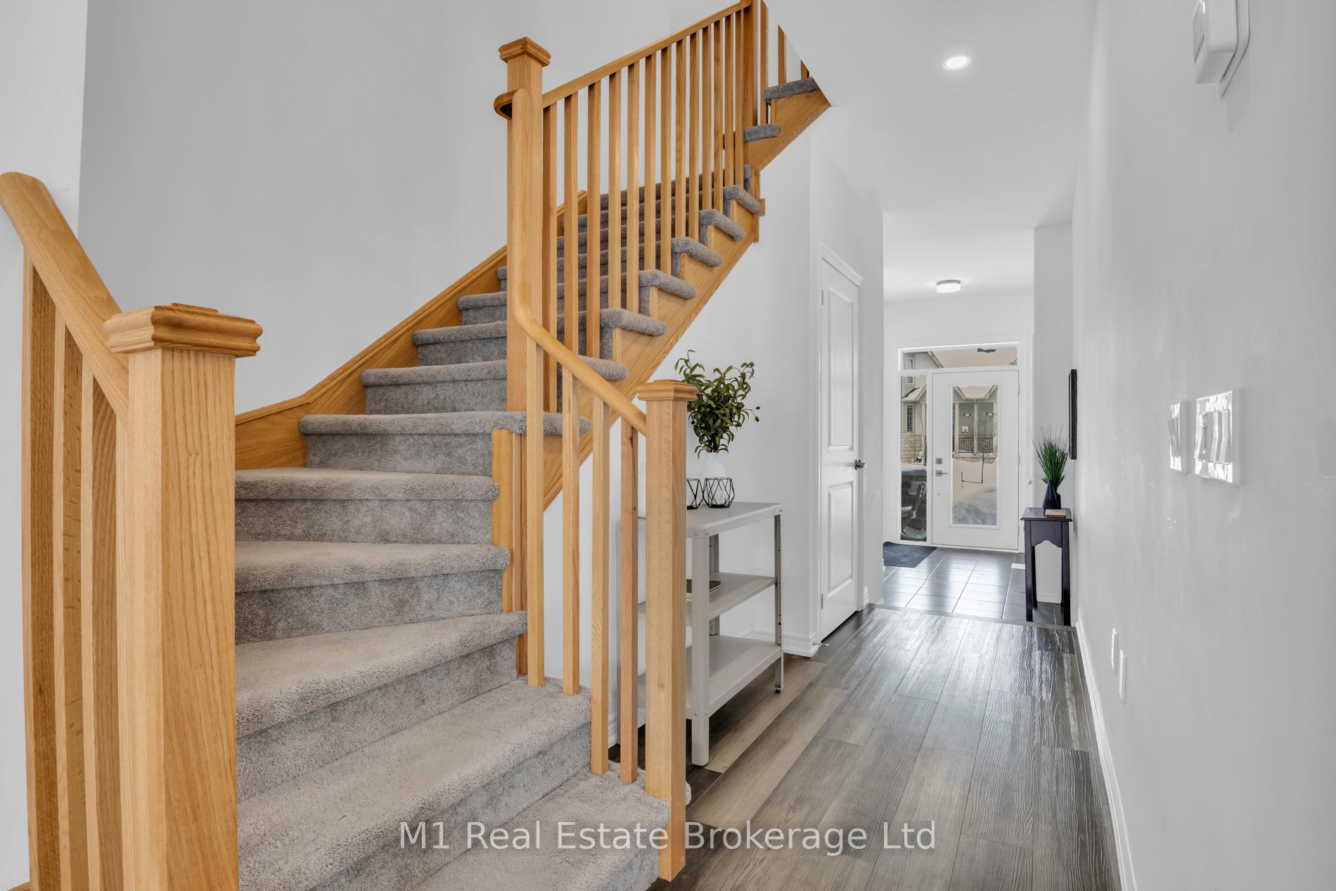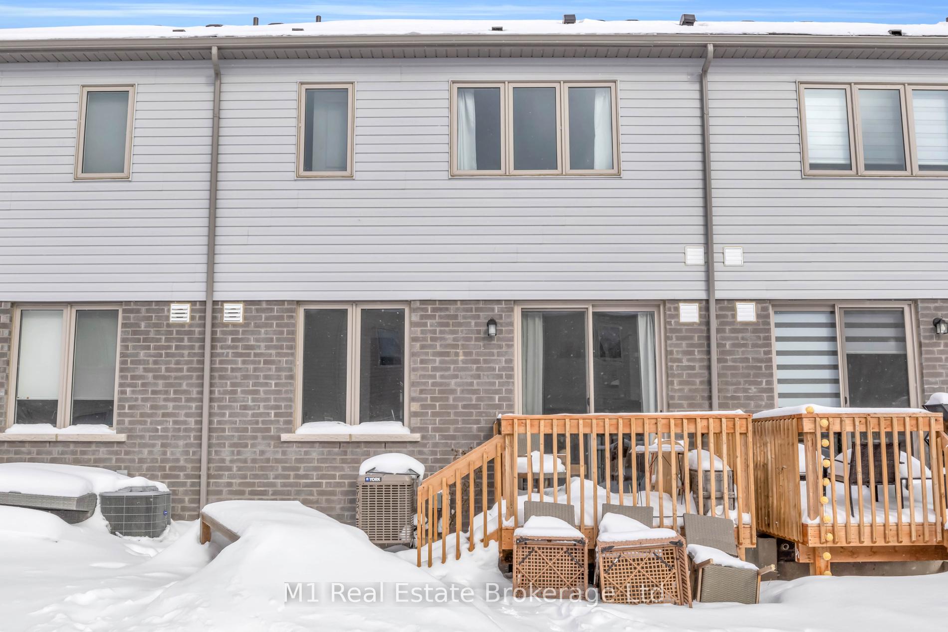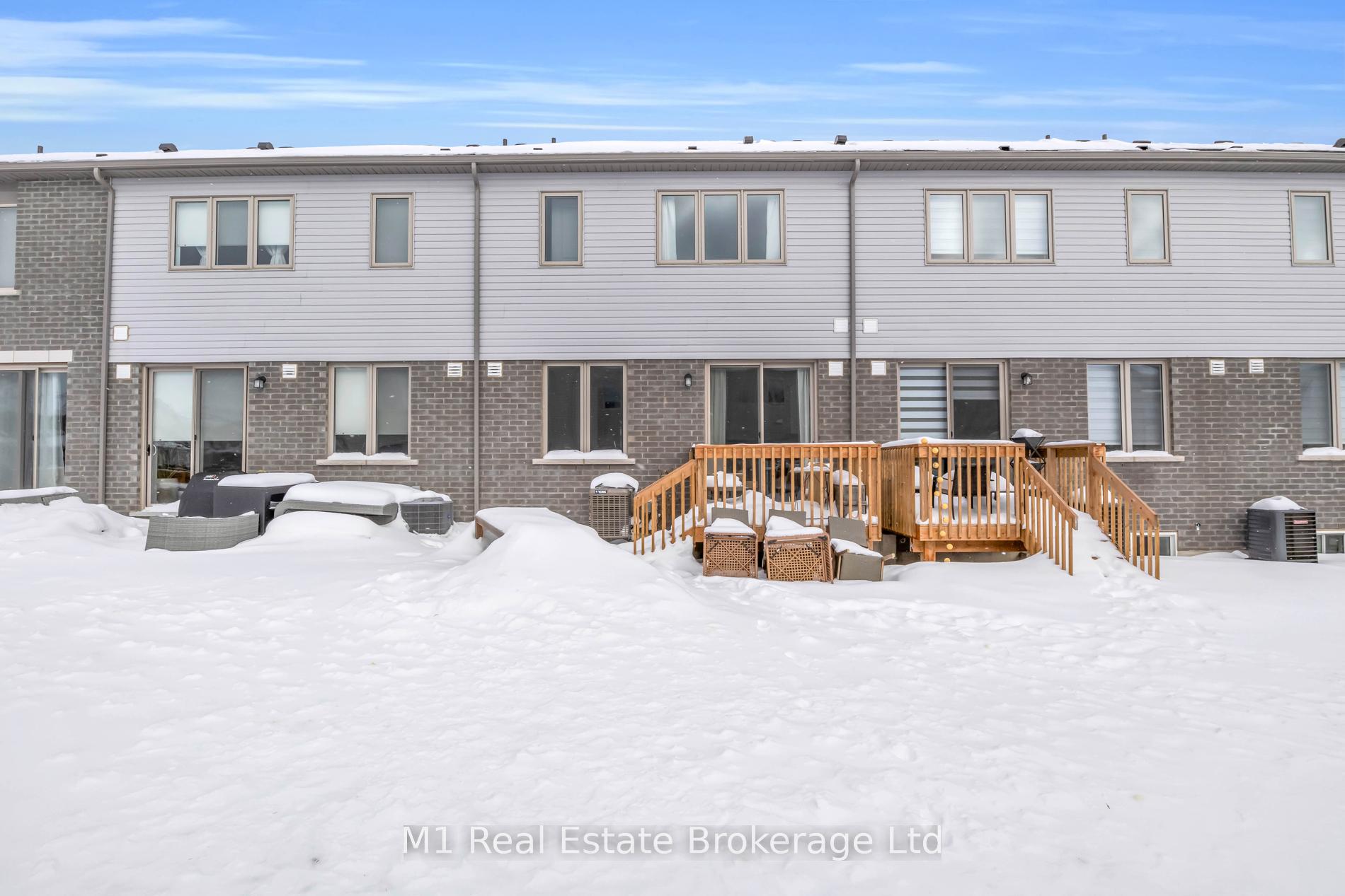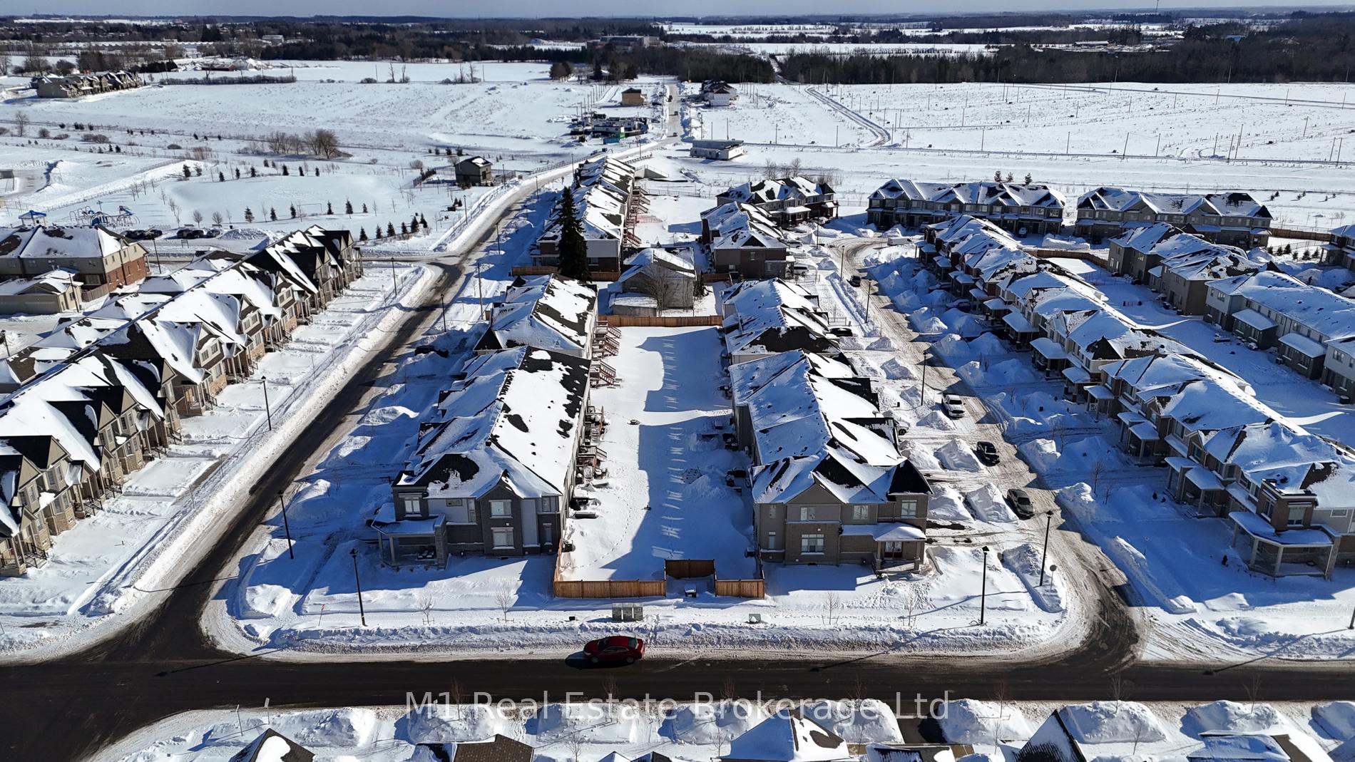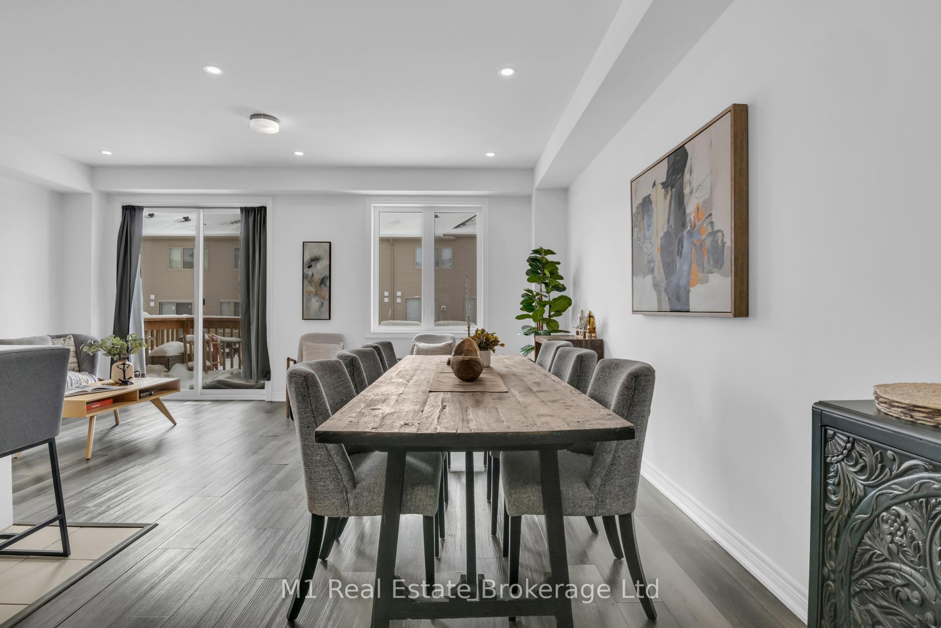 Welcome to 197 Farley Road, a well-designed freehold townhome located in the desirable Storybrook community of Fergus. This modern two-storey home offers approximately 1,742 sq. ft. of finished living space with three bedrooms and three bathrooms, providing a practical layout suited to everyday living. The main floor features a bright, open-concept design anchored by a contemporary kitchen with ample cabinetry, a large centre island, and quality finishes throughout, flowing seamlessly into the main living area. Upstairs, the primary bedroom includes a walk-in closet and a private four-piece ensuite, while two additional bedrooms share a full main bath. Upper-level laundry adds everyday convenience, and the unfinished basement offers excellent potential for future living space with existing rough-ins already in place. Exterior highlights include attractive brick and stone finishes, a covered front porch, and an attached garage with interior access. Ideally located close to schools, parks, trails, recreation facilities, and Groves Memorial Community Hospital, this home offers a low-maintenance lifestyle in one of Fergus’s established newer neighbourhoods.