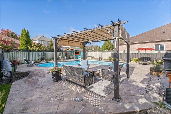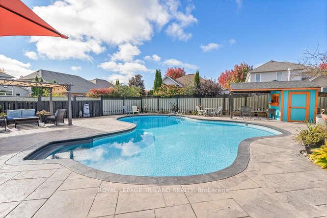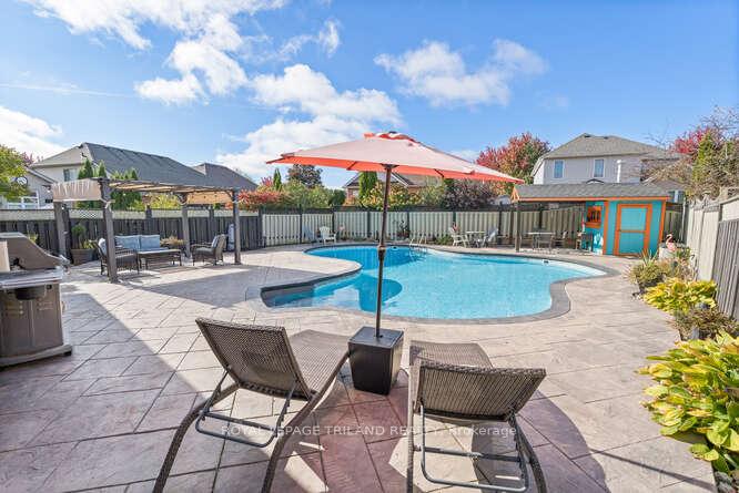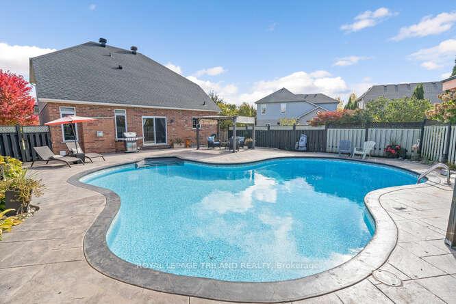 Nestled in a peaceful cul-de-sac in the desirable Rockwood neighborhood, this lovely detached home offers a perfect blend of comfort and luxury. With three bedrooms and three bathrooms, this home provides ample space for the whole family. Step into the heart of the home a kitchen and family room featuring vaulted ceilings that create an open and airy feel. The spacious primary suite is a true retreat, complete with vaulted ceilings and a luxurious four-piece en-suite bathroom. Enjoy the convenience of main-floor laundry and entertain with ease in the formal living and dining rooms. Outside, an inground pool awaits, surrounded by stamped concrete, making it an ideal spot for summer gatherings and relaxation. This property combines thoughtful design with beautiful finishes, making it a must-see for those seeking a serene and stylish home in Rockwood.