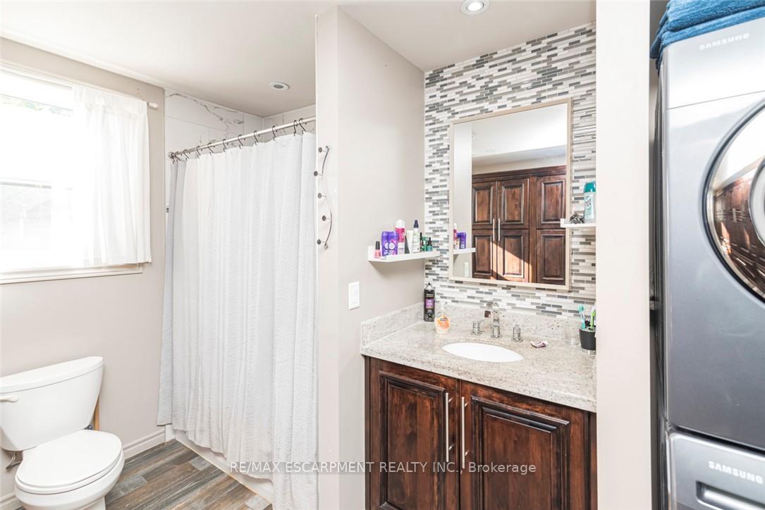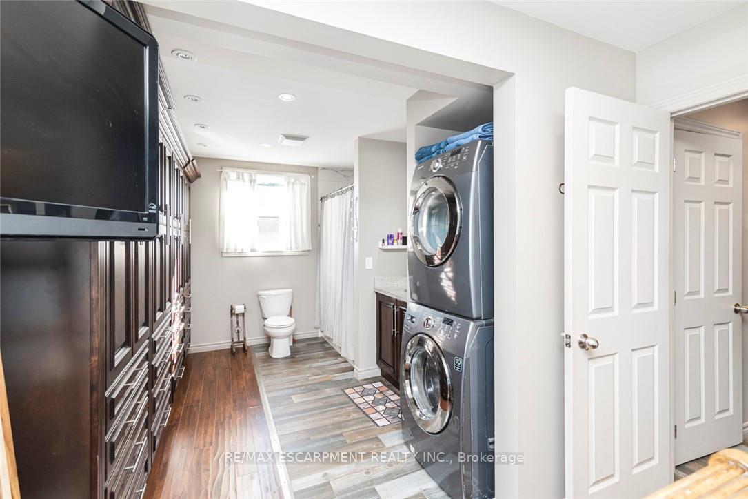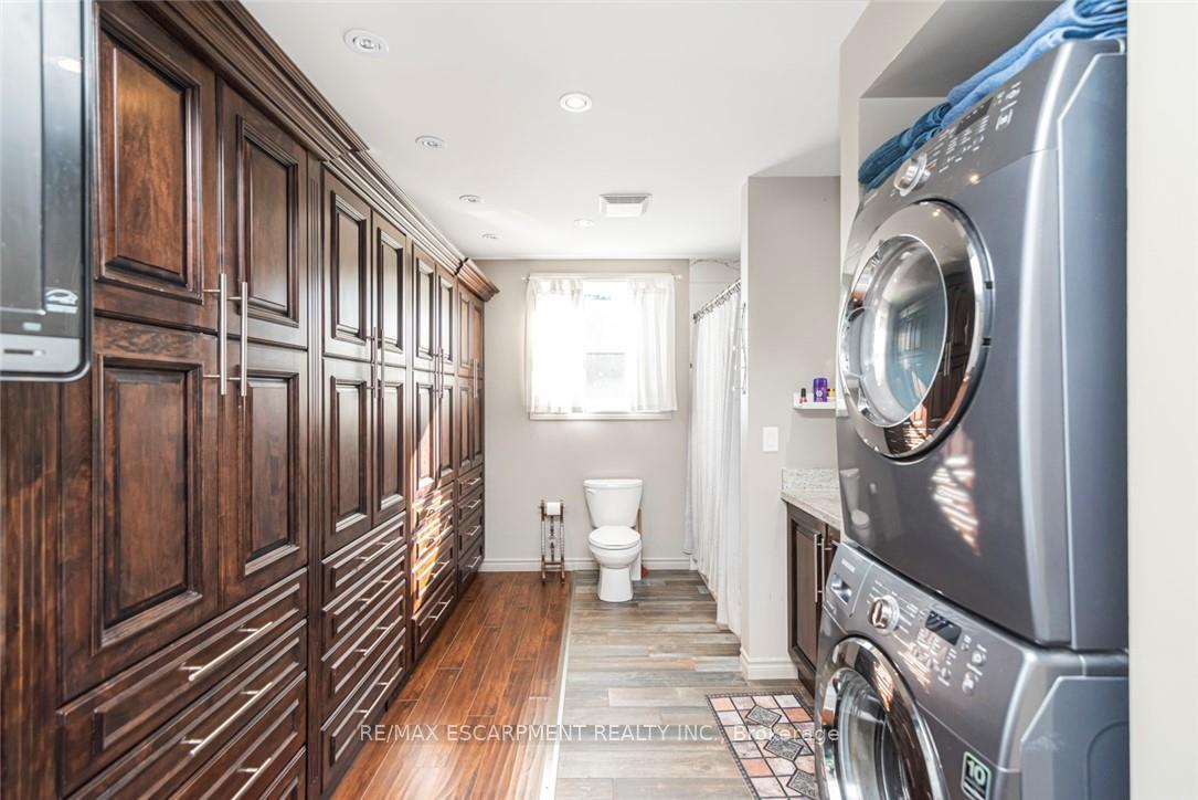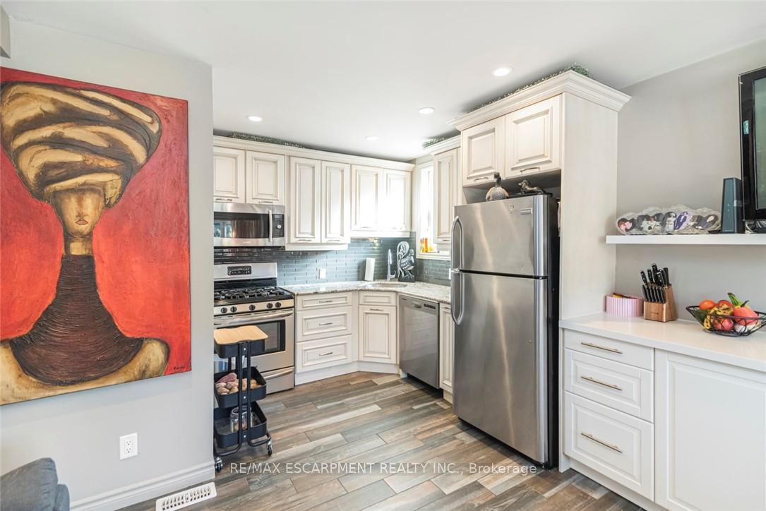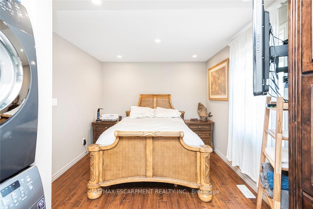 Completely restored from the outside walls. Current owners spent hundreds of thousands on restoring this property for their retirement but plans have changed and it is now available. Updates include spray foam insulation, dry wall doors trim, windows, electrical, plumbing, heating ducks, furnace, gas piping, central air, siding, down spouts, sump pump, weeping tile, concrete retaining wall with rod iron fencing, front yard garden wall porch/deck and new concrete double driveway with 5 car parking. This home is loaded with valuable convenient upgrades like both gas and electrical connections to all stoves and clothes dryers. Private corner lot,3+1 bedrooms,3 1/2 bathrooms with large main floor primary bedroom with luxurious large built in clothes closet,4 peace ensuite bathroom and laundry facilities. Perfect for anyone who would like to avoid stairs. Fully finished basement with fully functioning in law suite complete with one bedroom, living room, dining room, kitchen with five appliances, large bathroom with laundry and separate private entrance. High quality materials and workmanship shows fantastic. Located in the Rosedale Community one of Hamilton’s “hidden gems” A vibrant family orientated neighbourhood located beneath the escarpment in the King Forest area directly across the street from the Kings Forest Golf Course. Tucked beneath the escarpment with only 4 points to enter traffic is minimal with lots of local activities and amenities like golf course, community center, hockey arena, municipal swimming pool, parks, forest, green space, creek, walking and bike trails, and shopping. This is a fabulous healthy active community, a lovely place to live and raise a family. With easy access to hospitals, schools, The Redhill Expressway, the QEW, the escarpment and the downtown core. This home is loaded with valuable high quality improvements, located in a wonderful community. A must see to appreciate the workmanship and design.