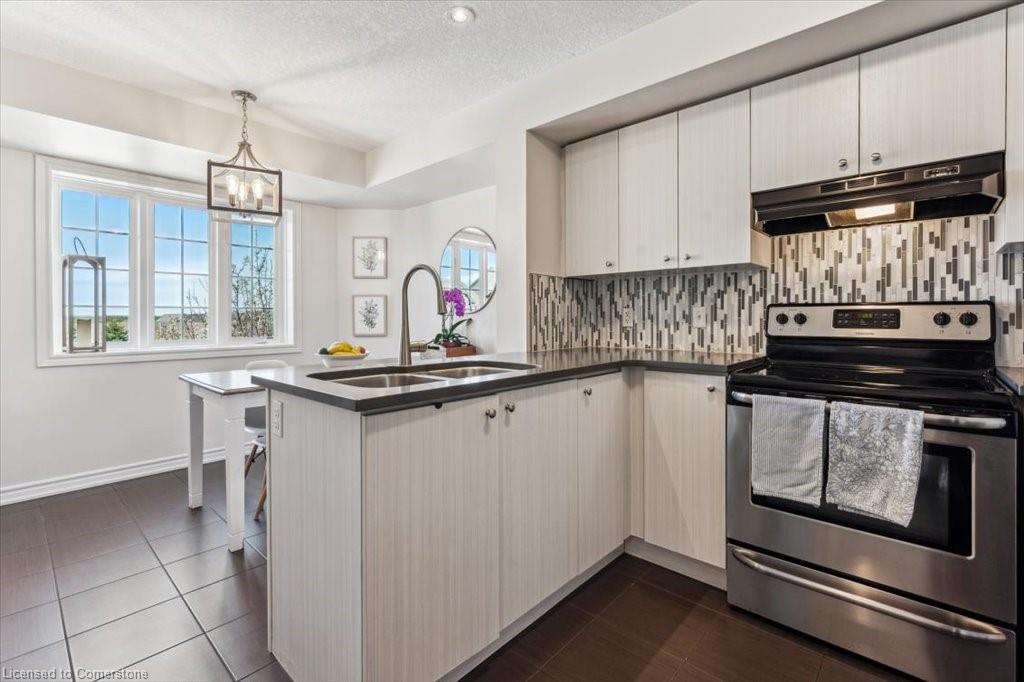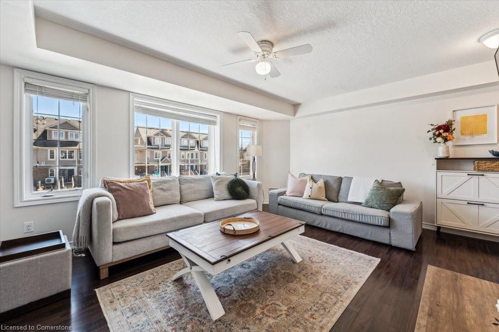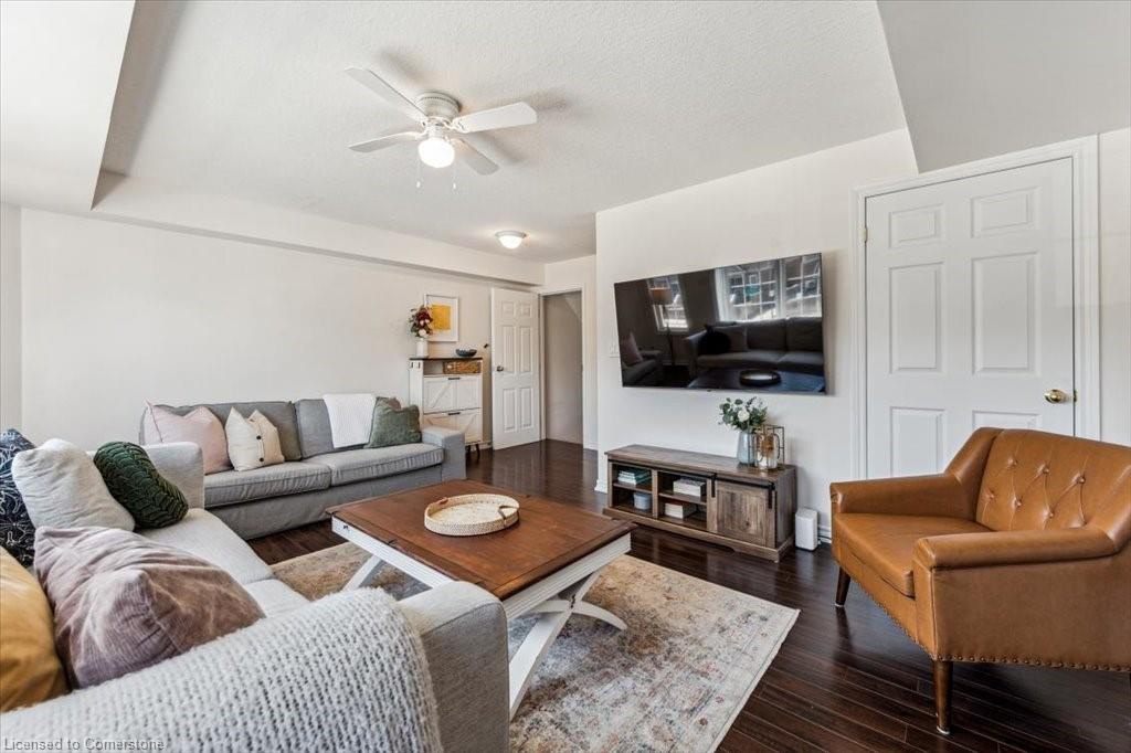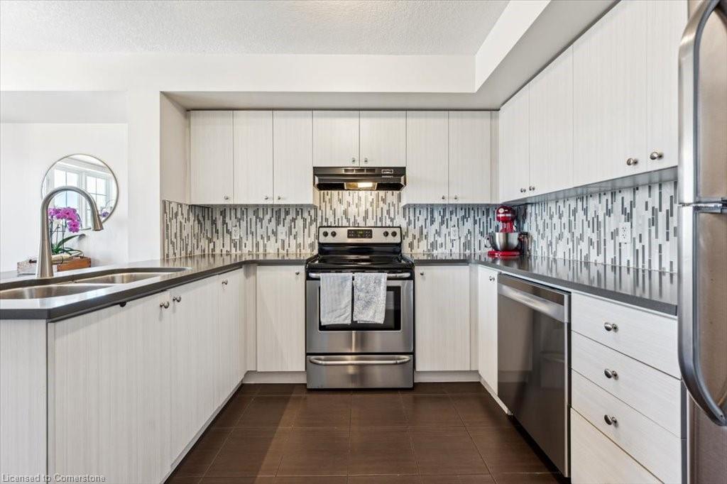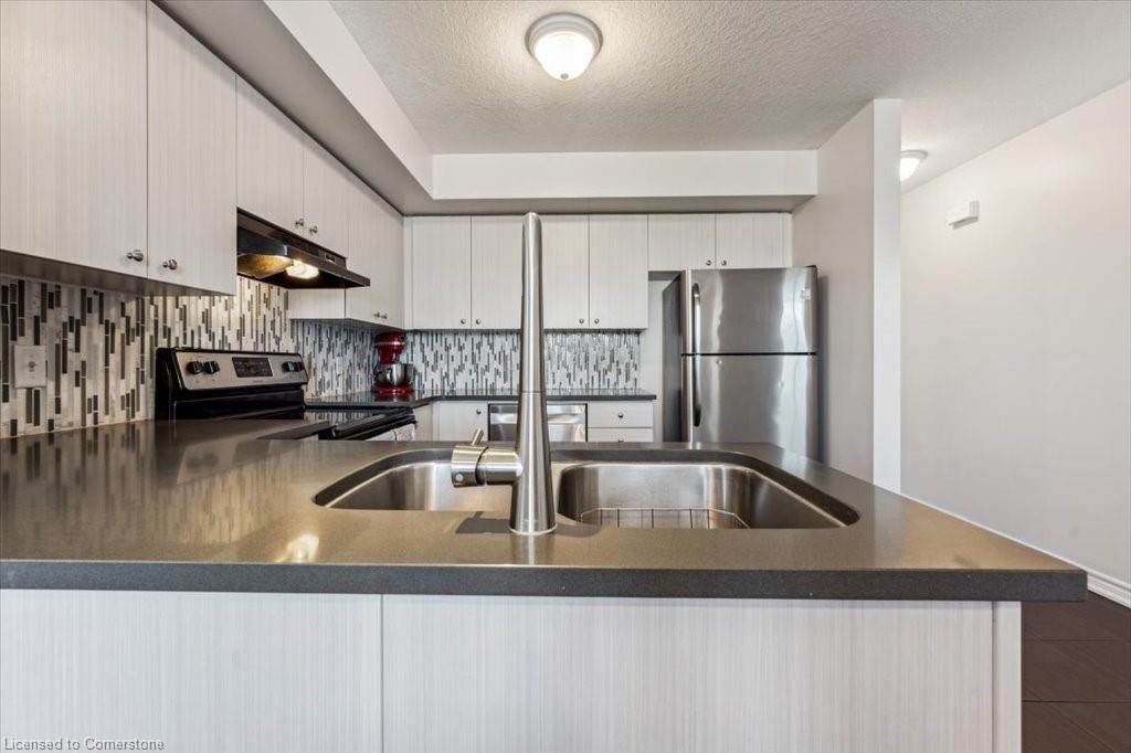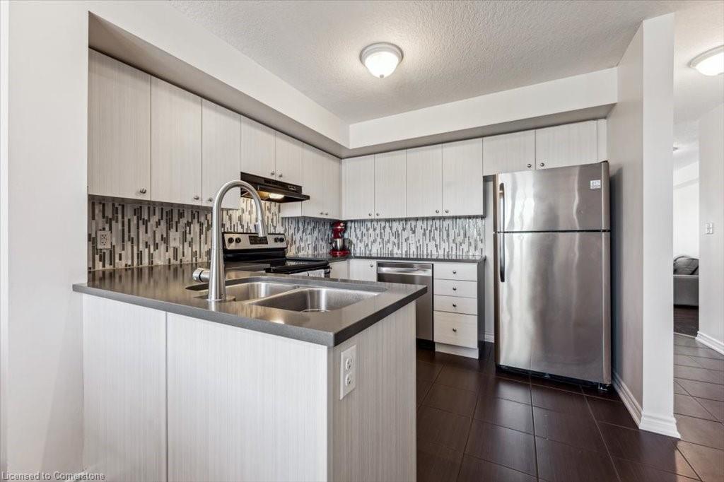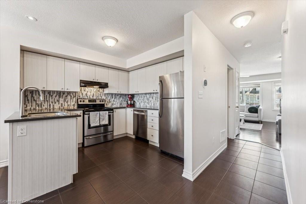 Welcome to this beautifully maintained stacked townhome in Guelphs sought-after north end. Thoughtfully designed with comfort and style, this bright open-concept layout features a spacious living area filled with natural light, a modern kitchen equipped with stainless steel appliances, and a cozy dining space perfect for everyday living and entertaining. Step out onto your private balcony to enjoy peaceful neighbourhood views ideal for a quiet morning coffee or unwinding after a long day. The primary bedroom is generously sized with expansive windows, while the second bedroom offers flexibility for a guest room, home office, or creative space. Recent updates include a washer (2021), dryer (2024), and a brand-new dishwasher (2025), adding both convenience and value. With in-suite laundry, ample storage, and a well-managed, low-maintenance complex, this home is truly move-in ready. Located close to parks, trails, nearby conservation areas, schools, shopping, and transit, this is a fantastic opportunity for first-time buyers, downsizers, or investors alike.