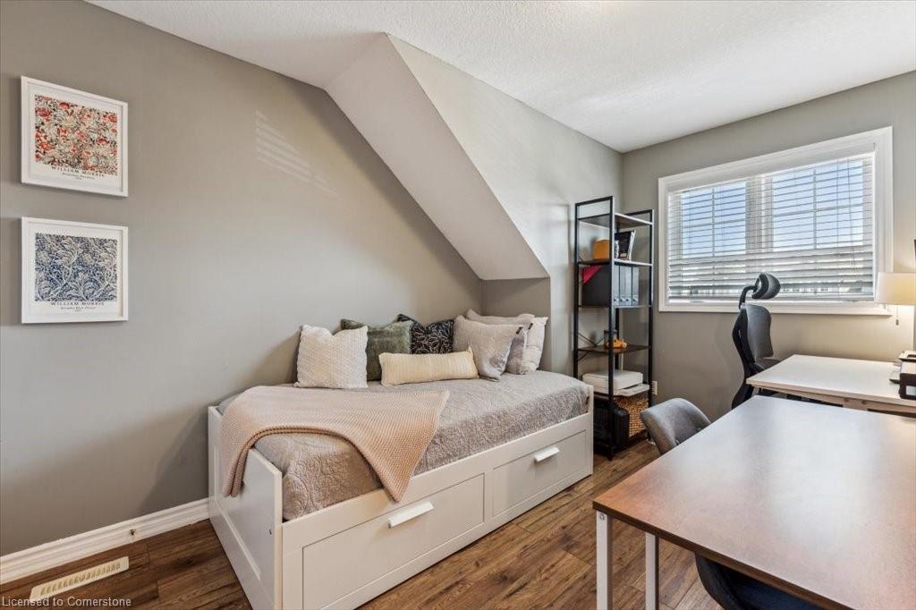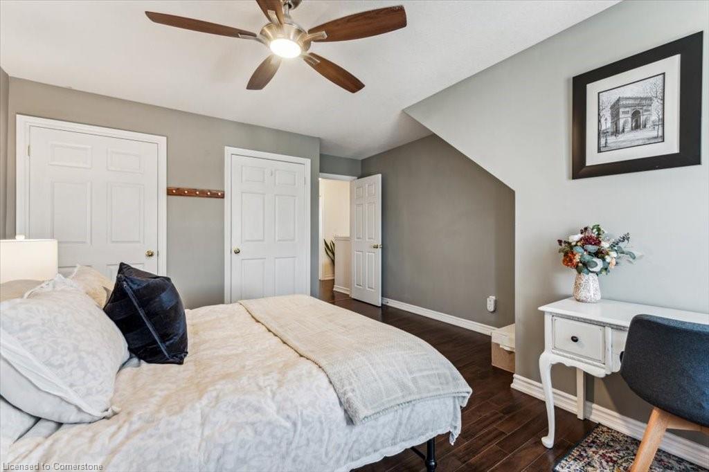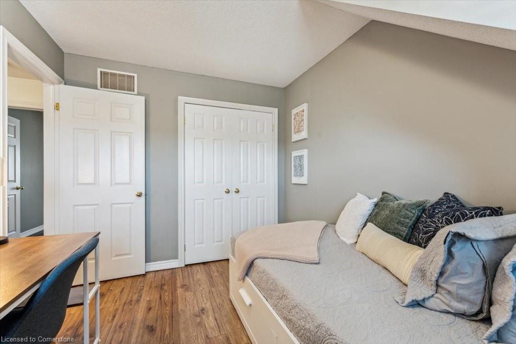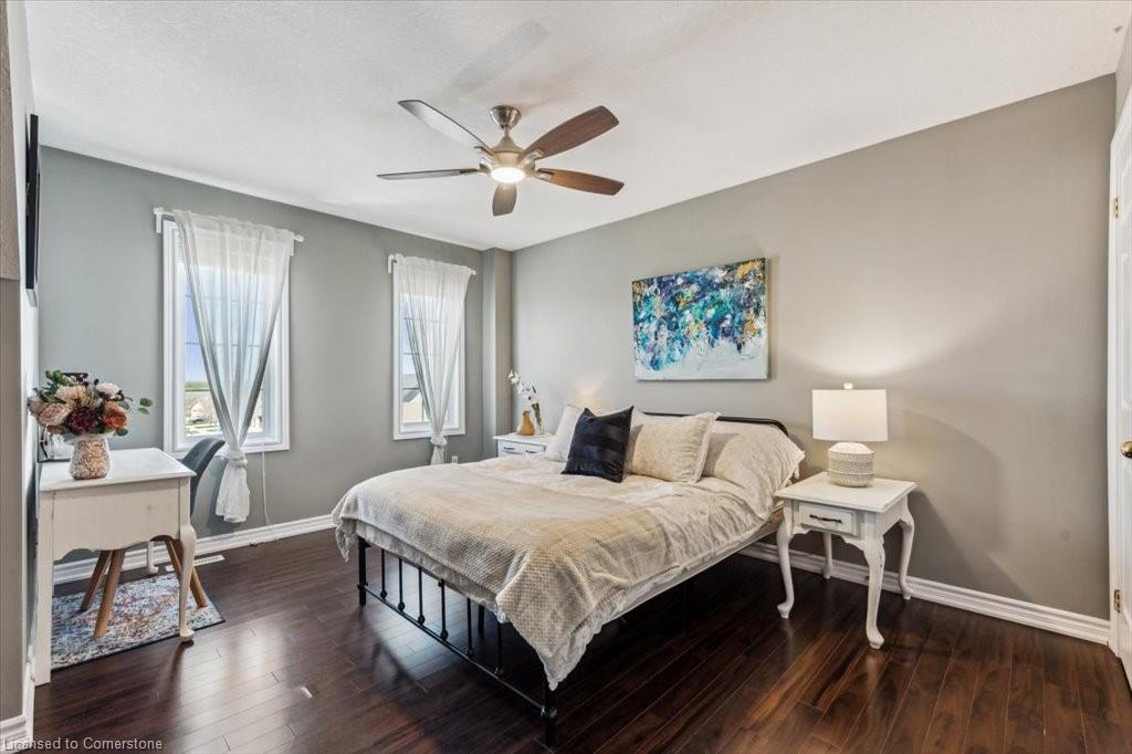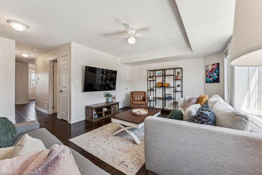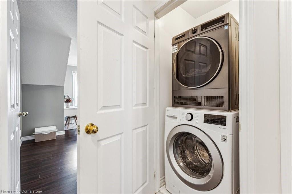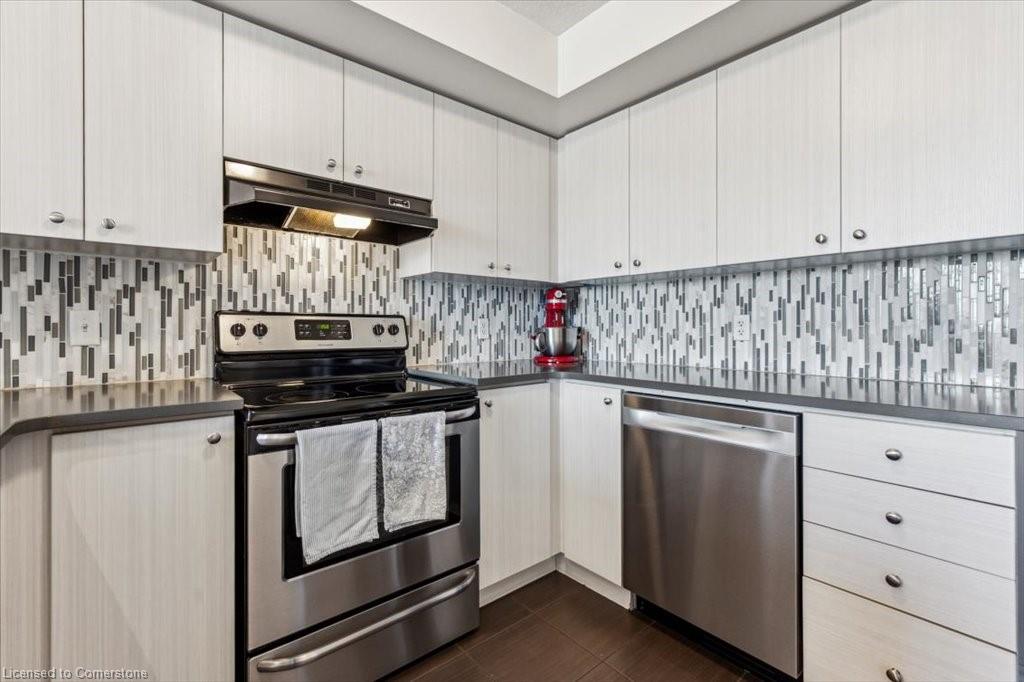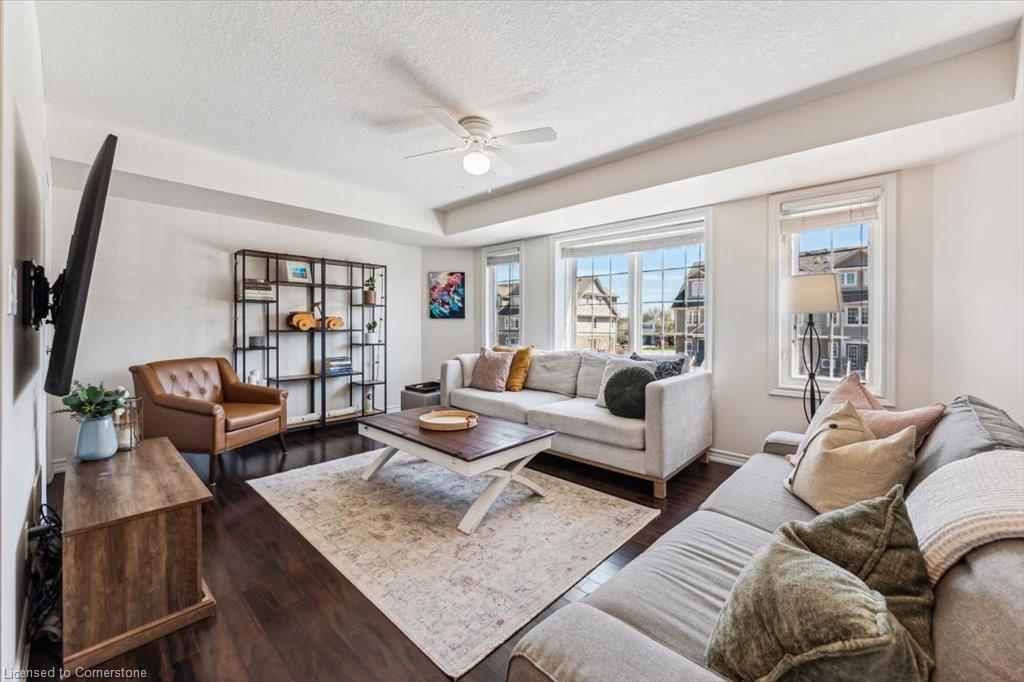 Welcome to this beautifully maintained stacked townhome in Guelphs sought-after north end. Thoughtfully designed with comfort and style, this bright open-concept layout features a spacious living area filled with natural light, a modern kitchen equipped with stainless steel appliances, and a cozy dining space perfect for everyday living and entertaining. Step out onto your private balcony to enjoy peaceful neighbourhood views ideal for a quiet morning coffee or unwinding after a long day. The primary bedroom is generously sized with expansive windows, while the second bedroom offers flexibility for a guest room, home office, or creative space. Recent updates include a washer (2021), dryer (2024), and a brand-new dishwasher (2025), adding both convenience and value. With in-suite laundry, ample storage, and a well-managed, low-maintenance complex, this home is truly move-in ready. Located close to parks, trails, nearby conservation areas, schools, shopping, and transit, this is a fantastic opportunity for first-time buyers, downsizers, or investors alike.