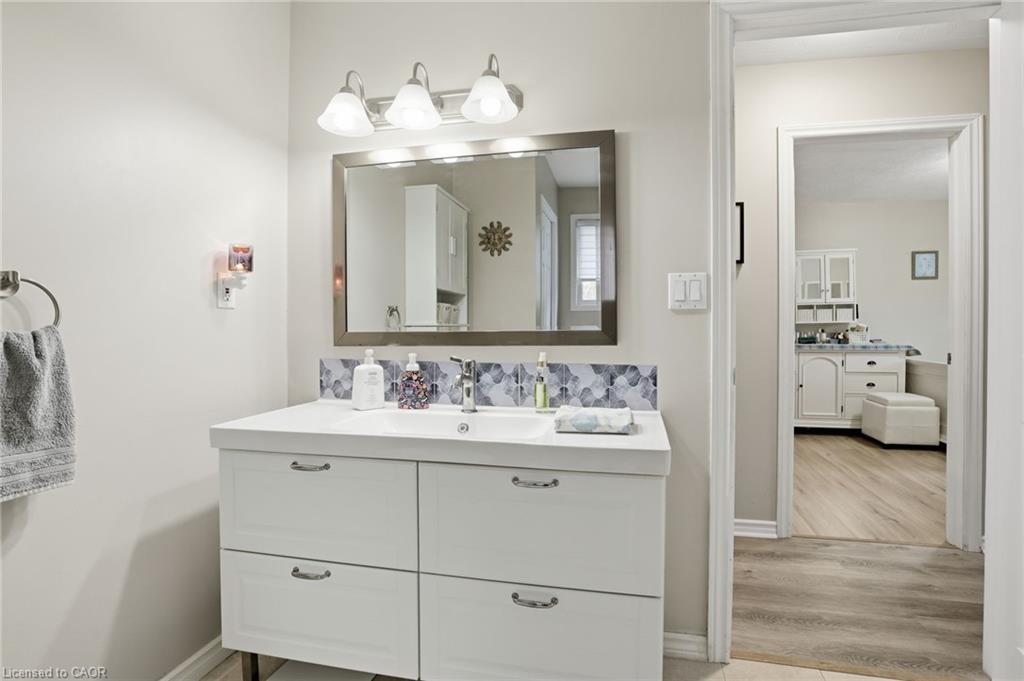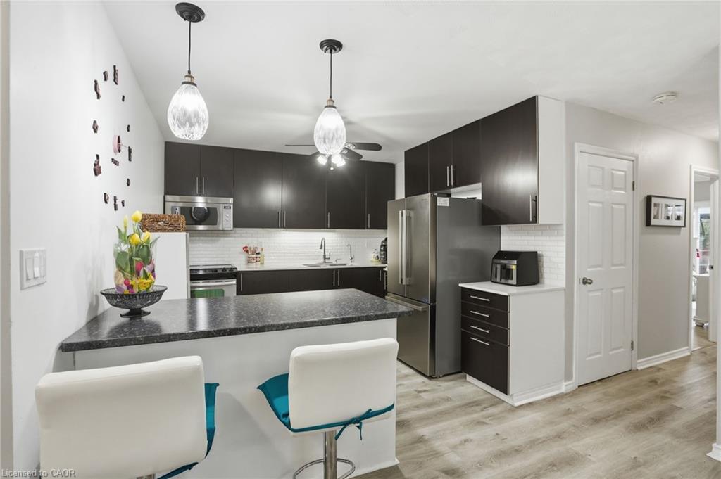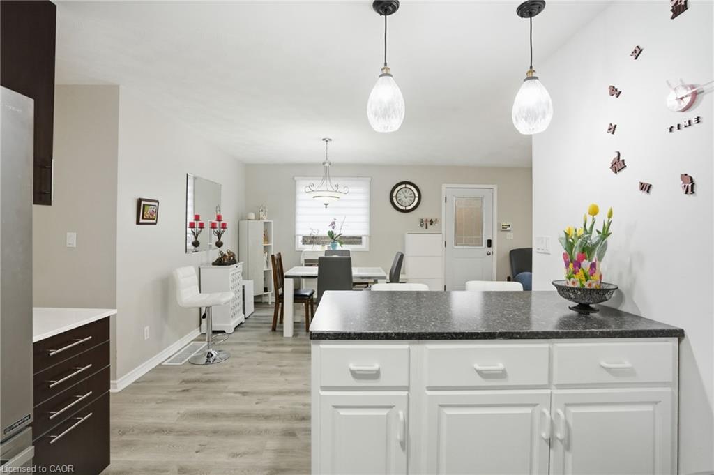 This recently upgraded bungalow offers a turn-key living opportunity only a short walk from historic downtown Paris, Ontario. The bright, airy, main floor offers lots of natural light throughout. An open concept living and dining area, two bedrooms, full bathroom and main floor laundry for convenience. The lower level features a sizable kitchen and family room, plus a large bedroom and a second four-piece bathroom, perfect for multi-generational living or private space for visiting friends and family. Bonus of a second laundry room with ample storage. Outside the peaceful fenced-in backyard beckons with a shed, garden beds plus ample deck and gazebo to enjoy the seasons. Attached one-car garage and lots of driveway parking. Upgrades include: New Furnace, Central Air, Di-humidifier, Programable Thermostat in 2024; New Hot Water Tank and Water Softener in 2023. Main level: New Flooring, New Kitchen Cabinets, Island, New Stove and Microwave, and Osmosis Water Filter in 2023. Lower level: New Floors and Subfloor throughout, New Bathroom, New Laundry Room, and New Kitchen in 2023. Exterior upgrades: New Garage Door with Remotes in 2022, a main entrance Cement Walkway and Retaining Wall (side of house), Downspouts, Gutters, Protection Guards, Deck Extension, Gazebo, all in 2024. This property is perfect for a family, downsizers or anyone looking to call this wonderful area home! Meticulously maintained, very clean and move-in ready. Close to wonderful downtown Paris – walk to restaurants, brewery, events and park. Relaxed small town living with a cosmopolitan feel. Minutes to the 403, close to Brantford and surrounding areas.