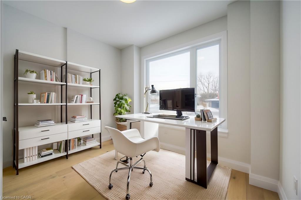 DISCOVER BLAIR WOODS: YOUR PRIVATE ENCLAVE IN WEST GALT! Blair Woods is a boutique collection of ten bungalow + loft townhomes, thoughtfully nestled in a mature and peaceful West Galt neighbourhood. This newly constructed Maple interior model offers an impressive 2,000 sq. ft. with an unfinished basement ready for your personal touch. Boasting 9-foot main floor ceilings, modern architectural design, and luxurious finishes, these homes are as stunning as they are functional. This unit features a main-floor primary suite with an ensuite bathroom, offering both convenience and privacy. Embrace the flexibility of the main floor front room, perfect as a cozy guest bedroom or a dedicated home office. Design highlights include soaring vaulted ceilings and a spacious upper family room, creating an inviting and airy atmosphere. The upper level also offers 3 additional bedrooms – offering a total of 4. Immerse yourself in the natural beauty surrounding Blair Woods. Spend the day cycling along the nearby Grand River trails, or take a leisurely stroll to the area’s charming shops, cafés, Gaslight District, and the iconic Historic Langdon Hall. With serene views and lush greenery, this community offers a tranquil retreat from the everyday. Conveniently located just 6 minutes from the highway. Your dream home and lifestyle await—Blair Woods is ready to welcome you! Photos are of unit 1 end model. Photos are virtually staged.