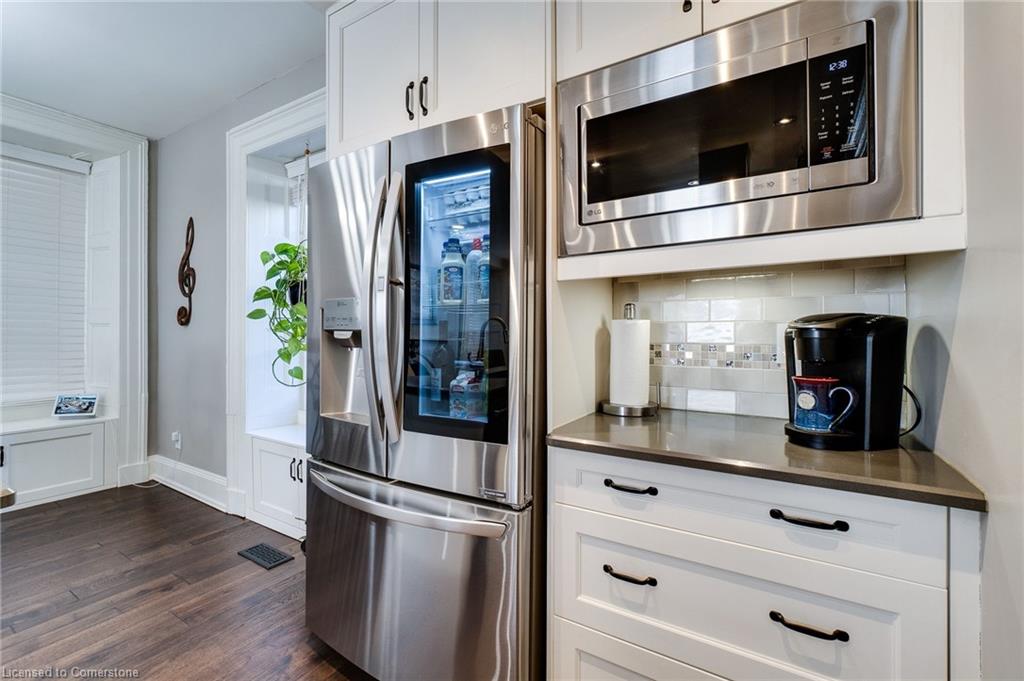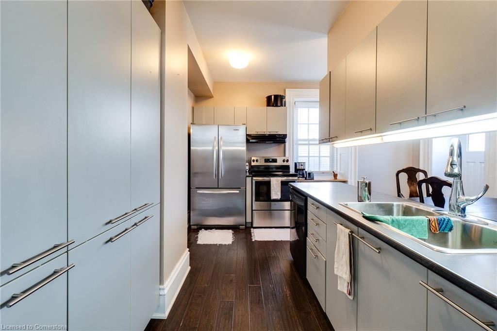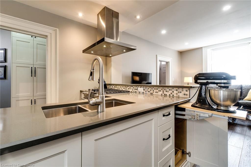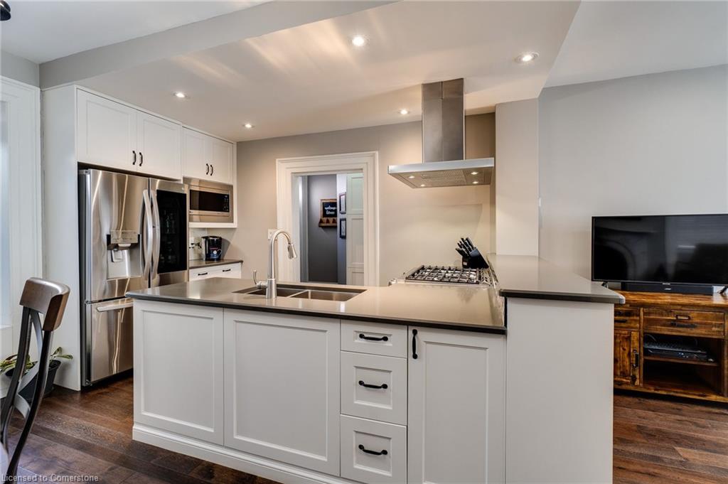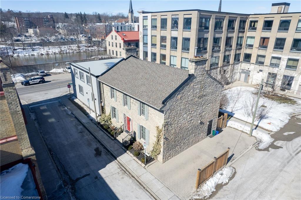 These beautiful side-by-side Semi’s (1-3 bedrm/1-2bedrm) feature two renovated modern homes, each with SEPARATE furnace, central air conditioning, hot water tank, water softener, and Hydro, Gas, and Water ~ perfect for Multi-generational living, first-time buyers, or savvy investors. The homes have updated electrical, plumbing, and upgraded roofs. Situated just steps from the Grand River & Pedestrian bridge connecting you to the vibrant Gaslight District, where you’ll enjoy easy access to a variety of excellent restaurants, the Hamilton Theatre, live music, cafes, local coffee shoppes, Farmer’s Market, and the Idea Exchange. This location strikes the perfect balance between peaceful suburban living and the convenience of nearby amenities, making it an attractive option for both residents and tenants. Whether you’re looking for a property with rental income potential or simply a fantastic spot to call home, this one has it all! 2 Warnock boasts a 2 bedrm, 2 bath suite that’s been thoughtfully renovated, showcasing an open-concept chef’s kitchen with high-end stainless appliances & stone countertops & family room. Exquisite hardwood floors throughout. The Primary suite offers a cleverly-designed 4pc bath, walk-in closet loaded with organizers, & a superb makeup/vanity area. Upper floor rounds out w/ 2nd bedroom hosting a large double closet and window seat. Pull-down stairs leading to 500 sf of beautiful attic storage with plywood flooring! Professionally finished basement creates a warm, inviting family room w/fireplace, 2 home offices, full laundry, workshop, and convenient 2 pc bathrm. Enjoy lots of storage space, a step-in pantry and a step-up workshop/utility area! 4 Warnock has 3 large bedrooms, 1 bath, full laundry & storage in basement, & great kitchen/dining area. Upgrades include hardwood flooring, paint, new carpeting. This property’s impeccable condition and attention to detail ensure it stands out in the market.