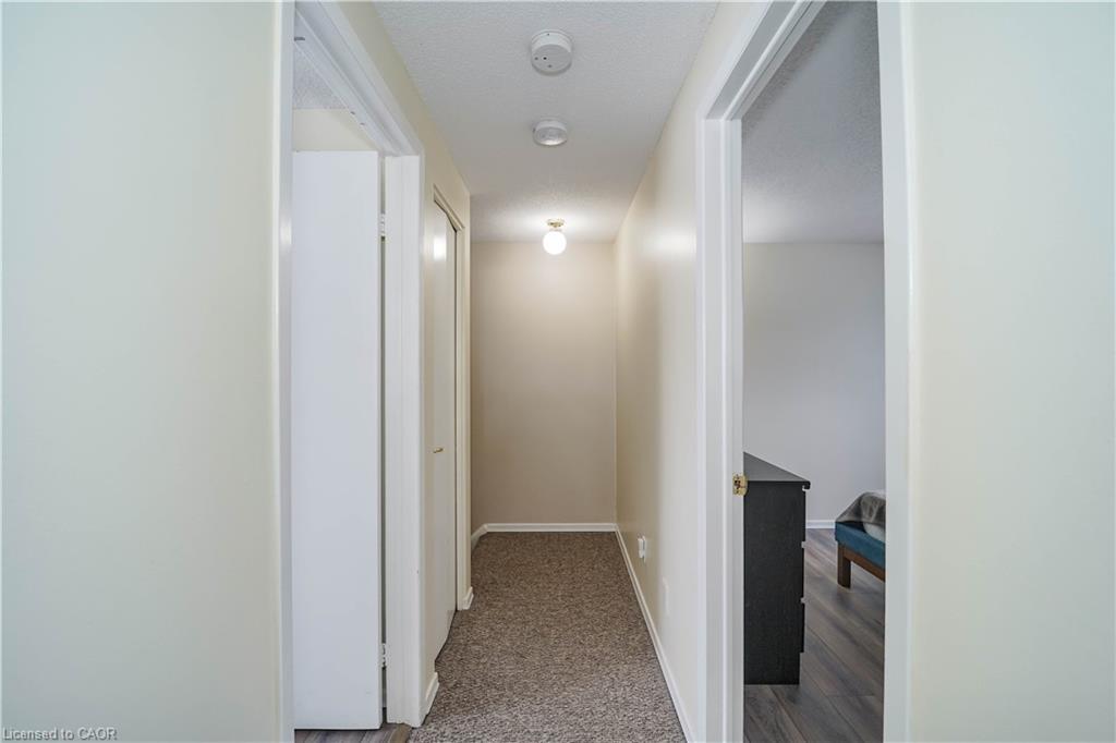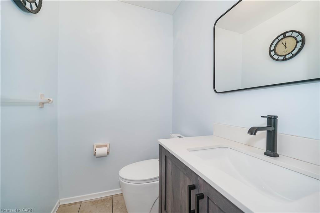 Tucked into a well-managed condo enclave in Waterloo, this stylish 2-storey townhouse offers the perfect blend of functionality and modern comfort. A welcoming tile foyer leads to a bright kitchen featuring stainless steel appliances and a clean, efficient layout ideal for everyday cooking. The open-concept living area with laminate flooring is anchored by a walk-out to a private yard—ideal for hosting or simply enjoying the outdoors in warmer months. Upstairs, you’ll find two generously sized bedrooms, both with laminate flooring and large windows that invite abundant natural light. The primary bedroom boasts a walk-in closet for added convenience, while the second bedroom offers flexibility for guests, a home office, or a nursery. A 3-piece bath on the second level complements the main floor powder room, providing function across both levels. Additional highlights include central air conditioning, gas-forced air heating, ensuite laundry, and a built-in garage with Electric Vehicle Charger installed and with a private driveway providing two parking spaces in total. With maintenance fees covering common elements and building insurance, this unit presents a low-stress ownership opportunity. Positioned in a south-facing exposure, the home captures all-day light and is conveniently located near King Street and Conestoga Parkway, offering easy access to local amenities, shopping, and transit. Whether you’re looking to enter the market, downsize smartly, or invest in a desirable area, this turn-key unit offers lasting value in a sought-after Waterloo location.