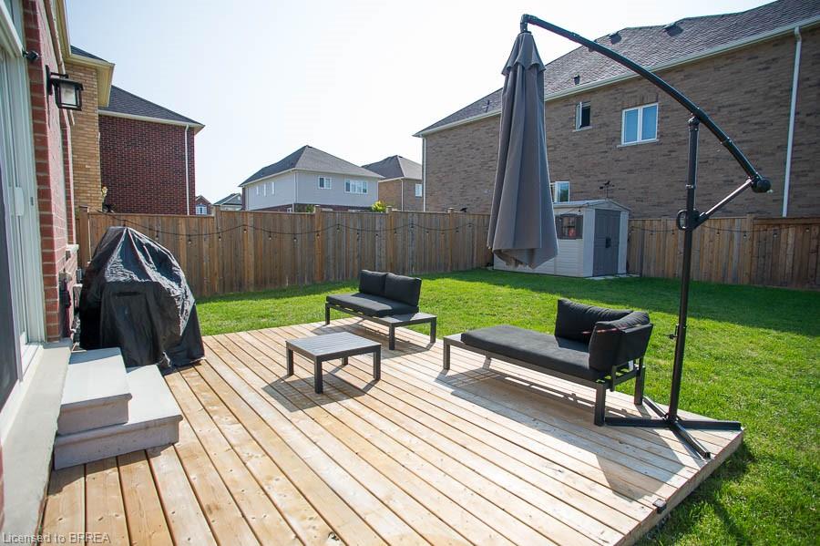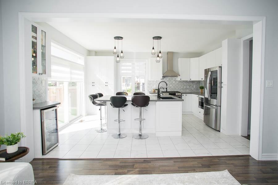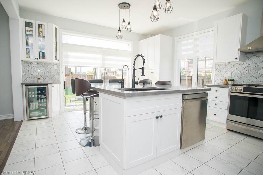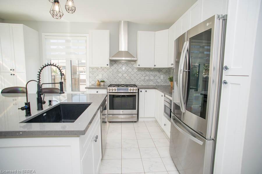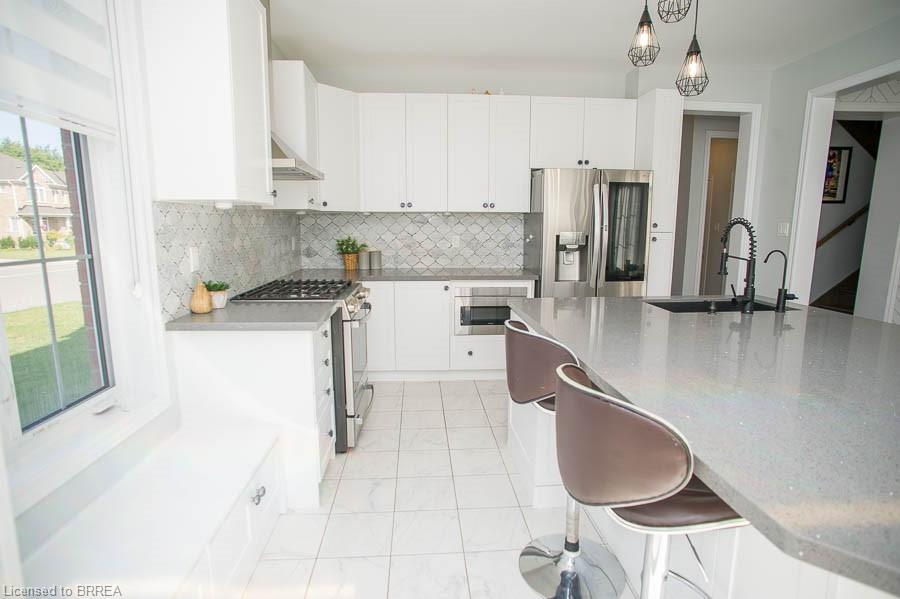 Welcome to 2 Attlebery Crescent in the desirable north end of Paris. This beautiful 2-storey home offers 2,340 sq. ft. of above grade living space with 4 bedrooms, 2.5 bathrooms, and a double car garage. The main floor features a spacious dining room with a feature wall, while the bright living room is open concept to the kitchen, creating the perfect space for family gatherings and entertaining. The chef’s kitchen is a true highlight, complete with quartz countertops, white shaker-style cabinetry, a large centre island with seating, upgraded light fixtures, and sliding doors that open to the backyard. Cooking is elevated with premium stainless steel smart appliances, including a gas stove, smart fridge, dishwasher, and a built-in microwave drawer. A touch-activated faucet, pantry storage, built-in garbage and recycling, and a window bench with hidden storage add to the kitchen’s thoughtful design. A mudroom with garage access and a stylish powder room complete the main floor. Upstairs, the primary suite boasts a double-door entrance, a large walk-in closet, and a luxurious 5-piece ensuite with double sinks, quartz counters, a soaker tub, and a rainfall shower. Three additional bedrooms, a 4-piece bath, and a convenient laundry room with a smart washer and dryer complete the second level. Outside, enjoy the covered wrap-around front porch, fully fenced yard, and back deck—ideal for relaxing or entertaining outdoors.