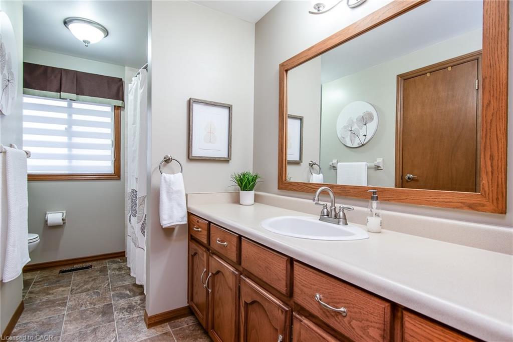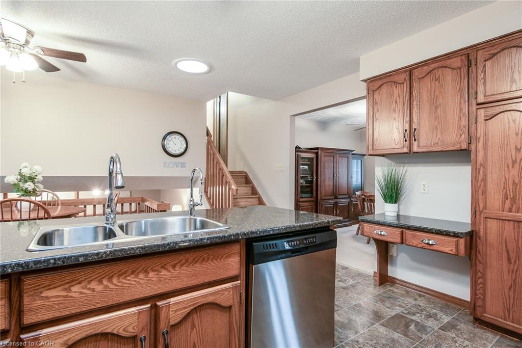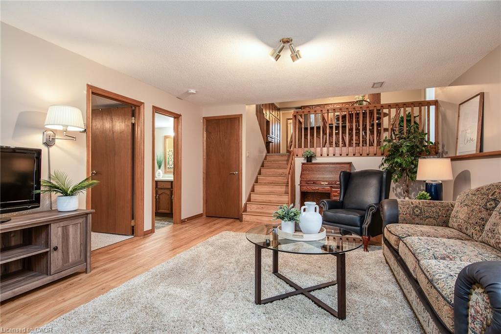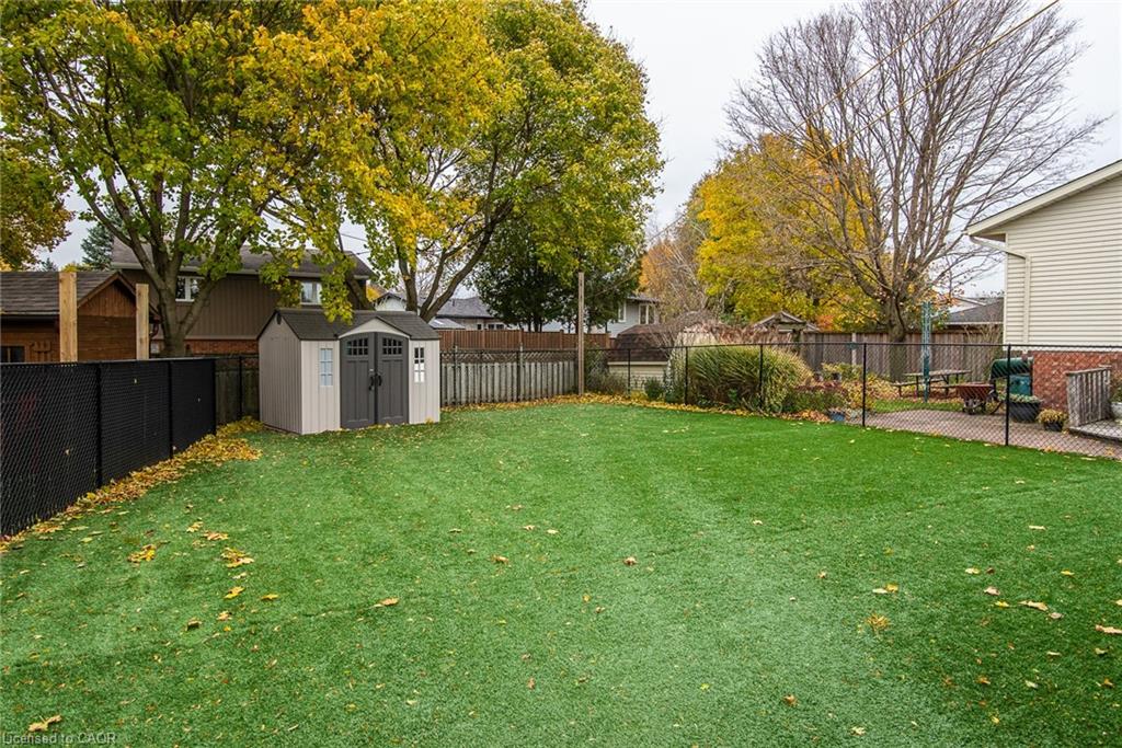 Are you looking for a practical home for raising a family? This four level backsplit is perfect for you! The open concept from the main level to the cozy lower level family room with gas fireplace is ideal for a young family. There is a 4th bedroom or office with a large window on this level as well as a 3 pc. bathroom. The main floor consists of a spacious living room with large picture window overlooking the park area across the street and a separate dining room. The eat-in kitchen offers lots of counter space, extra cabinetry and a generous dining area with sliding door leading to the concrete patio and fantastic fenced back yard, finished with ‘TURF’ (very low maintenance!) and a newer vinyl shed. The upper level offers a spacious primary bedroom with cheater ensuite and two other bedrooms. The lower level is unfinished and offers lots of storage. There is also a large double garage and double wide+ concrete driveway (2022). The metal roof was installed in 2021 and there’s a newer furnace and central air (2024). Call for details or a viewing.