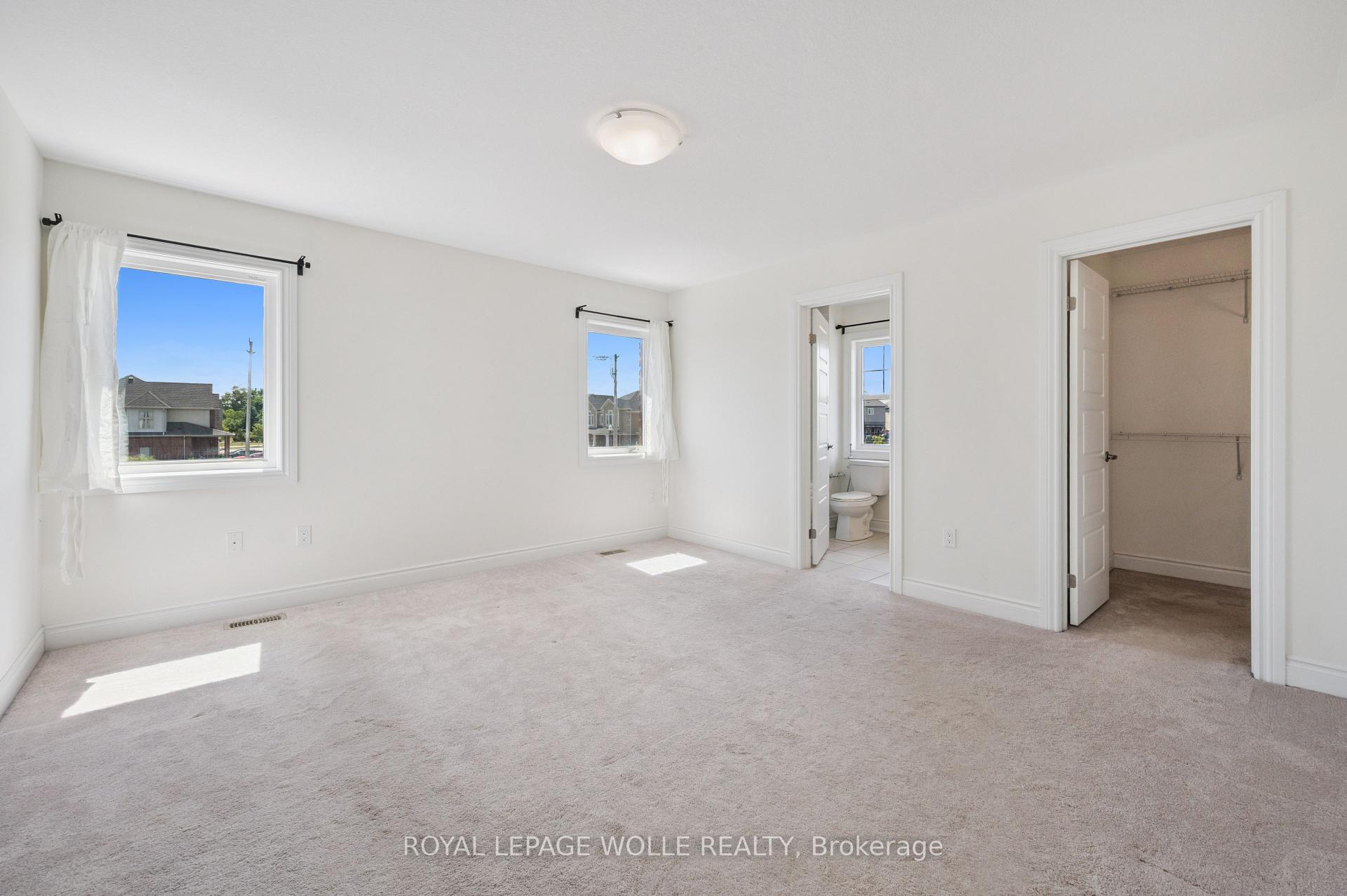 LIGHT FILLED, 4 BED WITH ENSUITE, DOUBLE CAR GARAGE, FREEHOLD END UNIT, BACKING ONTO GREENSPACE! Welcome to 2 Watermill Street, a bright, airy and spacious 4-bedroom end unit townhome tucked into the highly desirable Doon neighbourhood. Sitting on a rare 90-foot wide, fully fenced corner lot with no rear neighbours, this home offers the perfect balance of comfort, convenience, and modern design. Step inside and youre greeted by a bright foyer, with a formal dining room on one side and a private office on the other ideal for todays work-from-home lifestyle. Beyond, the main floor opens up with hardwood flooring, oversized windows, and a seamless flow between the living room, kitchen, and backyard. The kitchen is a showstopper with white cabinetry, a bold black backsplash, high-end stainless steel appliances, and a large island that doubles as a breakfast bar. Its the heart of the home, designed for entertaining or simply enjoying everyday family life. Take the extra wide hardwood staircase upstairs and find the primary suite as a relaxing retreat with a walk-in closet and 5-pc ensuite featuring double sinks. Three additional bedrooms, a 4-pc bathroom, and the convenience of upstairs laundry complete the second level. The lower level is ready for your vision, offering a rough-in bath and cold cellar. The expansive yard with newer concrete pad, fully fenced yard is the perfect place to grow your own vegetables, have a stunning garden and leave tons of space for the kids or dogs to play. With living space that is flooded with natural light, a double garage, generous yard space, and a quiet setting surrounded by trails, this home is made for easy family living. All of this, just steps from Groh Public School and minutes to Conestoga College, shopping, and the 401.