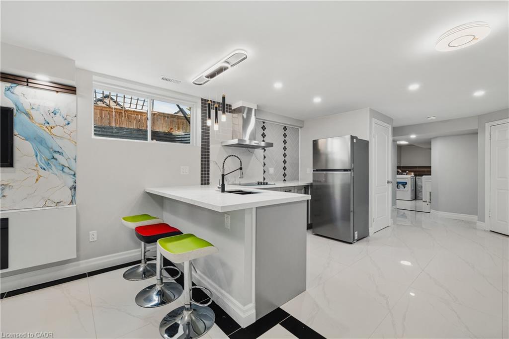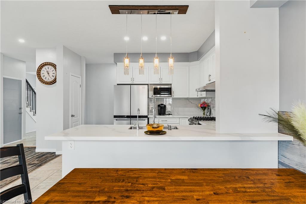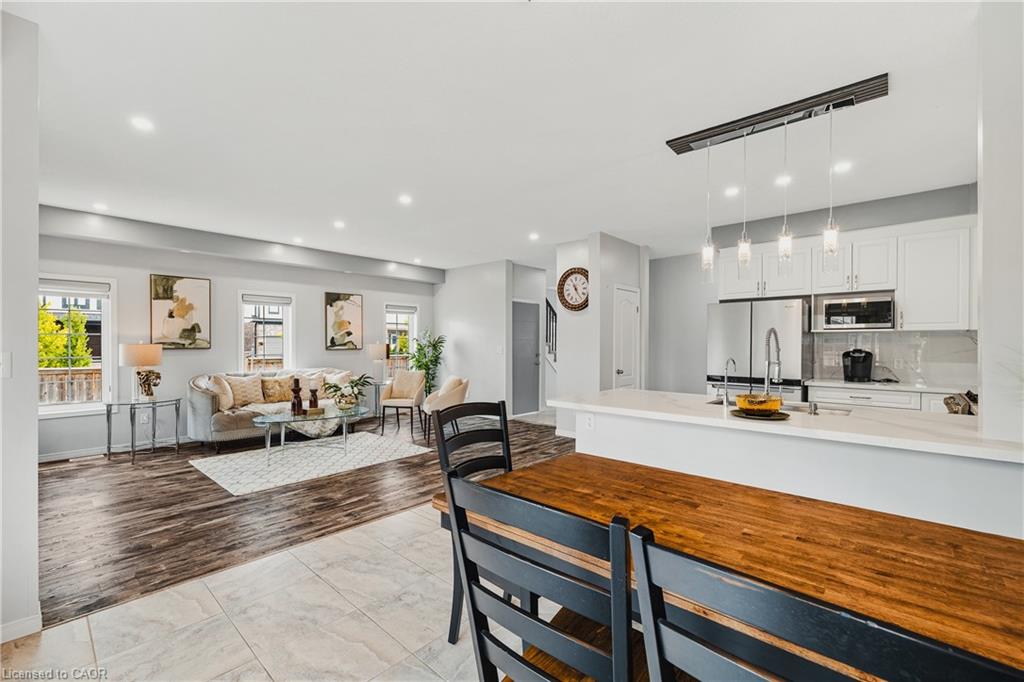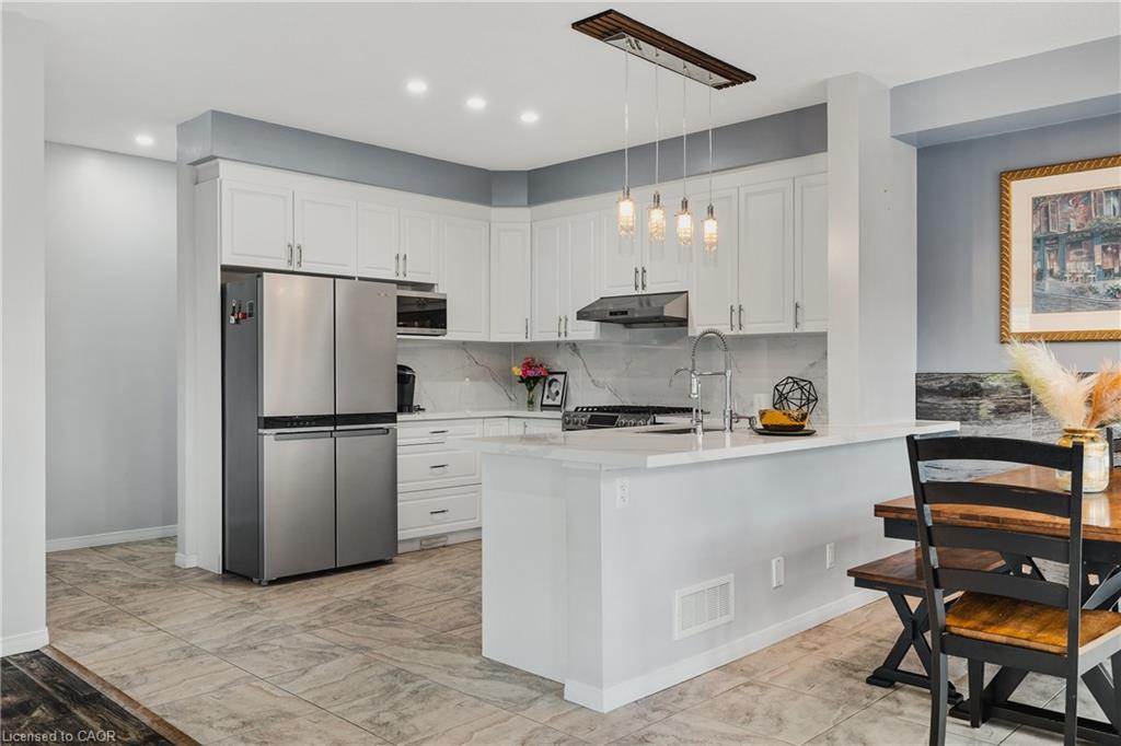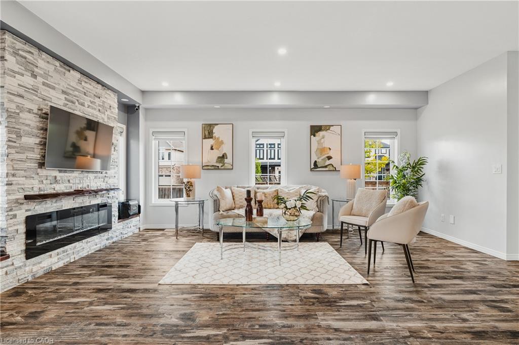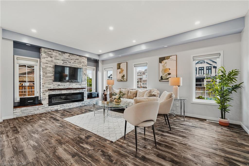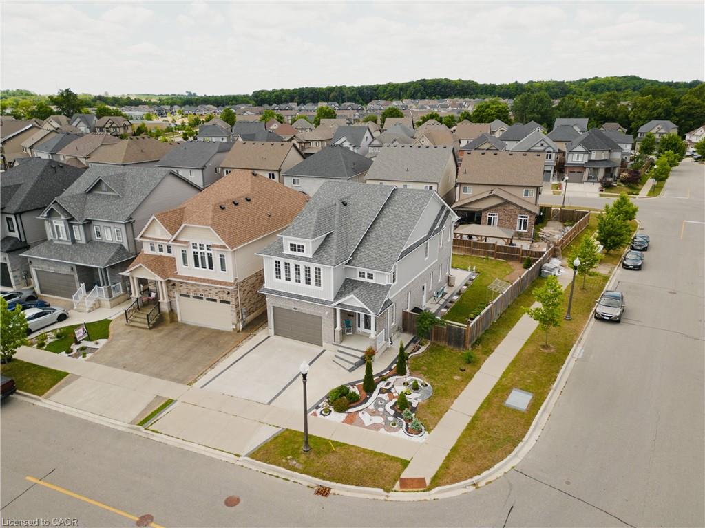 Welcome to 2 Wildflower Street, Kitchener, a beautifully upgraded home in the prestigious and family-friendly Doon South neighbourhood. Nestled on a quiet corner lot, this well-maintained property offers 2473 sqft of living space plus a legal 2-bedroom basement apartment with a separate entrance, perfect for families or rental income. The main floor features a bright, open-concept layout with 9’ ceilings, pot lights, and a carpet-free design. Enjoy a stylish living room with a TV feature wall and fireplace (2021), and a modern kitchen with quartz countertops, stainless steel appliances, pendant lighting, and a pantry room. A powder room and central vacuum system add to the convenience. Upstairs offers 4 spacious bedrooms, including a primary suite with a cozy reading or office nook. Two recently updated quartz-finished bathrooms and an upper-level laundry room complete the space. The newly finished legal basement includes 2 bedrooms, a sleek kitchen with quartz counters and soft-close cabinets, brand-new appliances, a TV wall with fireplace, and its own private entrance which makes it ideal for in-laws or tenants. Outside, enjoy a fully fenced backyard with two concrete patios, vegetable beds, and a 2-car garage plus an extended 3-car driveway. There are no rental items, everything is owned. Additional features include a water purifier, water softener, and original AC and furnace in great shape. Located just 5 minutes to Hwy 401 and near Conestoga College, transit, shopping, and schools, this move-in-ready home offers comfort, space, and versatility in a prime Kitchener location.