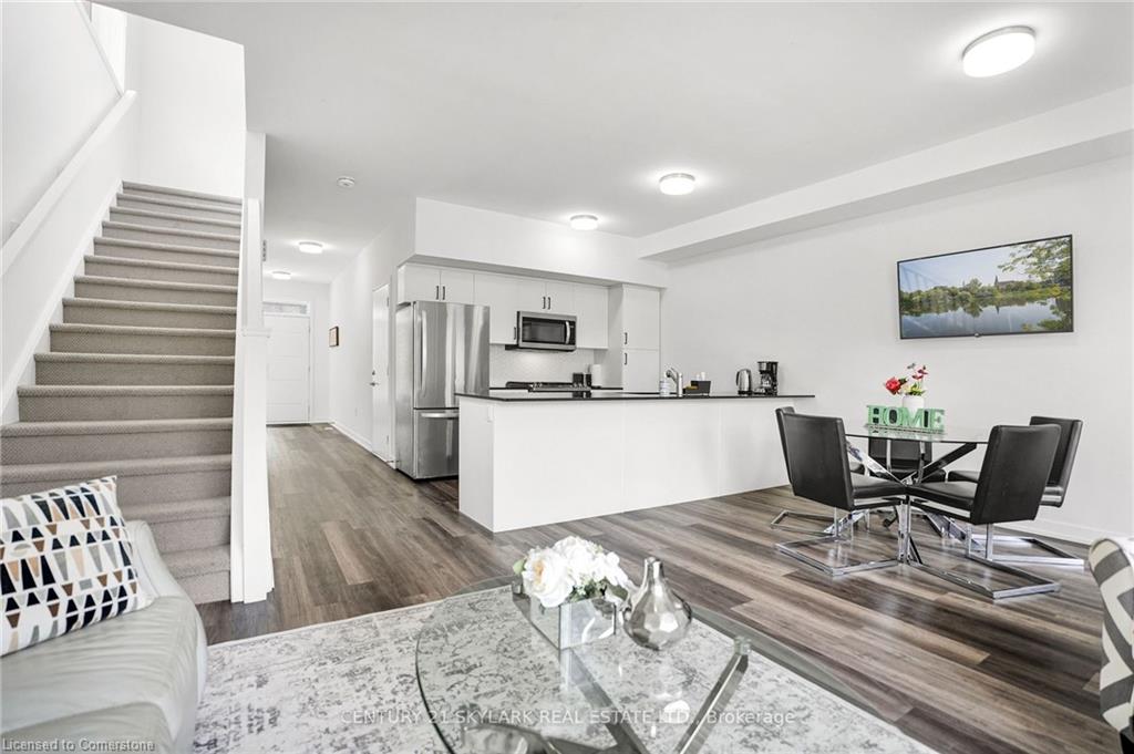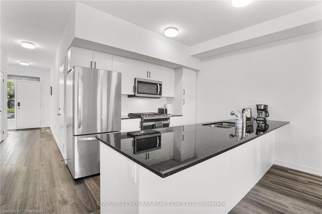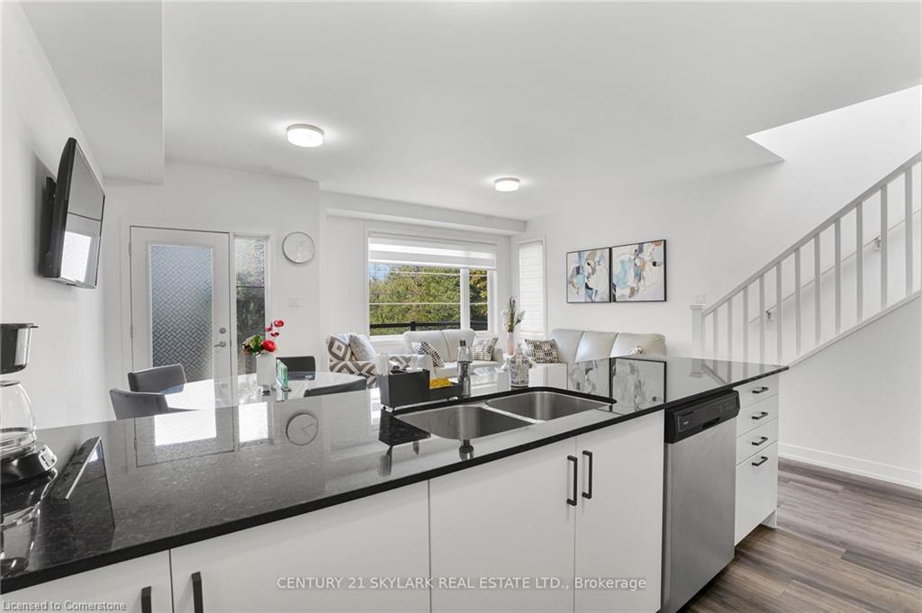 One of its Kind Corner Bright townhome with modern finishes, located in the heart of Hespeler! 3 bed/3 bath, spacious living & dining area, with a WALKOUT basement overlooking the scenic Speed River. Open concept floorplan with luxury vinyl plank flooring throughout. Stylish white kitchen equipped with stainless steel appliances, granite countertops, & a breakfast bar. Large living & dining areas with a walkout balcony overlooking the Speed River. Spacious bedrooms, including a primary suite with a 3-piece ensuite & walk-in closet. Convenient upper-level laundry. Conveniently located close to amenities, highway, schools, public transit, recreation center, parks, trails, & nature. Take a stroll through Forbes Park, or along the Mill Pond Trail to Ellacott Lookout & feel truly at peace in this stunning, natural environment. Convenient visitor parking right beside the unit
