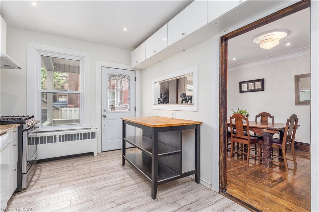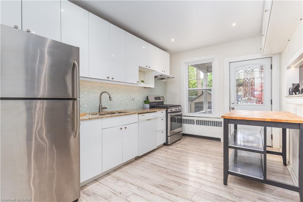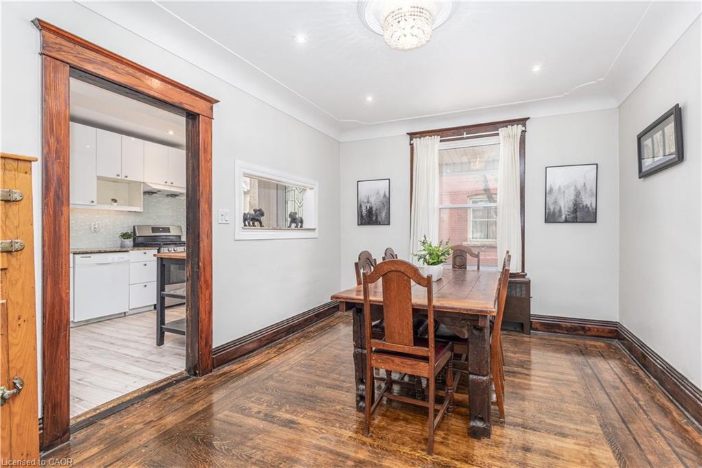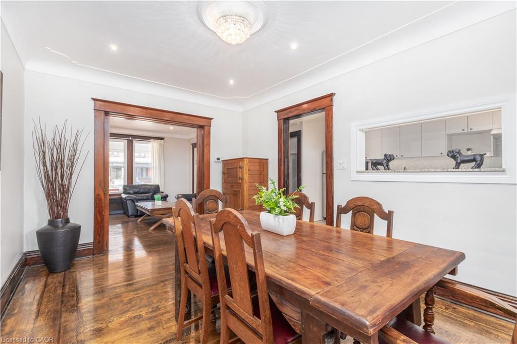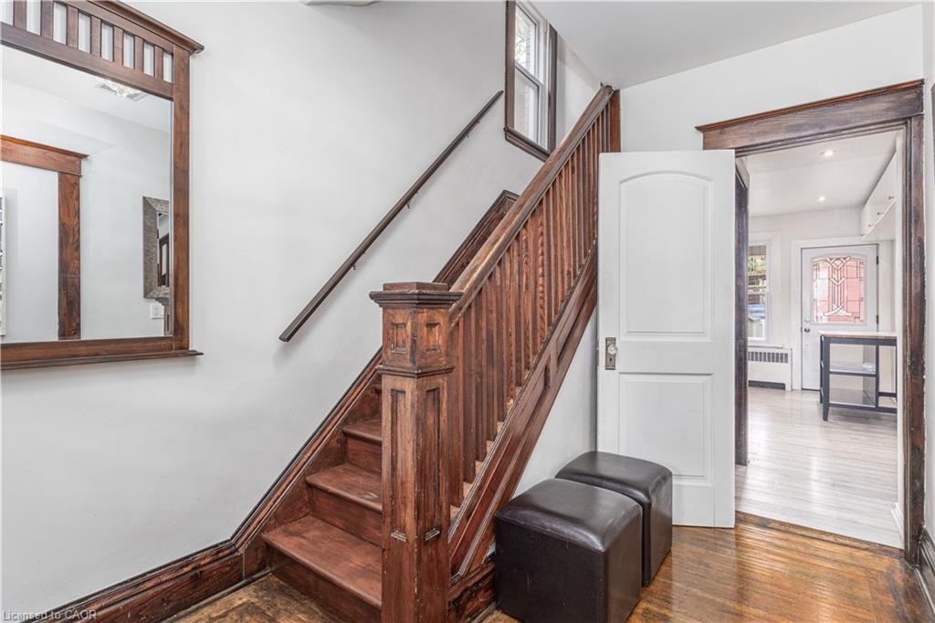 Welcome Home to this beautiful 5-bedroom House with 2 kitchens, 2 Living Rooms and 2 Bathrooms, located in the family-friendly Stipley neighborhood of Hamilton. ML Living Room comes with a cozy fireplace. The Home is carpet-free and features hardwood floors, original trim, crown mouldings, LED lighting, modern kitchens, a lovely front porch, and a backyard deck sure to impress! Currently, set up as 2 separate units, this House can be easily converted into a 5-bedroom Single Family Home for a growing family, by turning the 2nd Level Kitchen into an additional bedroom. You can either enjoy the whole house for yourself or keep it divided into 2 private units. Theres already a separate side entrance for the main level. The Upper Level can be a 4-bedroom Unit for the Owner or Tenant, while the other Tenant can have a 1-Bedroom Unit with a Kitchen, Dining, and Living area on the Main Level and 1 bedroom in the basement plus their own private entrance. Windows, Roof & Bathrooms were done in 2016. Furnace in 2015. Natural Gas Line in the Rear Deck for BBQ.