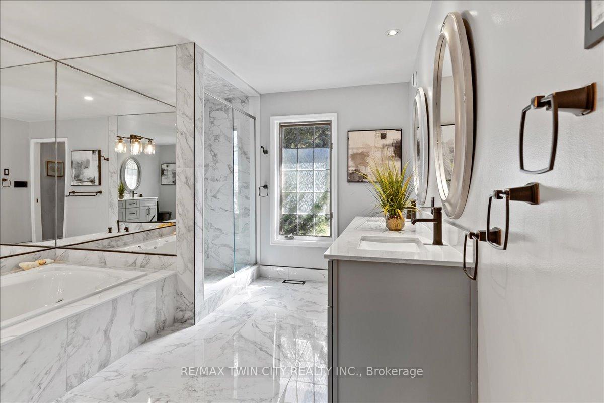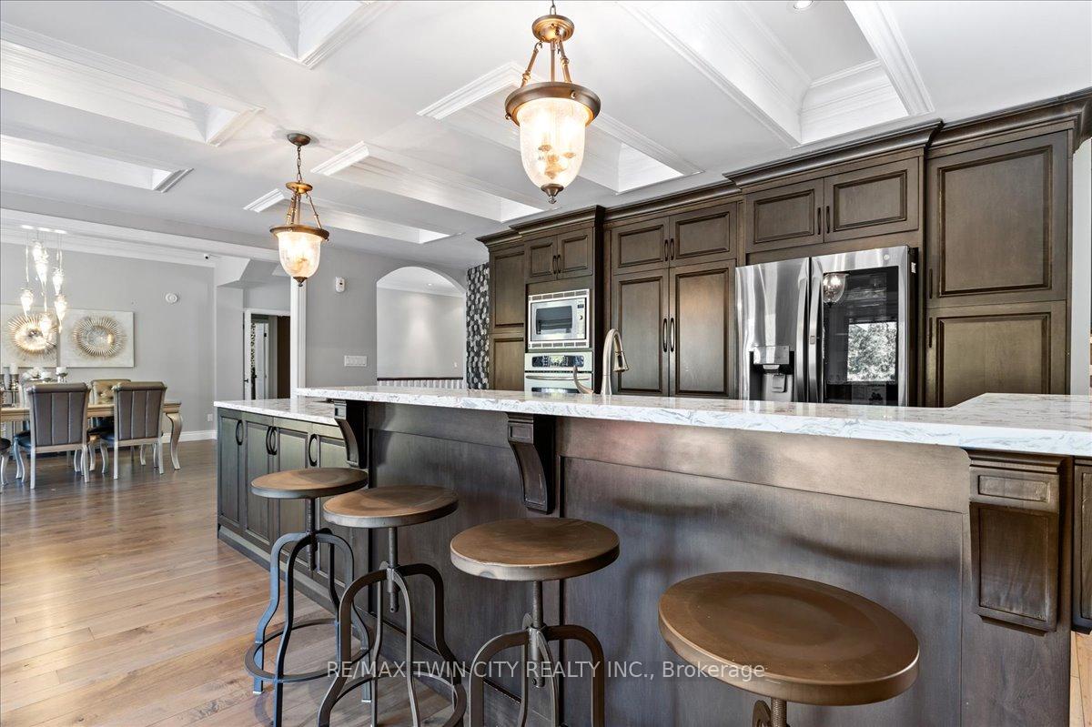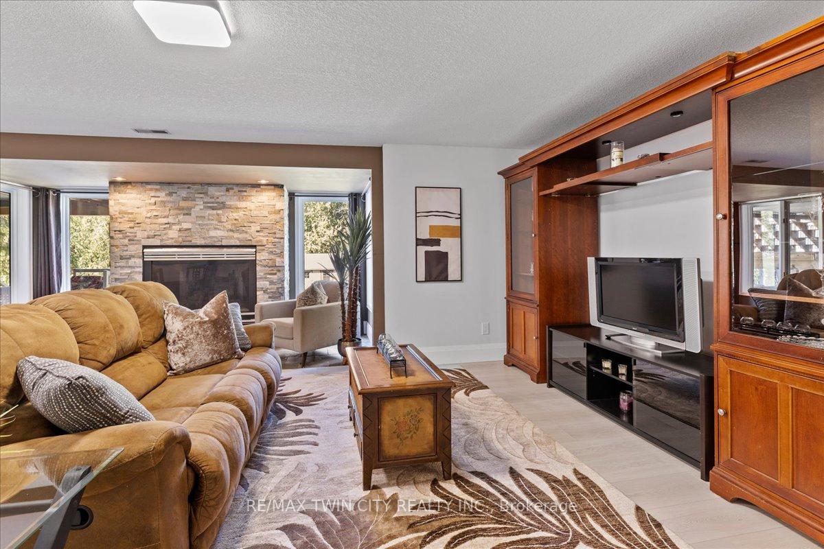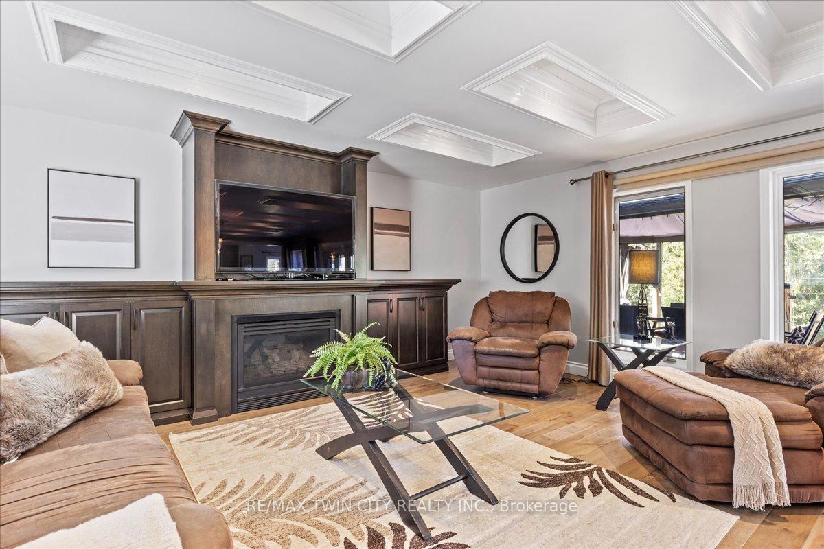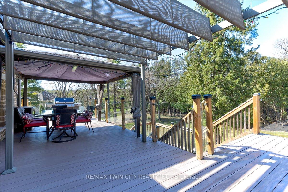RARE OPPORTUNITY! Custom built raised bungalow on a 1.04-acre lot, offering court location surrounded by protected greenspace. This exclusive, 10 estate court rarely has homes come up for sale and 20 Grandy lane is one that takes full advantage of the natural features, completely backing onto mature forest with direct access to Millcreek conservation land. The home features a stunning all stone exterior with a beautiful retaining wall and carefully set natural stone steps, leading to the front door. The main level layout is wide open with large windows, designed to overlook the backyard from anywhere within the open space and providing access to the elevated multi-level deck completed with composite decking and glass rails. A rich, maple raised panel kitchen sits central with an oversized quartz countertop and raised bar sitting area; elegant crown molding finishes the cabinets to the ceiling with built-in stainless-steel appliances, gas cooktop. Equal in elegance is the built-in family room wall unit featuring gas fireplace insert. A three-sided fireplace separates the dining room from a sunken sitting area providing for an elevated view of the backyard; coffered ceiling accents and hardwood flooring span the space. Completing the space is a large bedroom, laundry, 2-piece bathroom, and the primary suite, complete with walk in closet and recently renovated(2023) 5-piece spa like ensuite. A hardwood staircase leads to the lower level which is still completely above grade; the home was strategically placed to take full advantage of the walkout. Lower level gives access to the oversized, staggered double car garage. Perfectly suited as a multi-generational home, offering three bedrooms, a recently renovated (2023) 4-piece bathroom, recreation room with gas fireplace, and kitchenette along with wet bar. Roof(2024), Additional oversized garden shed for equipment storage. Minutes from the 401, amenities, and schools. Dont miss this truly beautiful property!