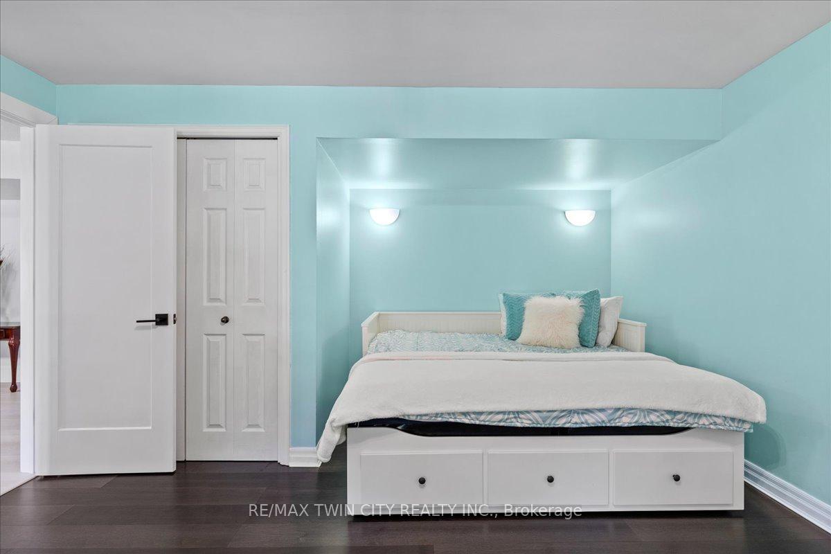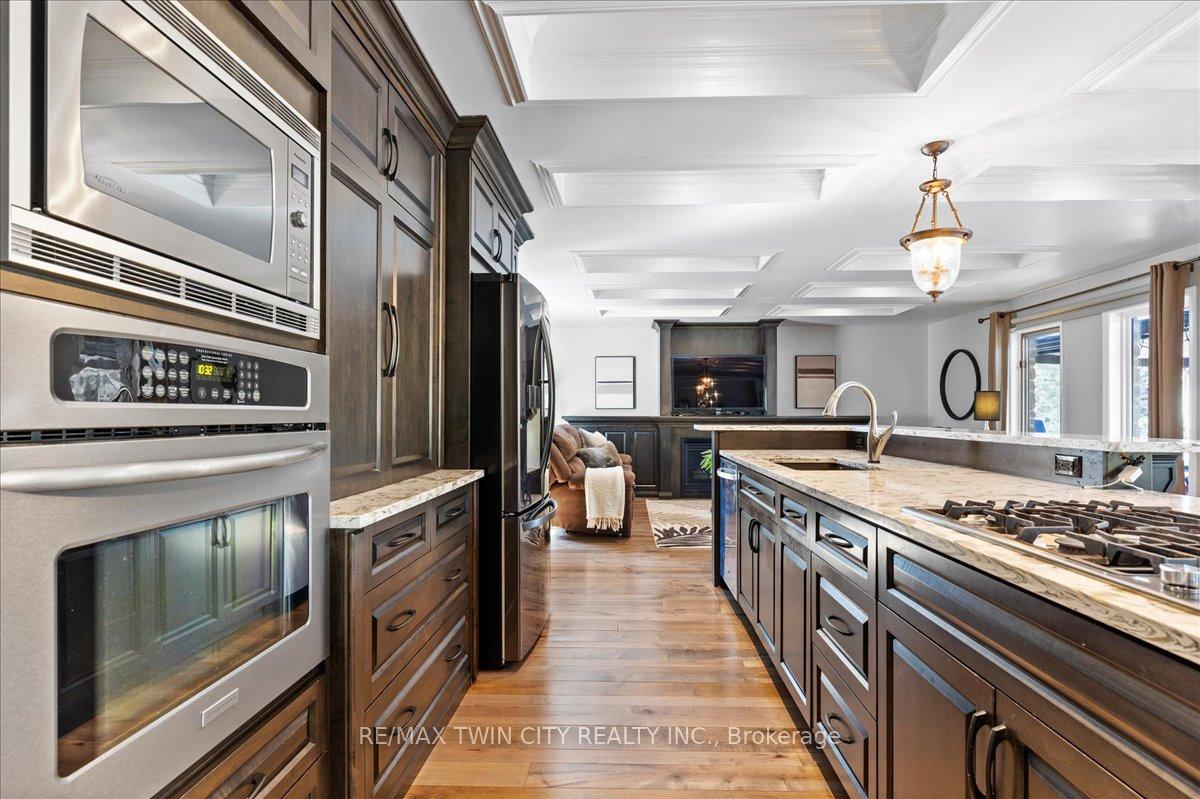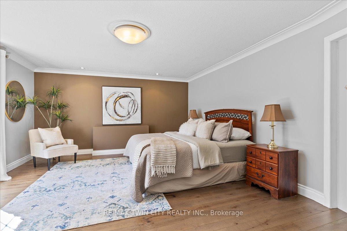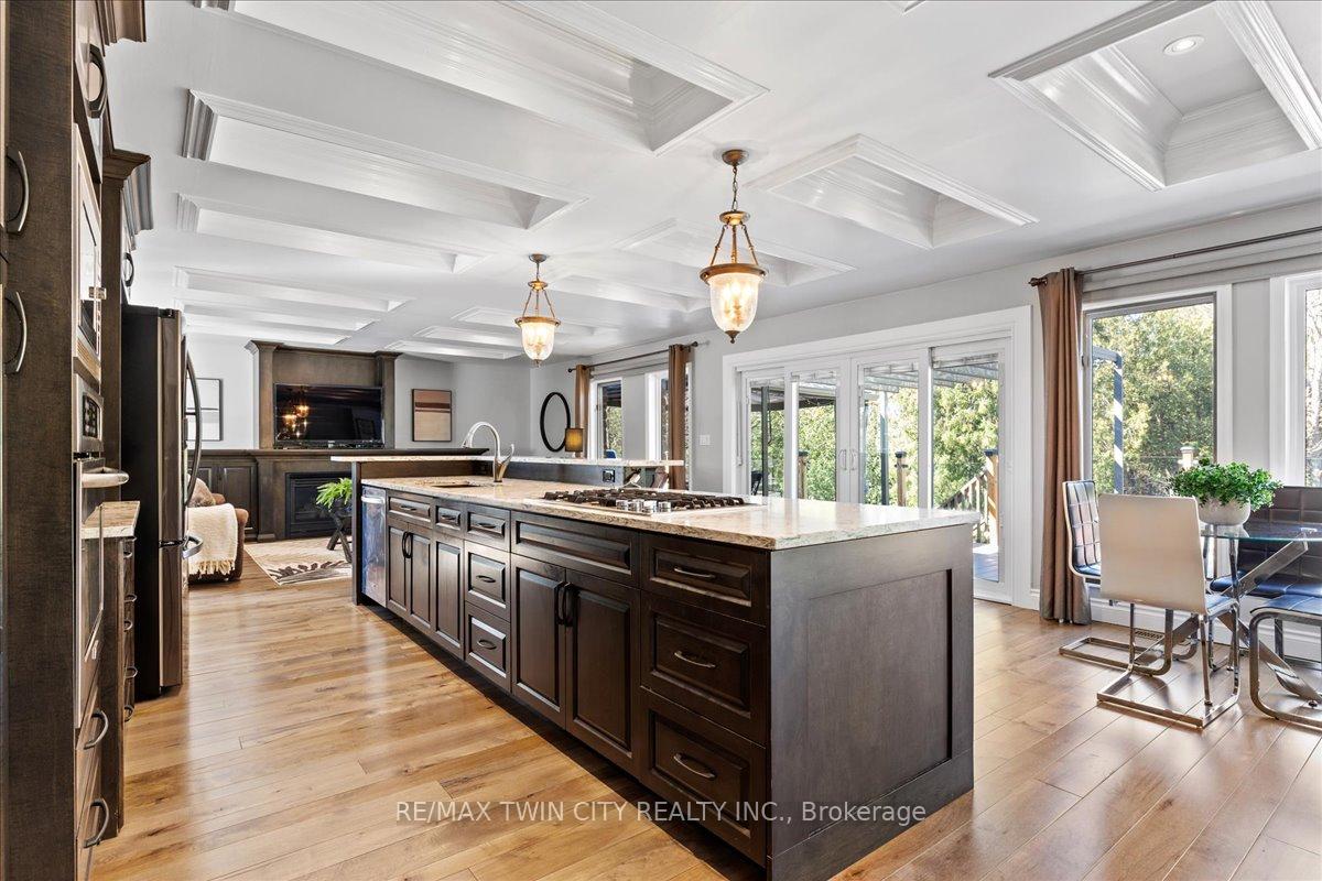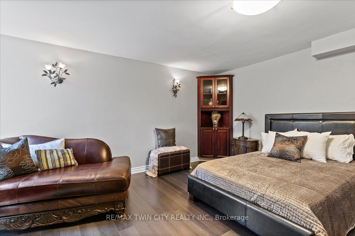 RARE OPPORTUNITY! Custom built raised bungalow on a 1.04-acre lot, offering court location surrounded by protected greenspace. This exclusive, 10 estate court rarely has homes come up for sale and 20 Grandy lane is one that takes full advantage of the natural features, completely backing onto mature forest with direct access to Millcreek conservation land. The home features a stunning all stone exterior with a beautiful retaining wall and carefully set natural stone steps, leading to the front door. The main level layout is wide open with large windows, designed to overlook the backyard from anywhere within the open space and providing access to the elevated multi-level deck completed with composite decking and glass rails. A rich, maple raised panel kitchen sits central with an oversized quartz countertop and raised bar sitting area; elegant crown molding finishes the cabinets to the ceiling with built-in stainless-steel appliances, gas cooktop. Equal in elegance is the built-in family room wall unit featuring gas fireplace insert. A three-sided fireplace separates the dining room from a sunken sitting area providing for an elevated view of the backyard; coffered ceiling accents and hardwood flooring span the space. Completing the space is a large bedroom, laundry, 2-piece bathroom, and the primary suite, complete with walk in closet and recently renovated(2023) 5-piece spa like ensuite. A hardwood staircase leads to the lower level which is still completely above grade; the home was strategically placed to take full advantage of the walkout. Lower level gives access to the oversized, staggered double car garage. Perfectly suited as a multi-generational home, offering three bedrooms, a recently renovated (2023) 4-piece bathroom, recreation room with gas fireplace, and kitchenette along with wet bar. Roof(2024), Additional oversized garden shed for equipment storage. Minutes from the 401, amenities, and schools. Dont miss this truly beautiful property!