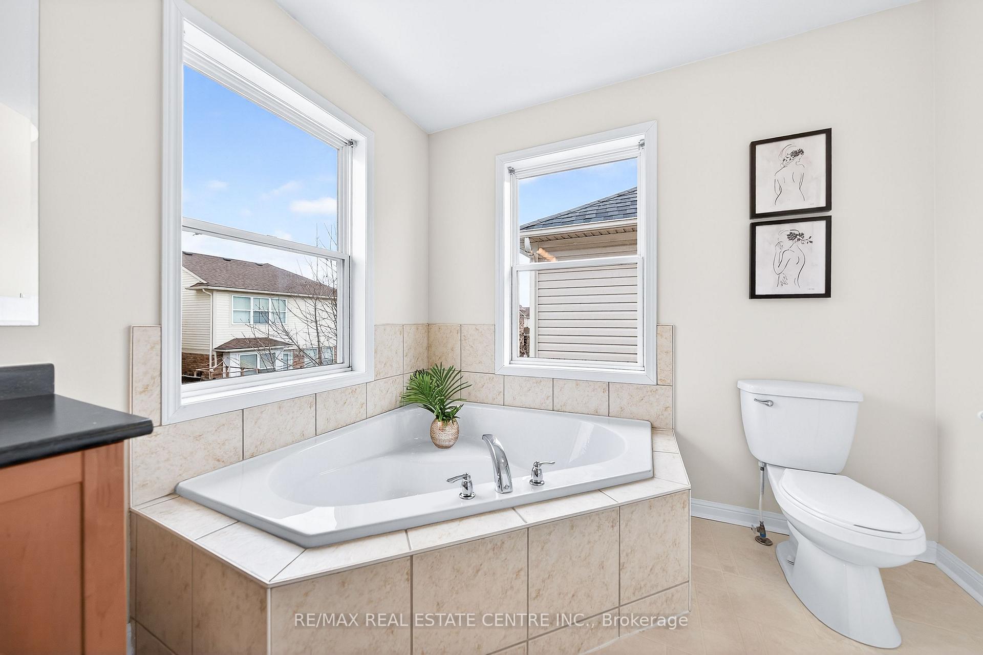 Welcome to this conveniently located North Galt home. Featuring a bright, spacious floor plan and warm inviting finishes throughout. Freshly painted and newly redone glass window inserts. As soon as you walk in the door, you will see the rooms filled with natural light from expansive windows. The main level showcases a thoughtfully laid-out open-concept design that creates an airy and welcoming feel. The kitchen connects seamlessly to the living area and is equipped with brand new stainless steel appliances, including a stove, refrigerator, dishwasher, and hood fan. A French door with built in blinds, leads you directly to the fully fenced backyard, offering an ideal setting for summer gatherings, outdoor meals, or simply unwinding in your own private outdoor space. A separate formal dining room provides an elegant setting for hosting dinners and celebrations, while a convenient 2-piece powder room completes the main floor. Upstairs, the well-planned second level features the convenience of laundry, complete with brand new white Samsung front-load washer and dryer. The generous primary suite offers a large walk-in closet and a beautifully appointed 4 pcs ensuite bath with a corner soaker tub, designed for comfort and relaxation. Two additional well-sized bedrooms are connected by a Jack and Jill bathroom, offering both privacy and convenience for family members. Recent updates include: New appliances, freshly painted throughout, and new window glass inserts installed in March 2026, improving both energy efficiency and natural brightness throughout the home. The unfinished basement provides exceptional potential for future development, with plenty of room to create a recroom or additional bedroom(s). The extended interlock driveway provides parking for two standard size vehicles plus an attached garage. Located in a family-friendly neighbourhood close to major amenities such as: place of worship, schools, parks, shopping, public transit and minutes to the #401.